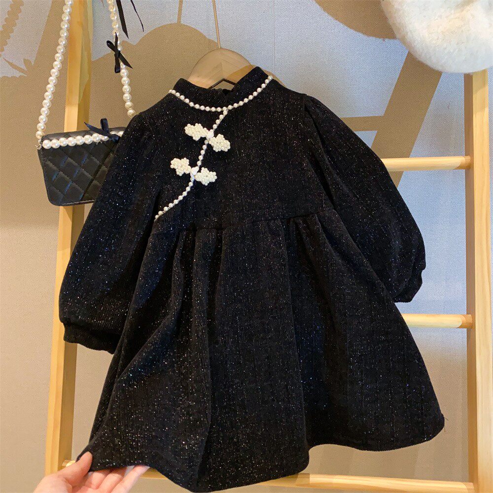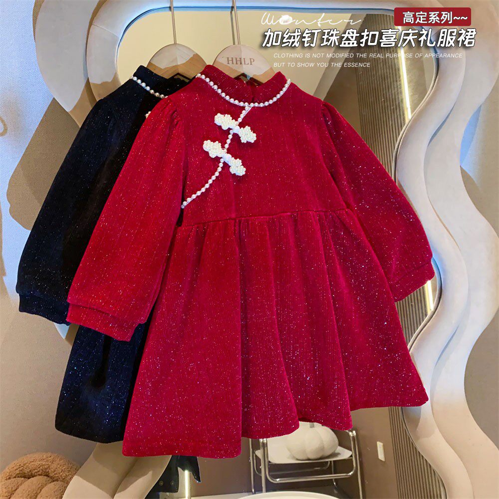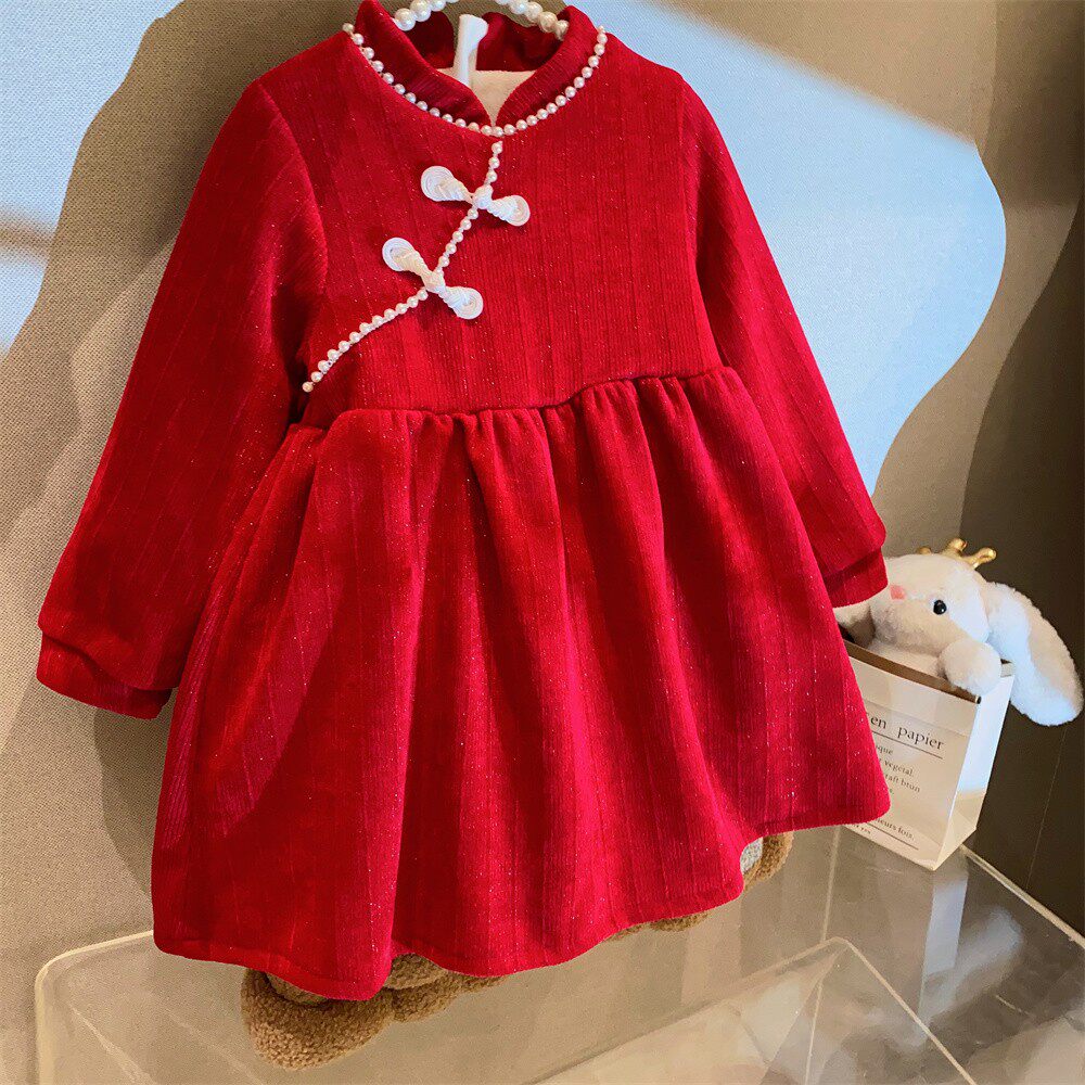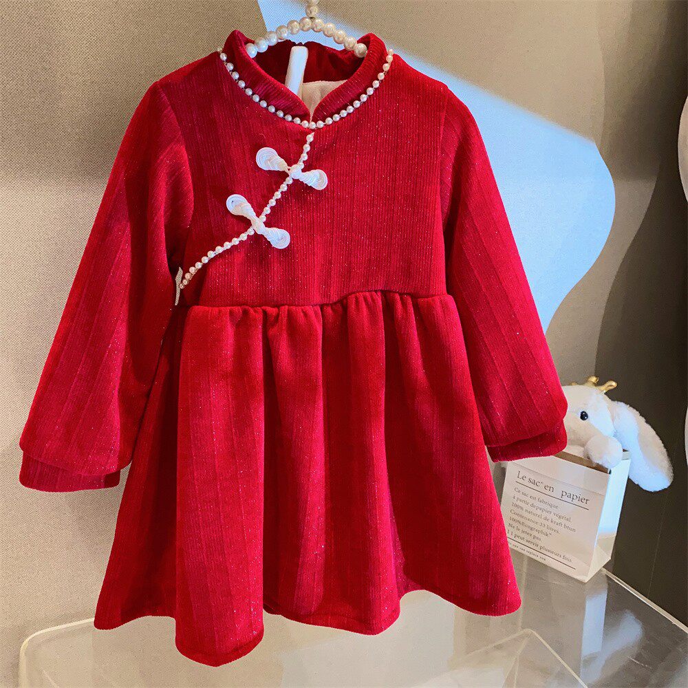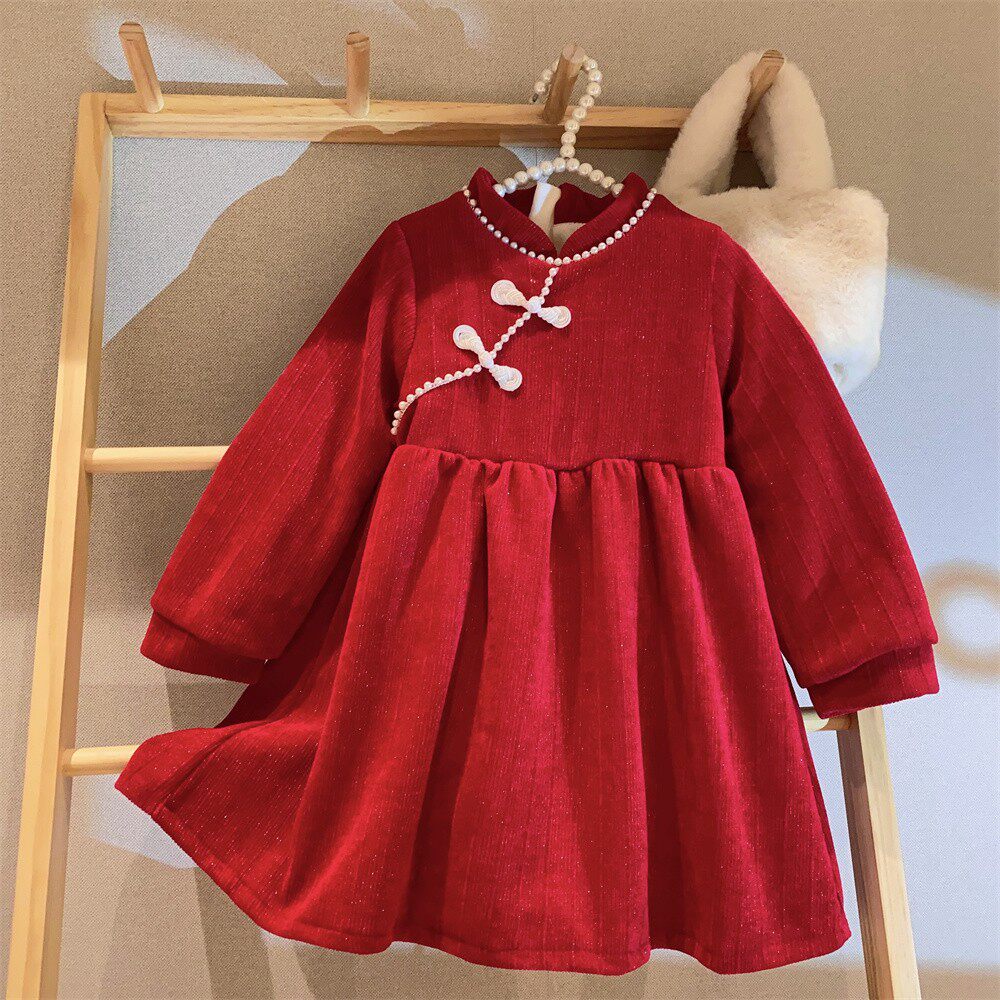 Красное ципао, платье, пуховик, детский наряд маленькой принцессы, в западном стиле