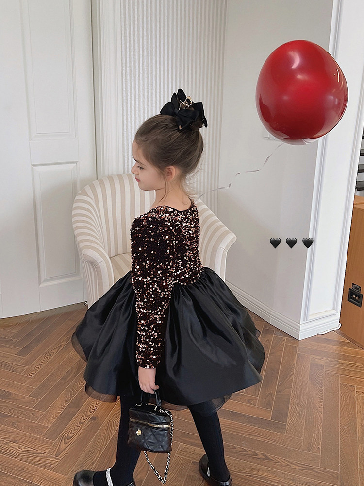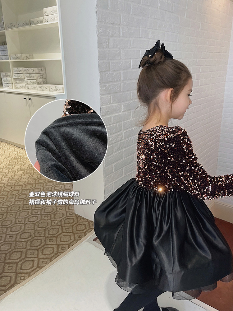 辰辰妈 Черное платье, утепленная юбка на девочку, утепленный наряд маленькой принцессы, детская одежда