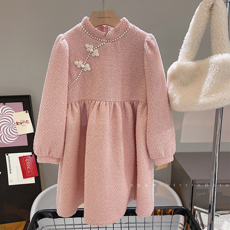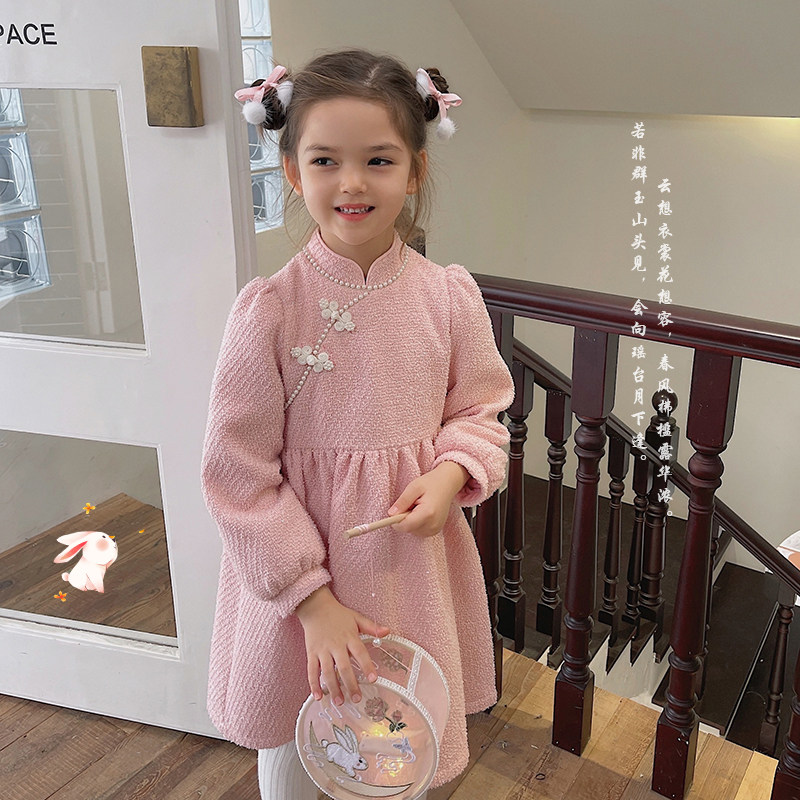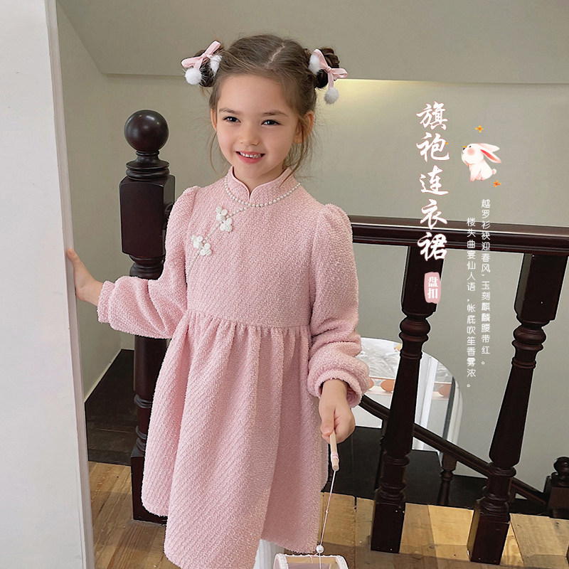 辰辰妈 Демисезонное детское утепленное ципао, розовая юбка на девочку, длинная юбка, детская одежда, длина макси