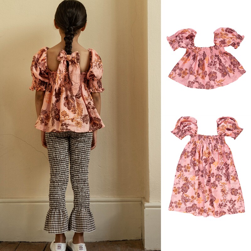Конечно, рыбный магазин Bebe Organic SS23 Girl Red Red Flower Doll Plouing платье рукава