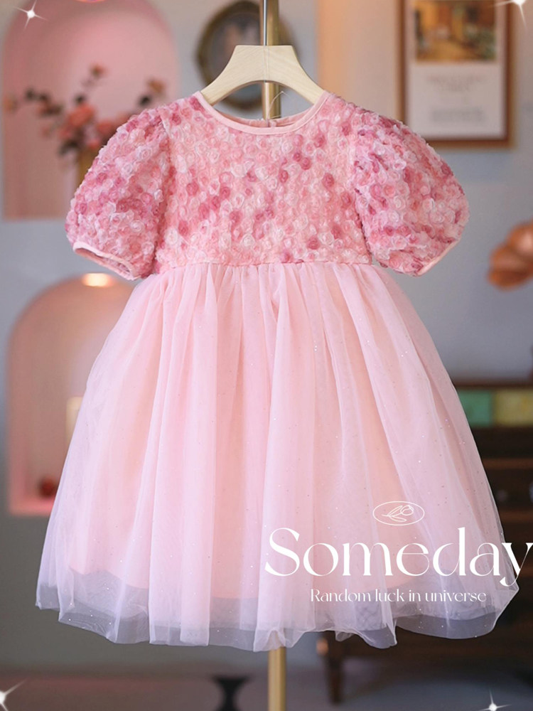 Платье, детская летняя одежда, наряд маленькой принцессы, милая юбка на девочку, короткий рукав, в западном стиле
