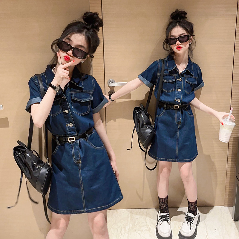 Джинсовая юбка, летняя одежда, летнее платье с коротким рукавом, летняя юбка на девочку, длинная юбка, подходит для подростков, в западном стиле