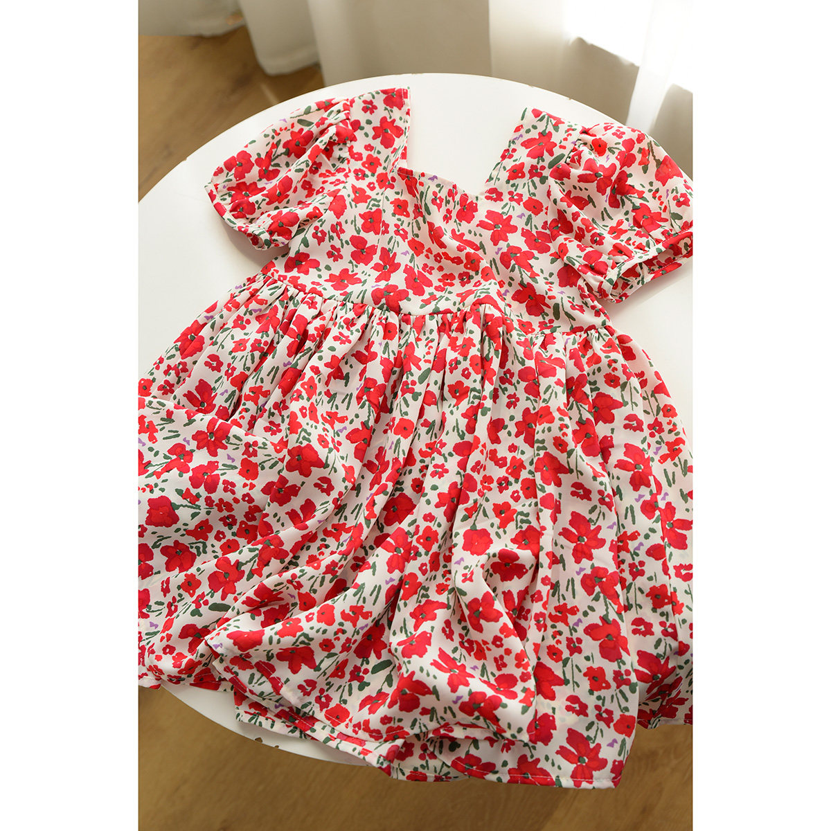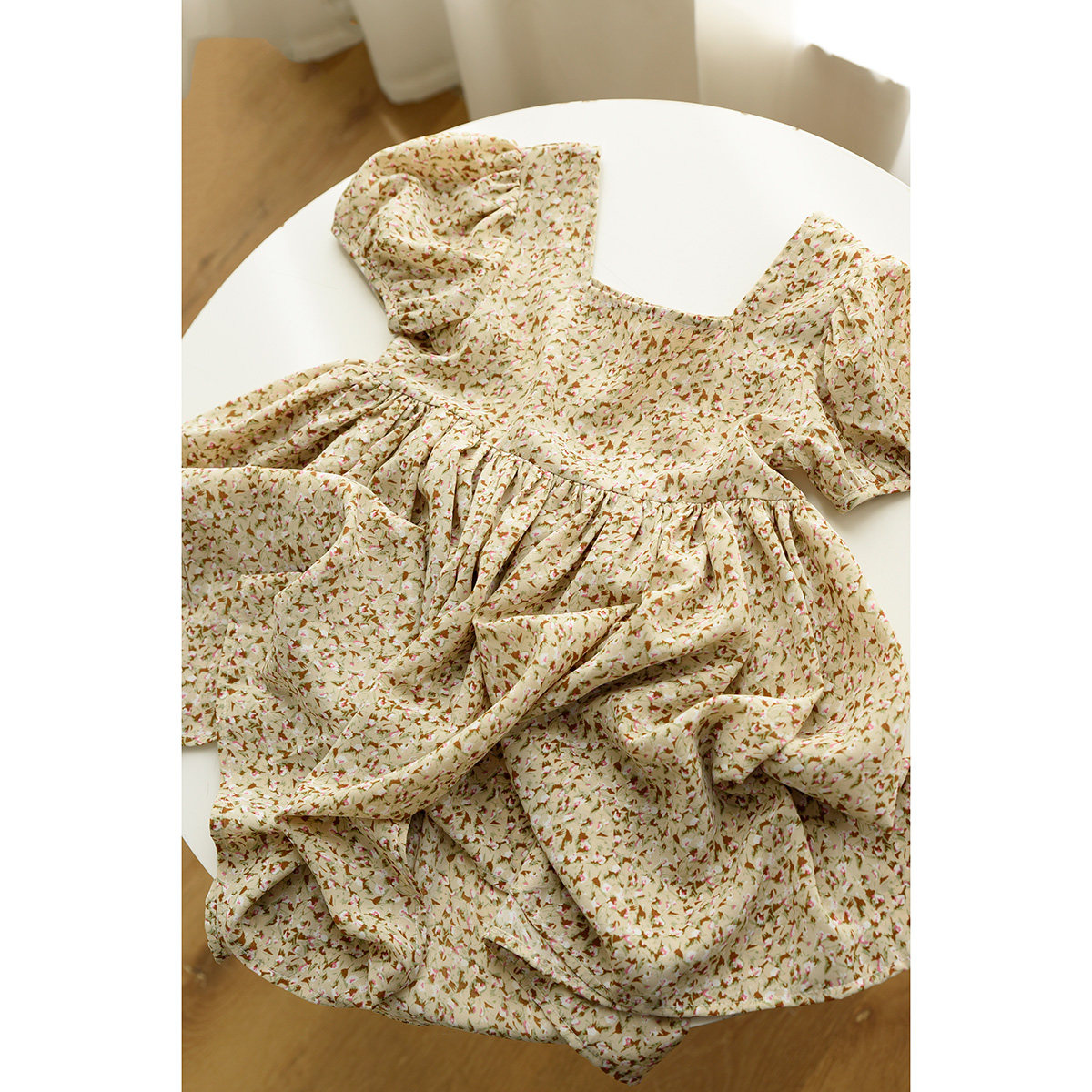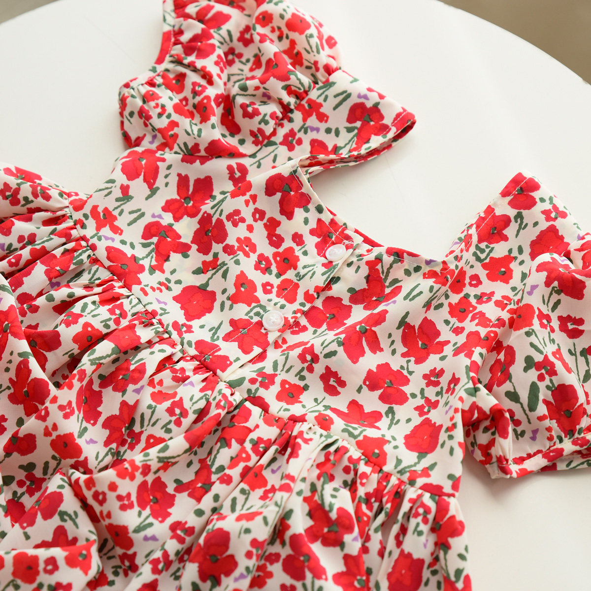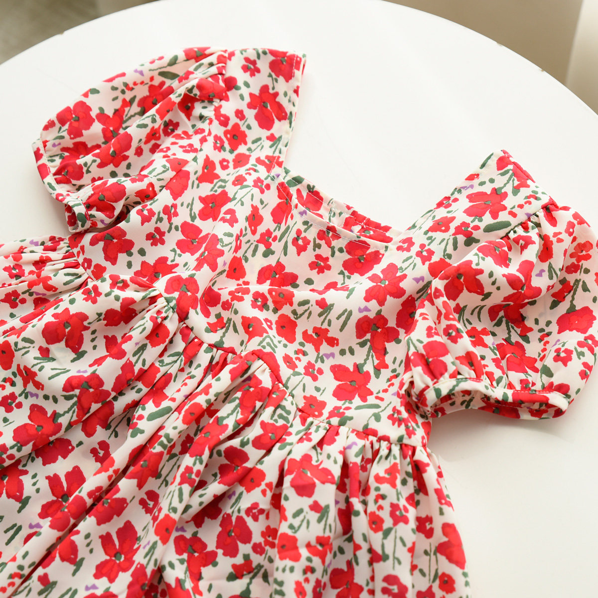 Детское платье, шифоновый наряд маленькой принцессы, цветочный принт, квадратный вырез, короткий рукав