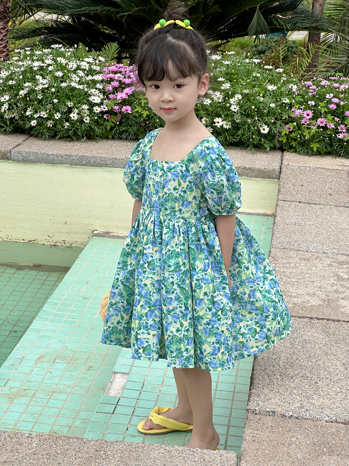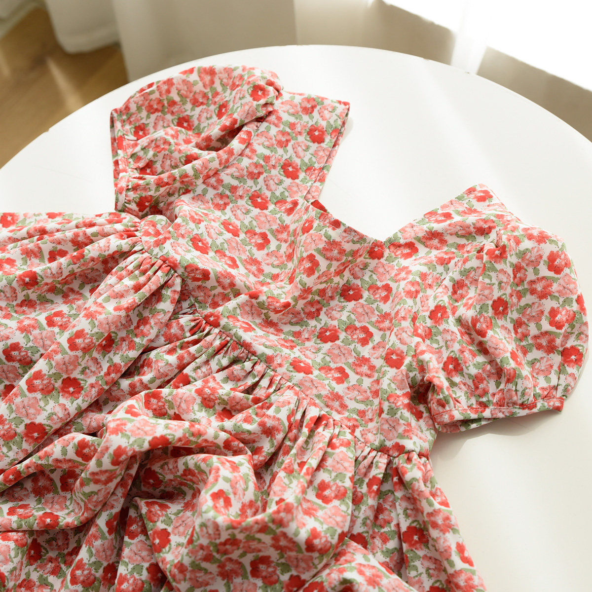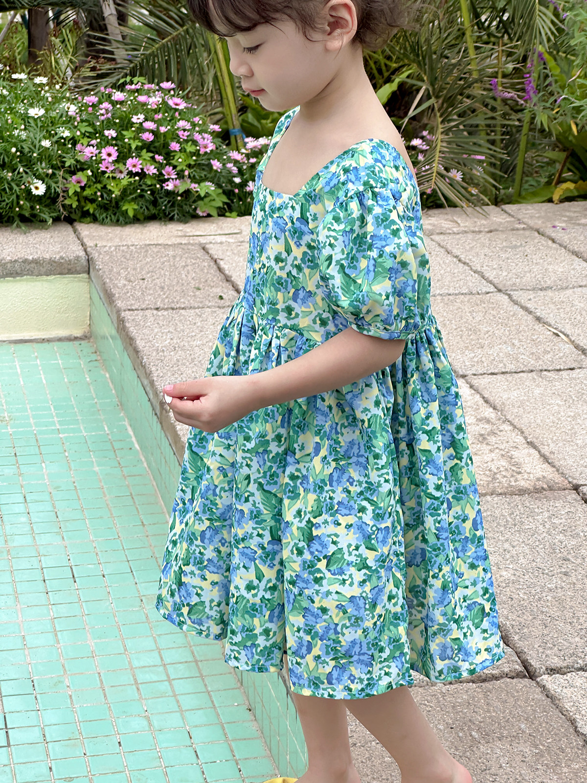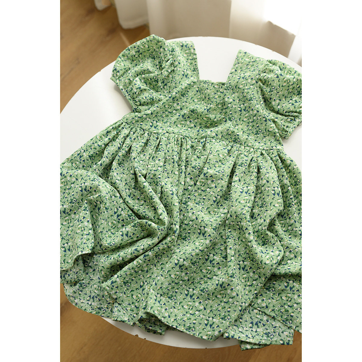Детское платье, шифоновый наряд маленькой принцессы, цветочный принт, квадратный вырез, короткий рукав