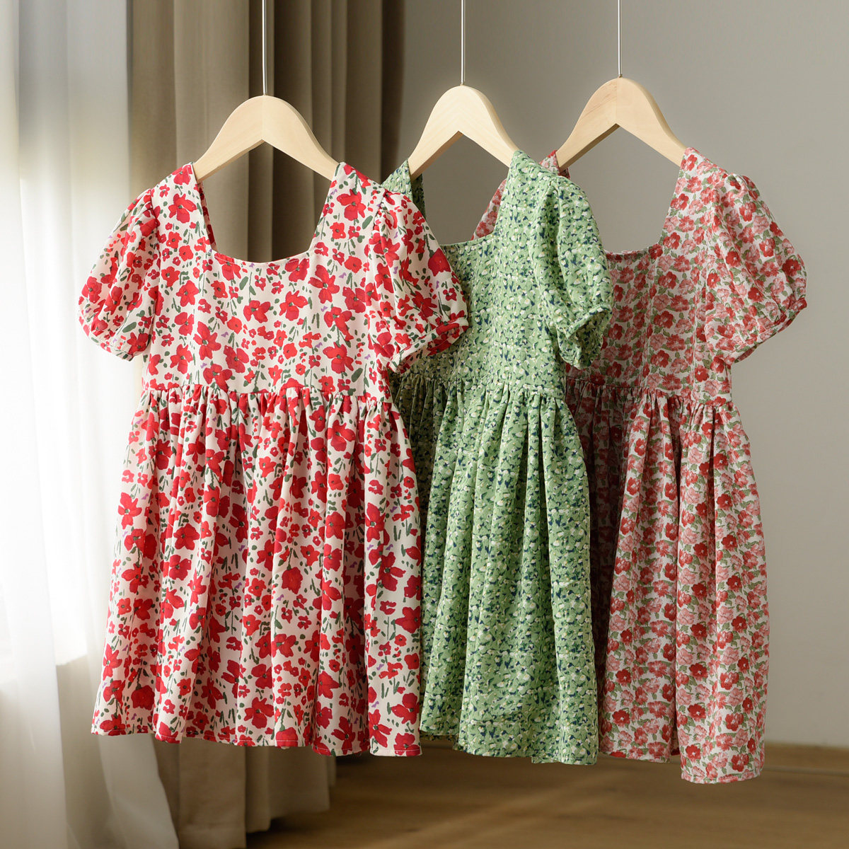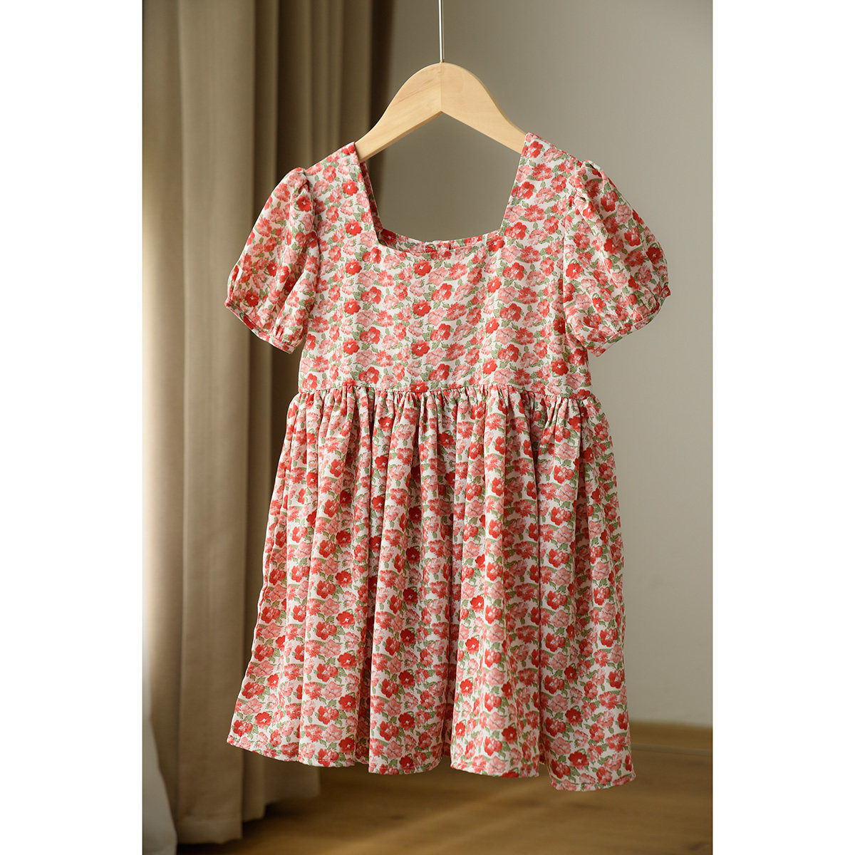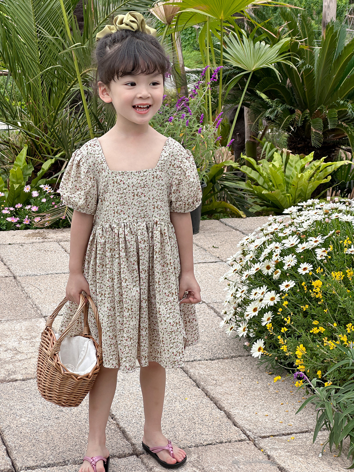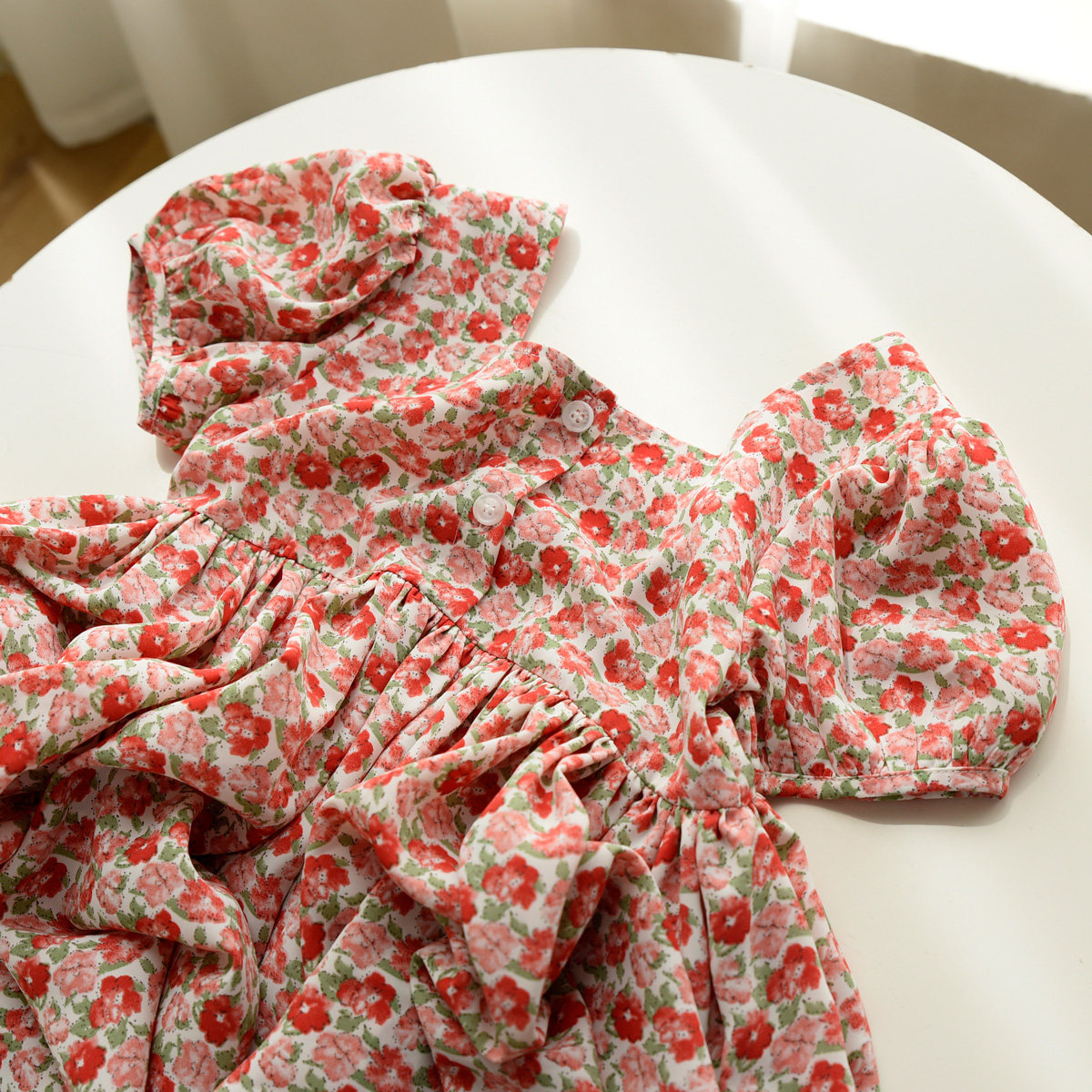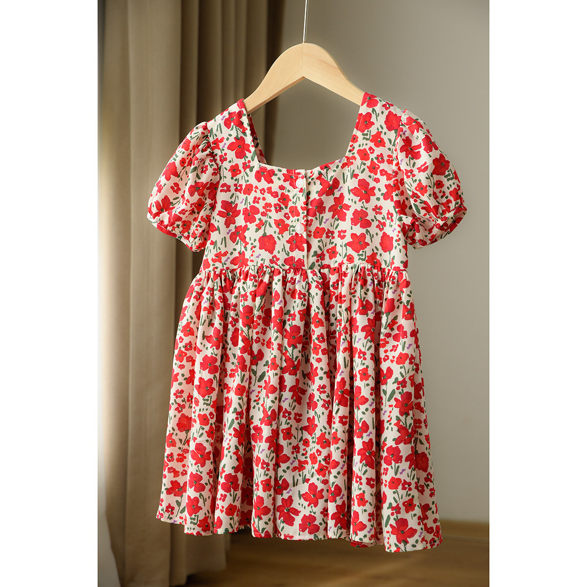 Детское платье, шифоновый наряд маленькой принцессы, цветочный принт, квадратный вырез, короткий рукав