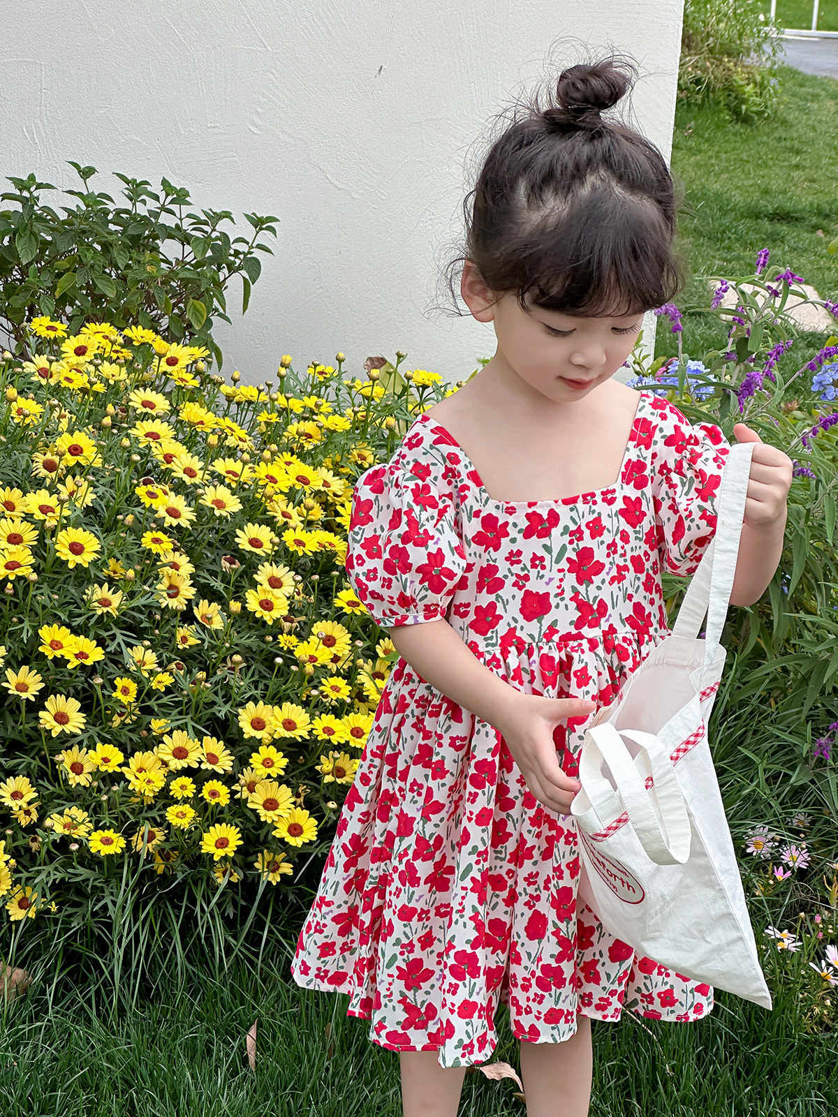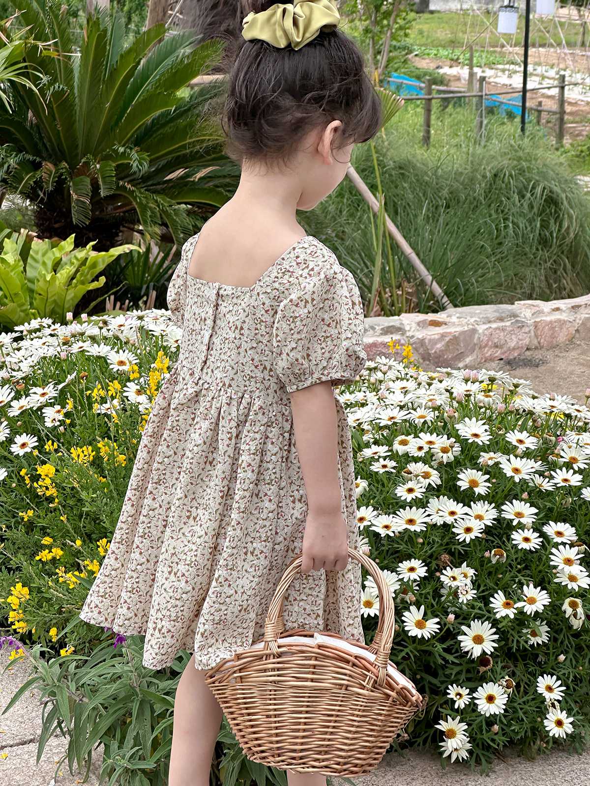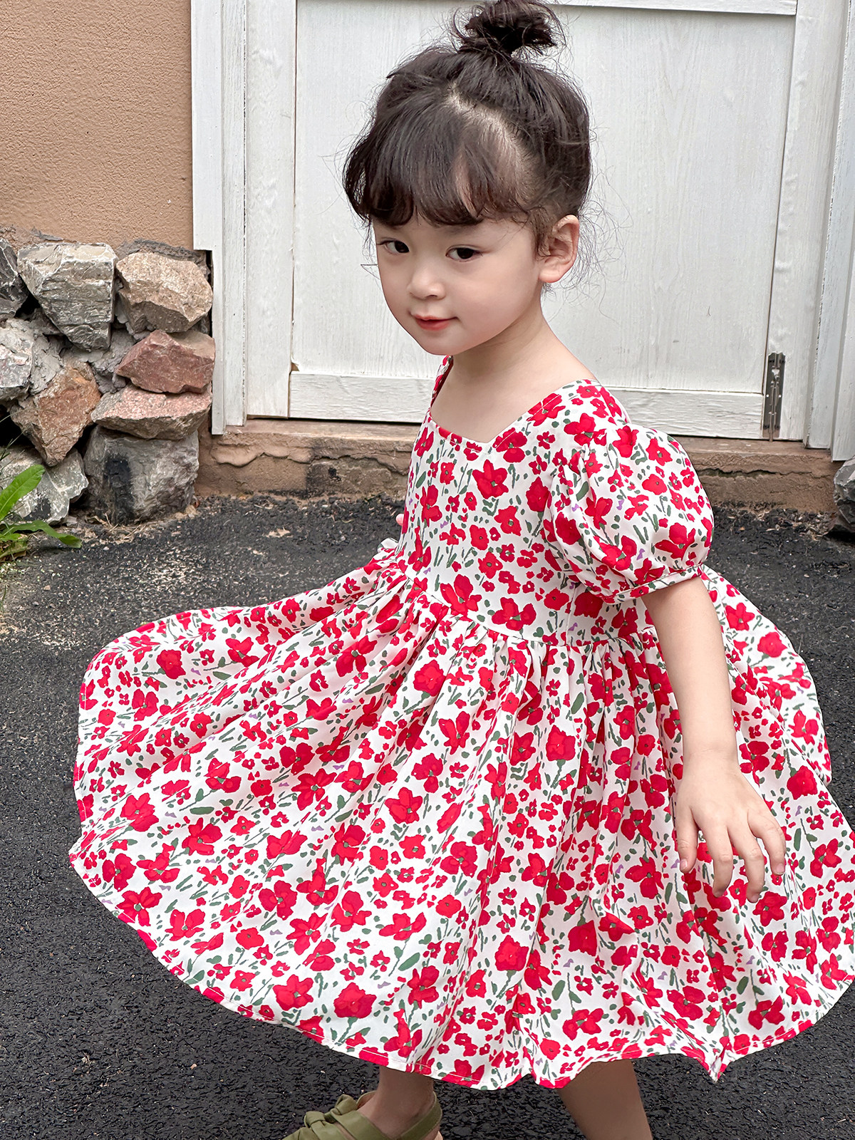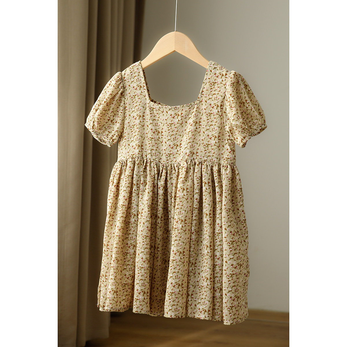 Детское платье, шифоновый наряд маленькой принцессы, цветочный принт, квадратный вырез, короткий рукав