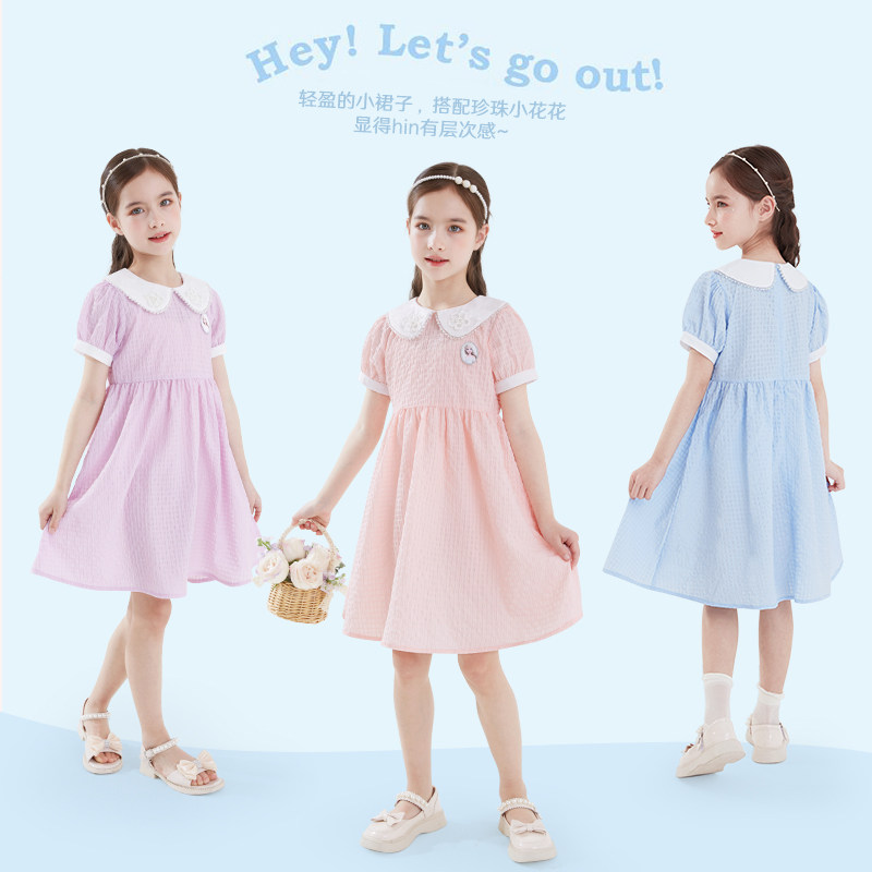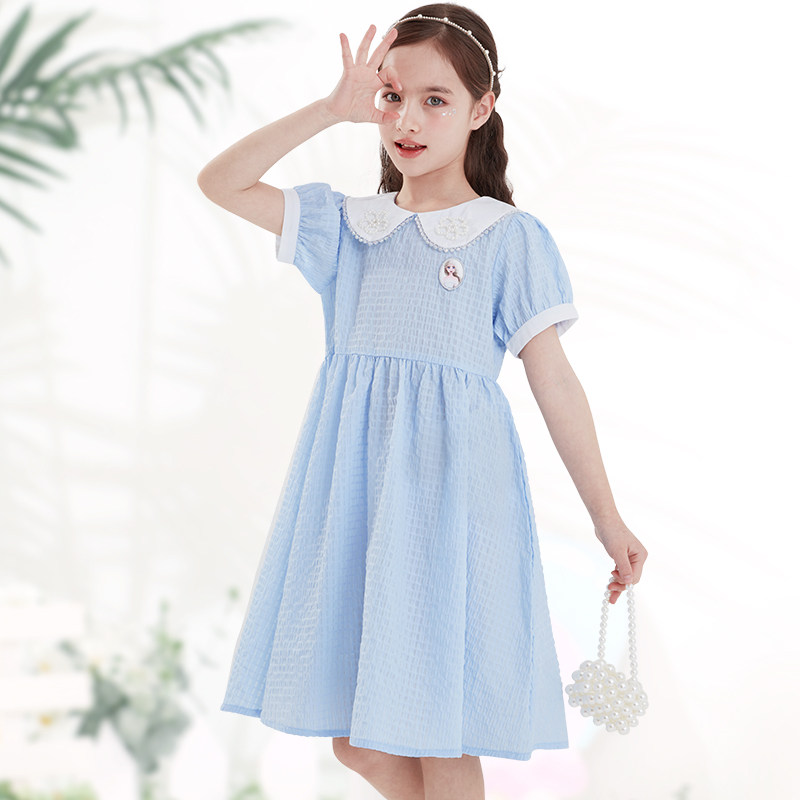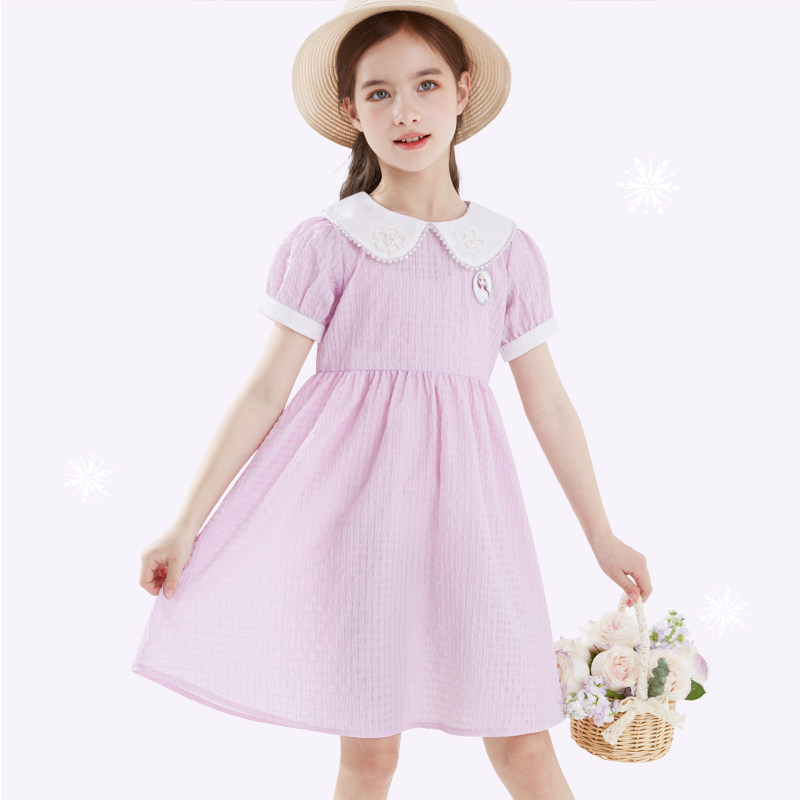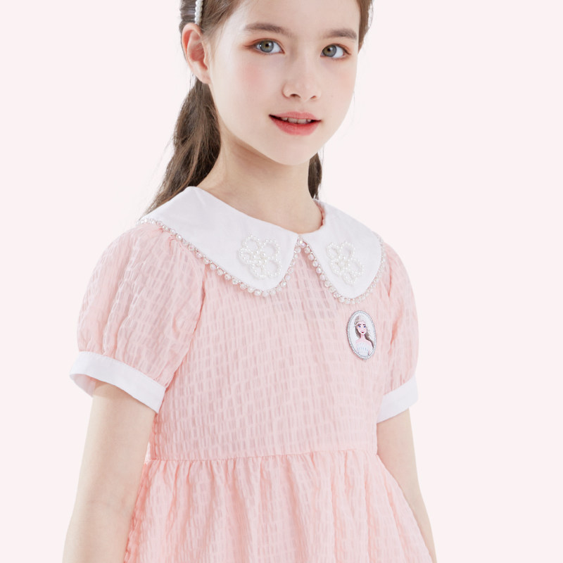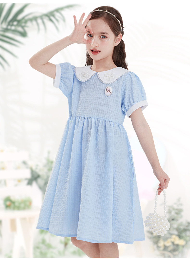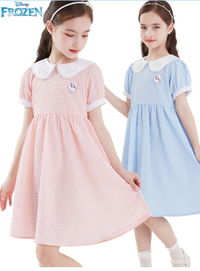 Дисней, детская летняя одежда, наряд маленькой принцессы, мини-юбка, тонкая милая кукла, детская одежда, новая коллекция, принцесса Эльза, короткий рукав, кукольный воротник