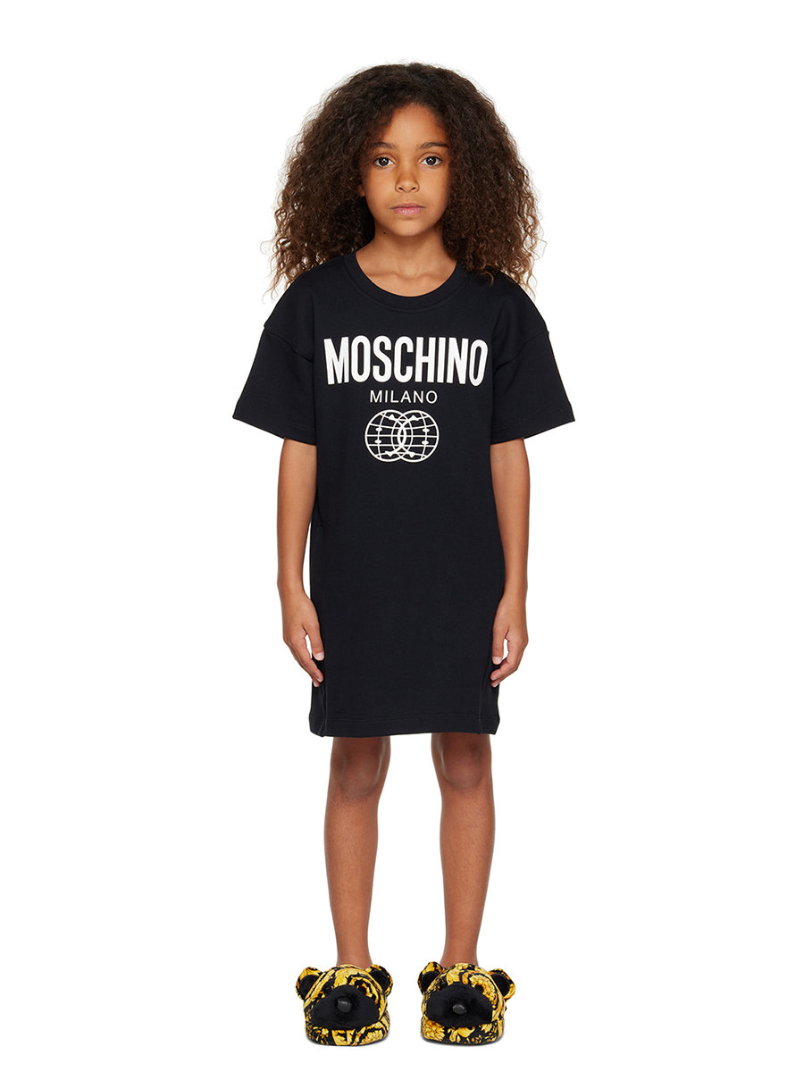 Spot Moschino детская одежда Smiley Logop Logop заблокировано короткое платье с круглой шеей