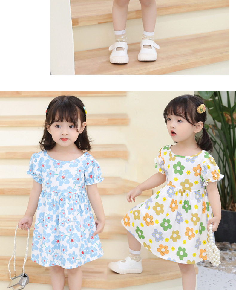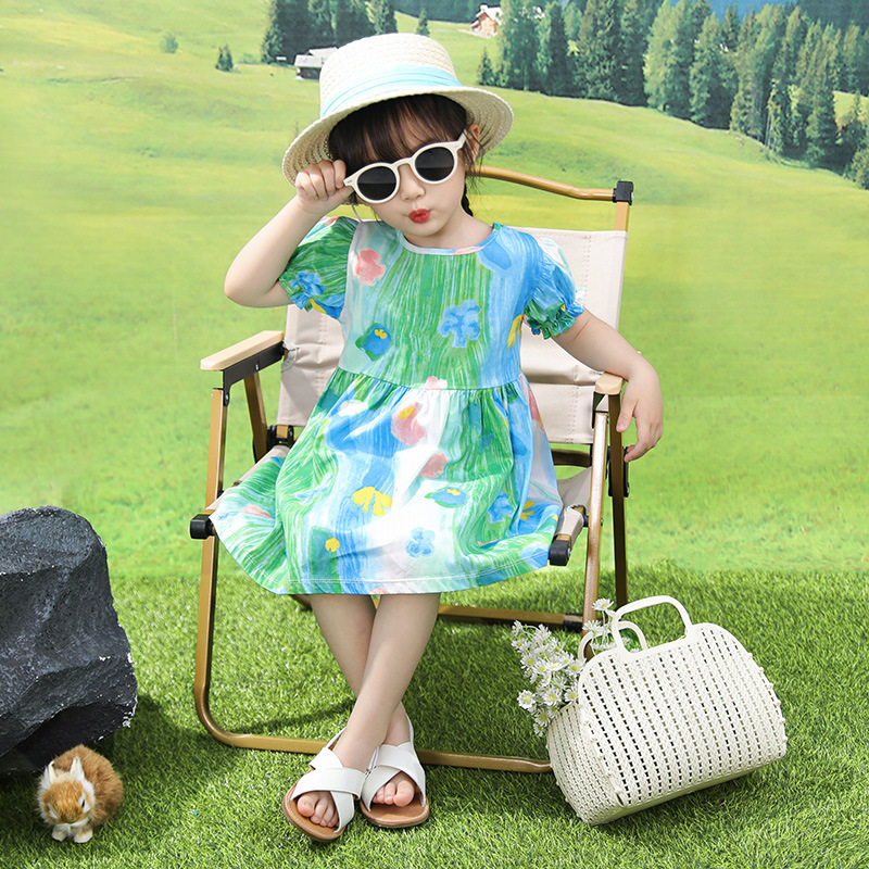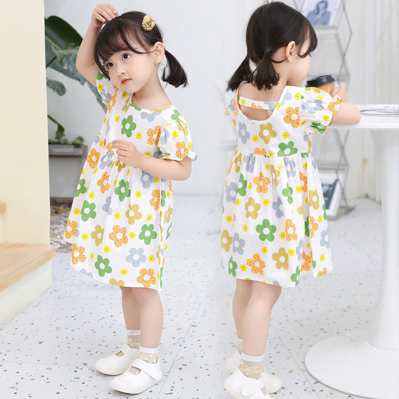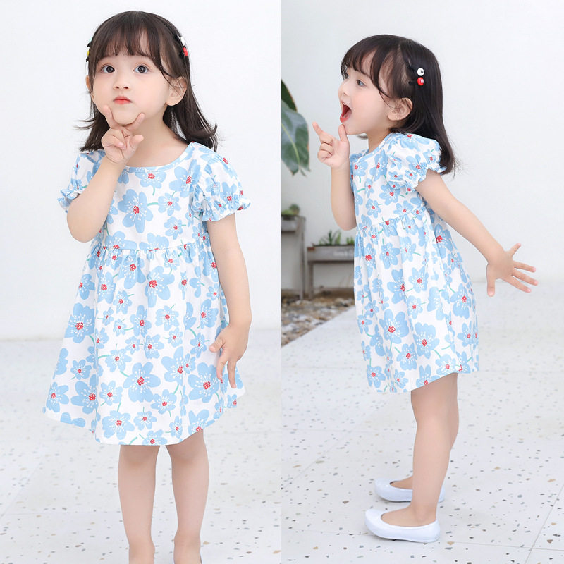 Летнее платье, хлопковая дышащая детская летняя одежда, в западном стиле, в корейском стиле, в цветочек