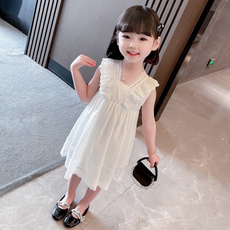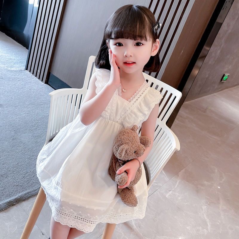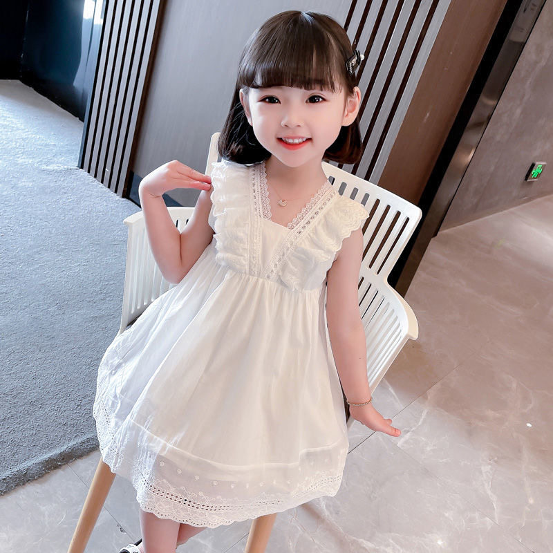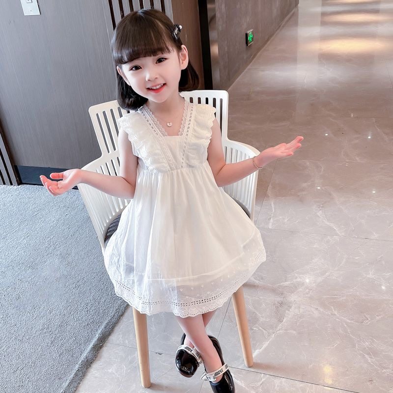 Летнее детское платье, милый детский наряд маленькой принцессы без рукавов, в корейском стиле, в западном стиле