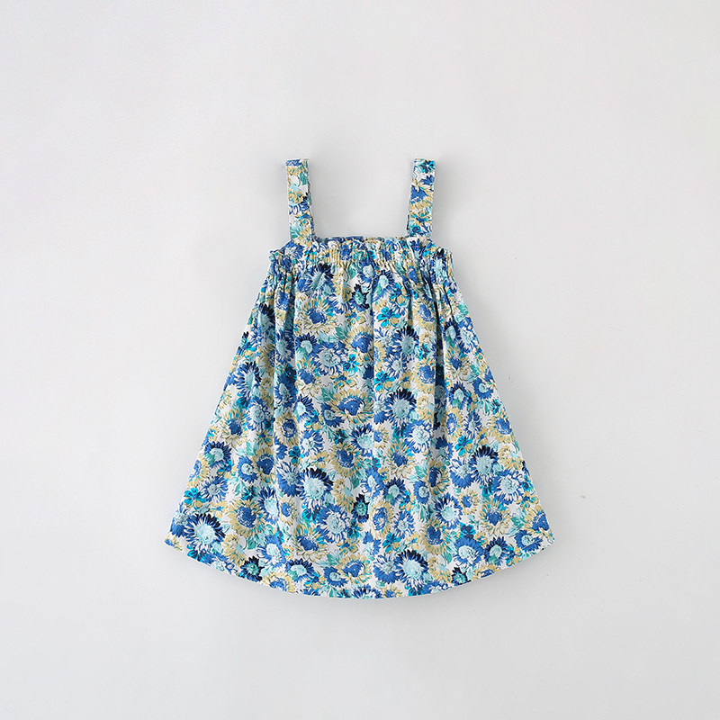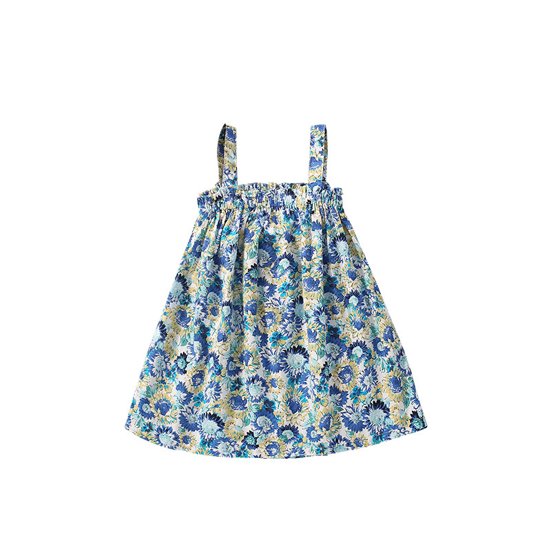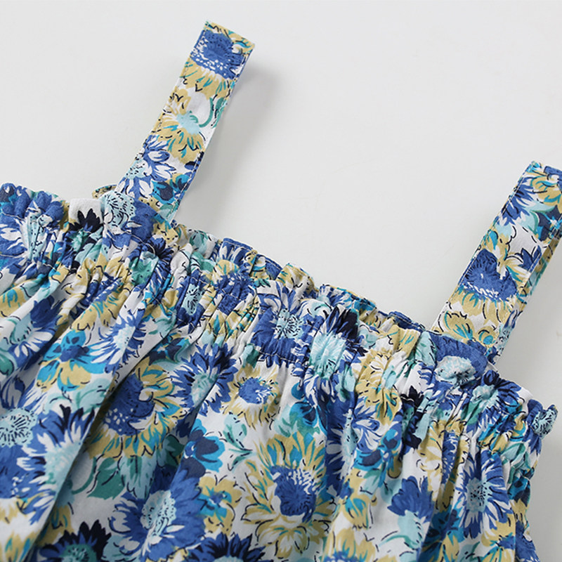 Хлопковое детское летнее платье без рукавов, цветочный принт, в западном стиле, европейский стиль, детская одежда