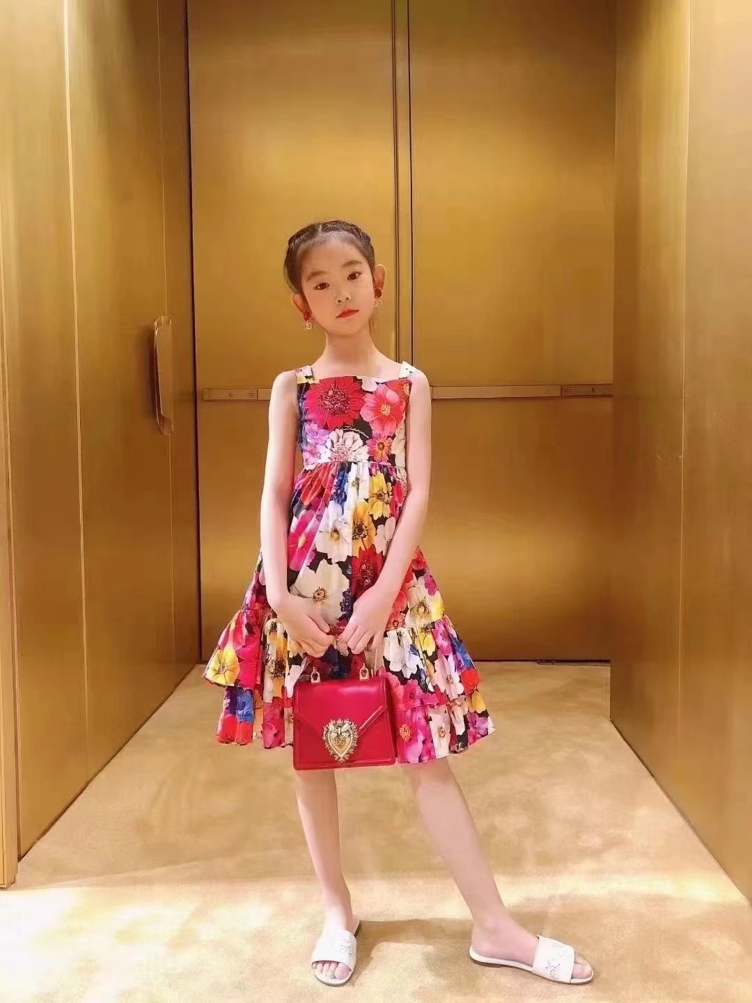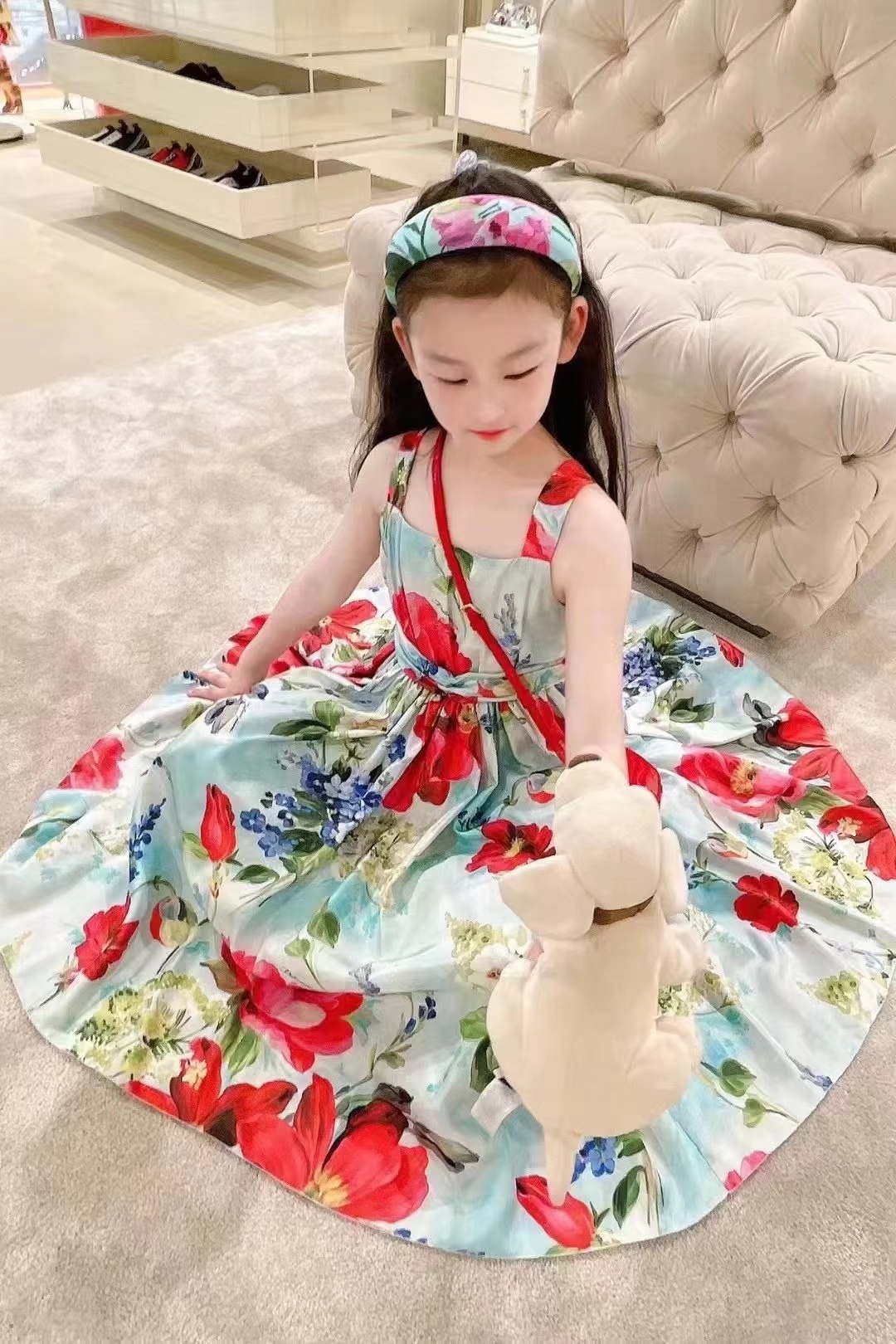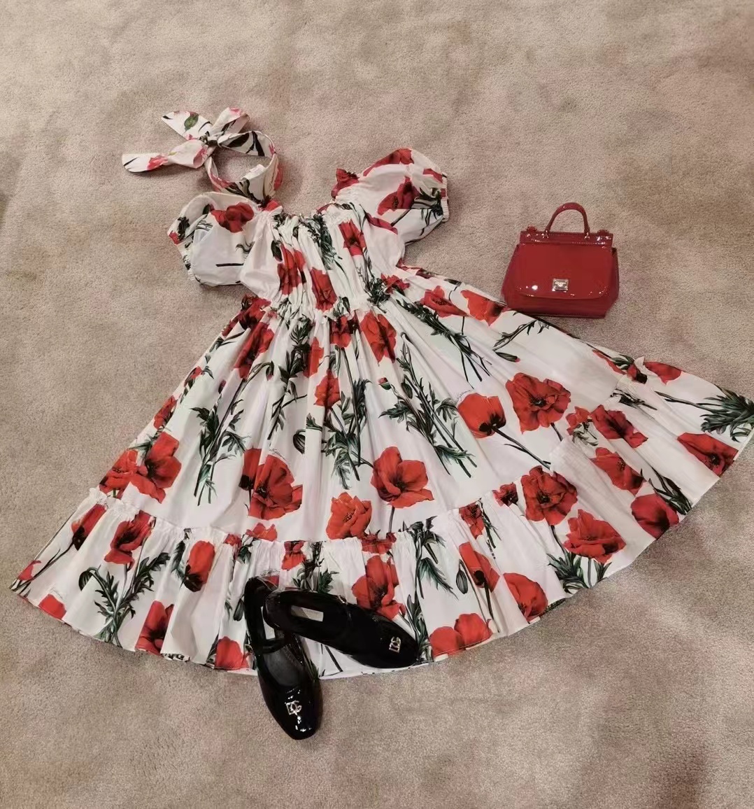 Летний наряд маленькой принцессы, платье без рукавов, юбка, в цветочек, эффект подтяжки