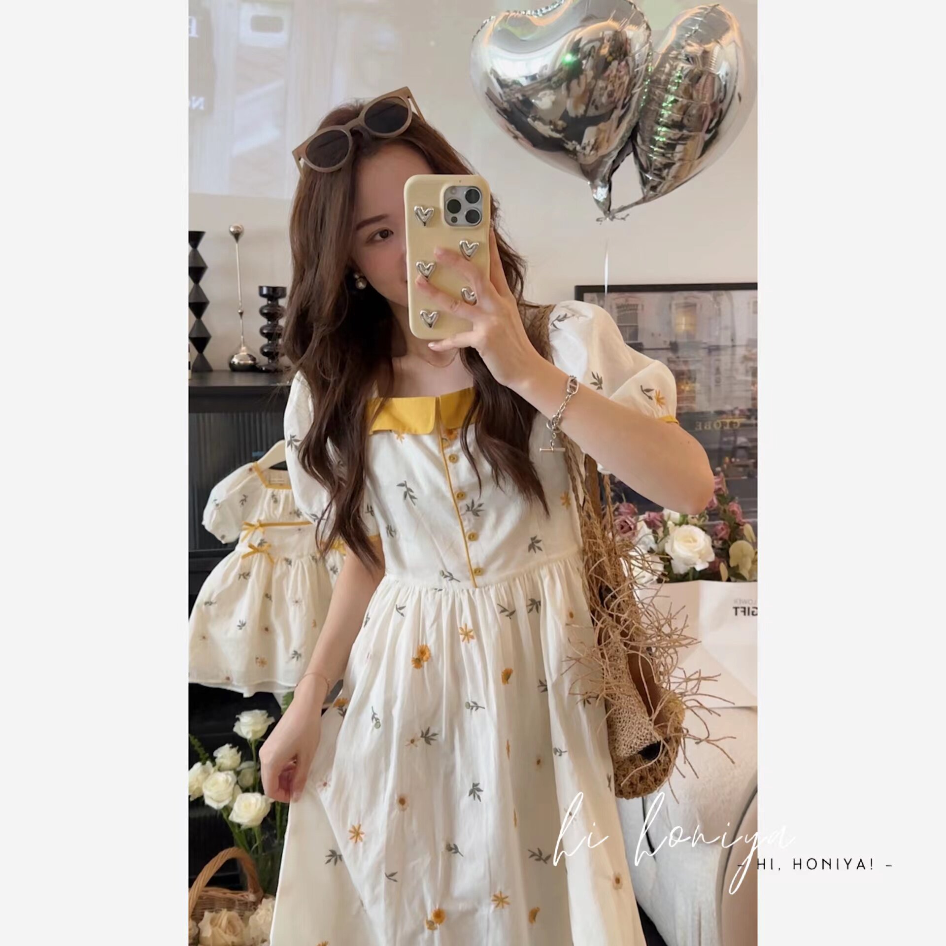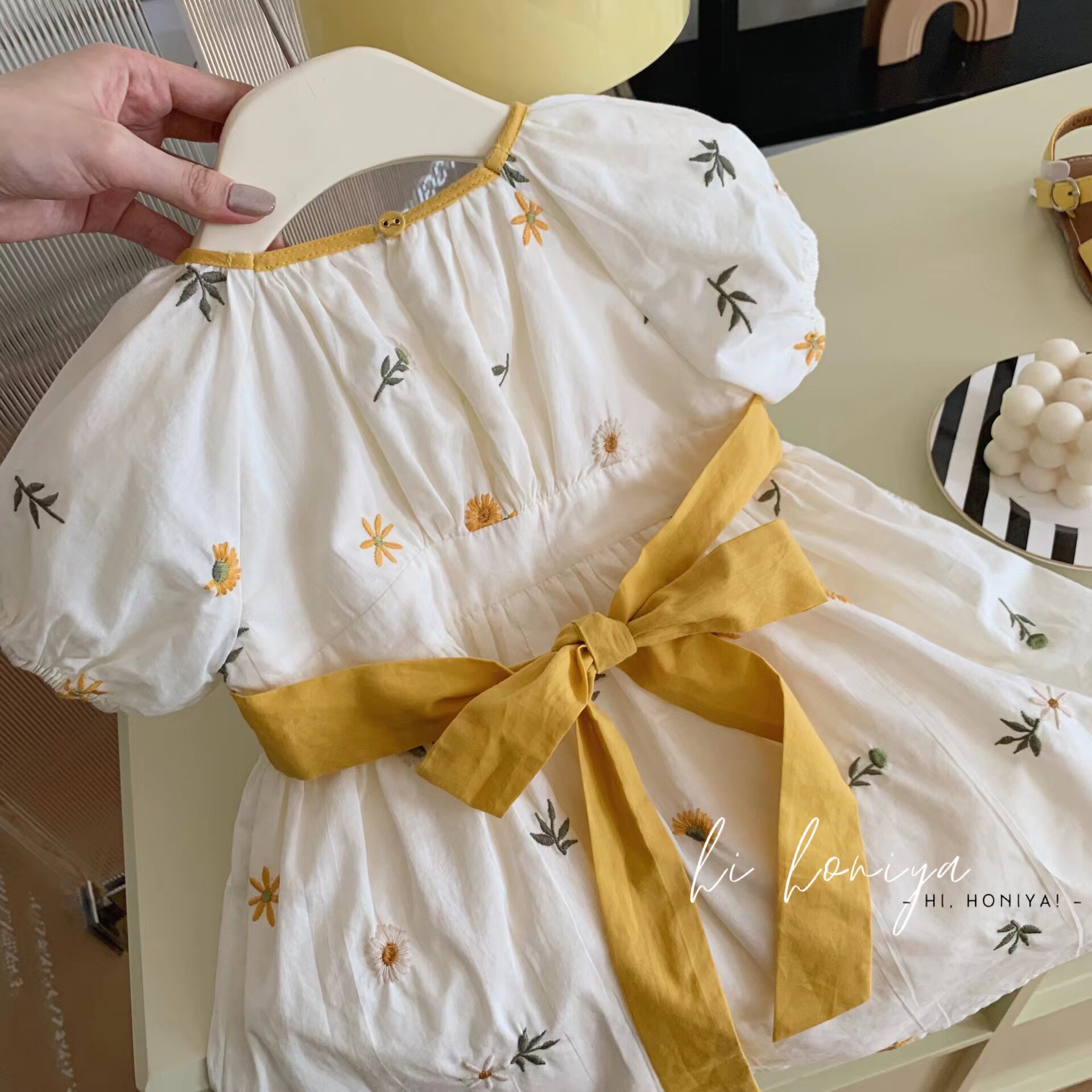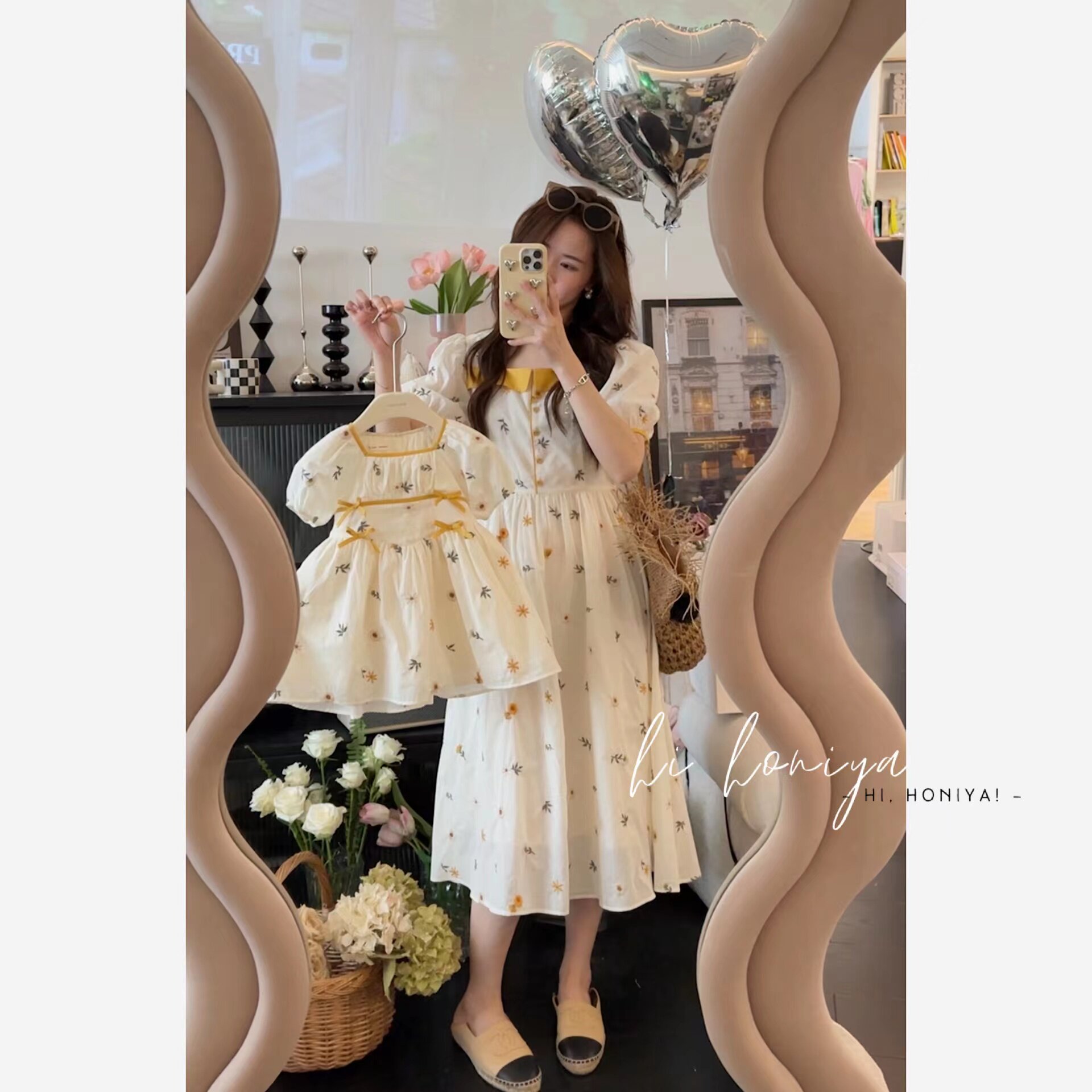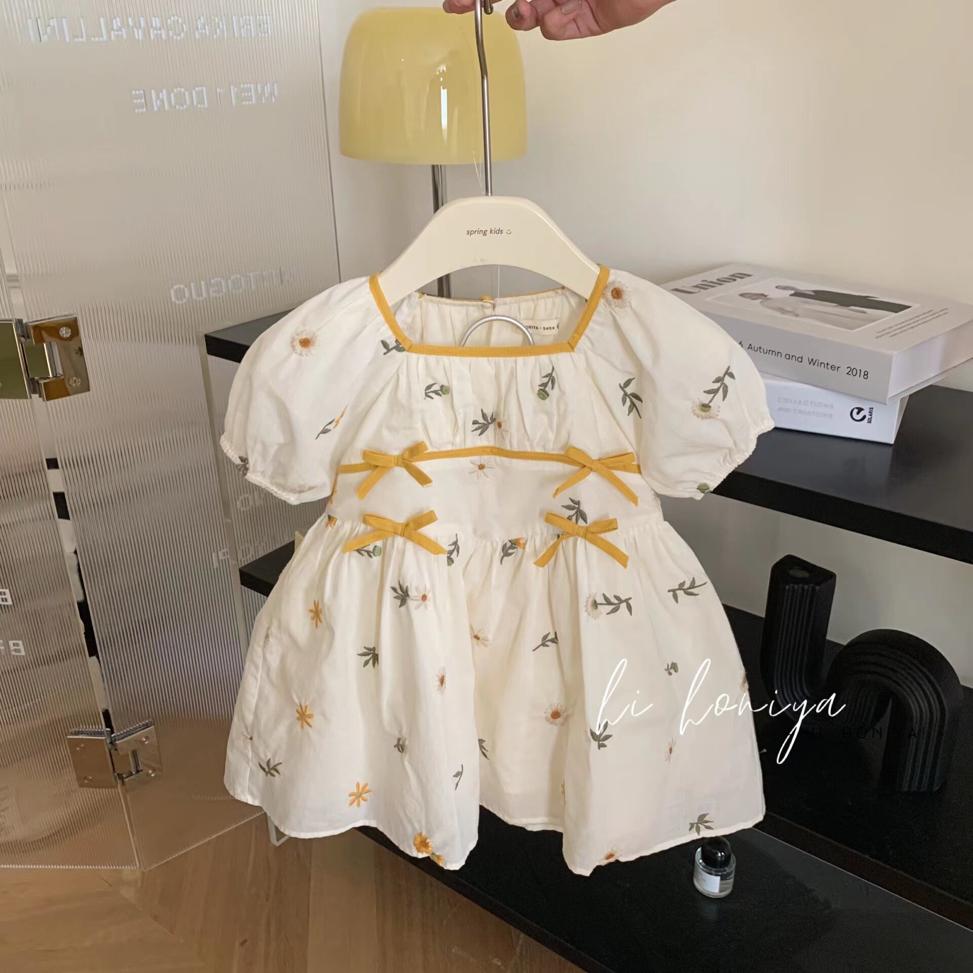 Платье, наряд маленькой принцессы с бантиком, детская одежда, цветочный принт, с вышивкой, квадратный вырез, семейный стиль