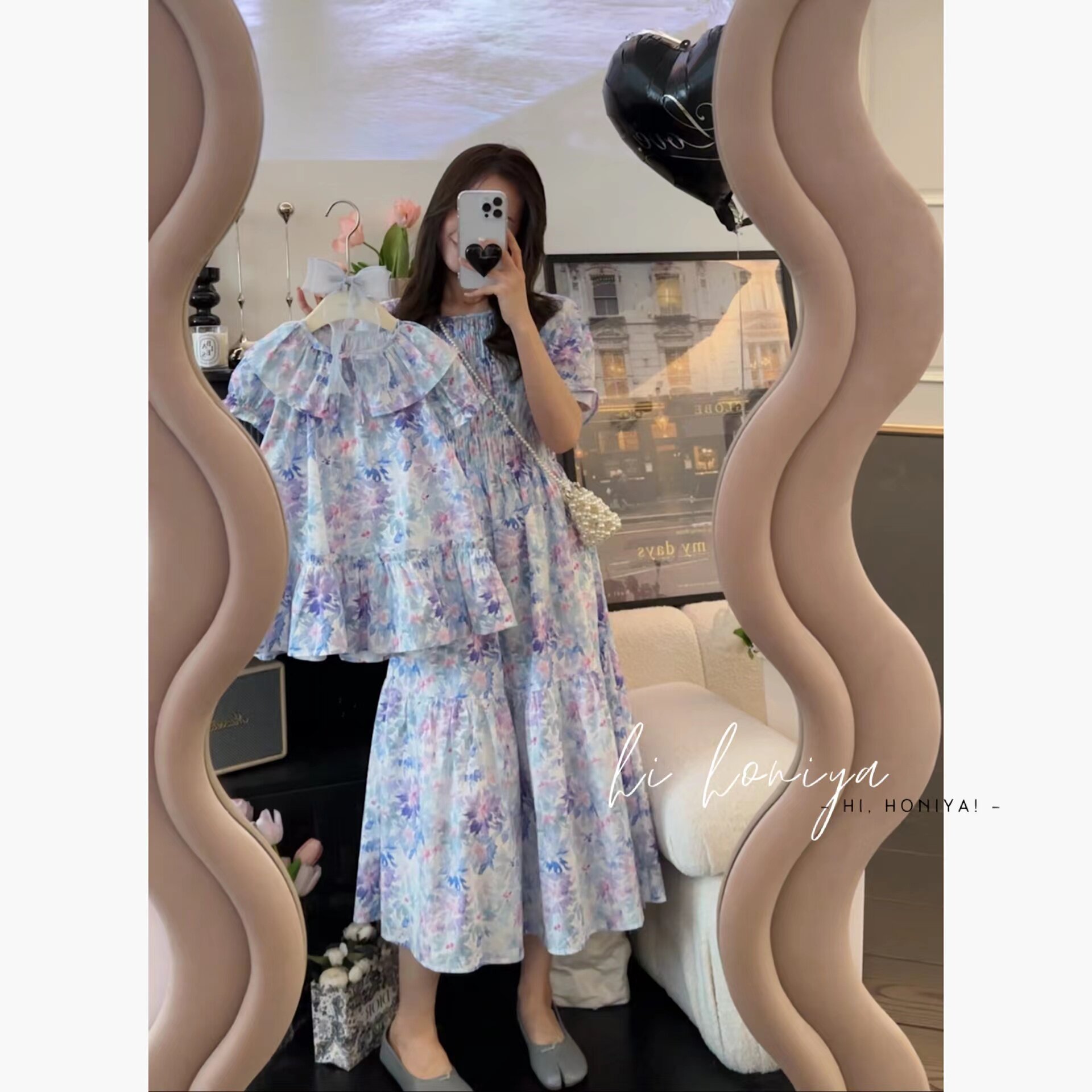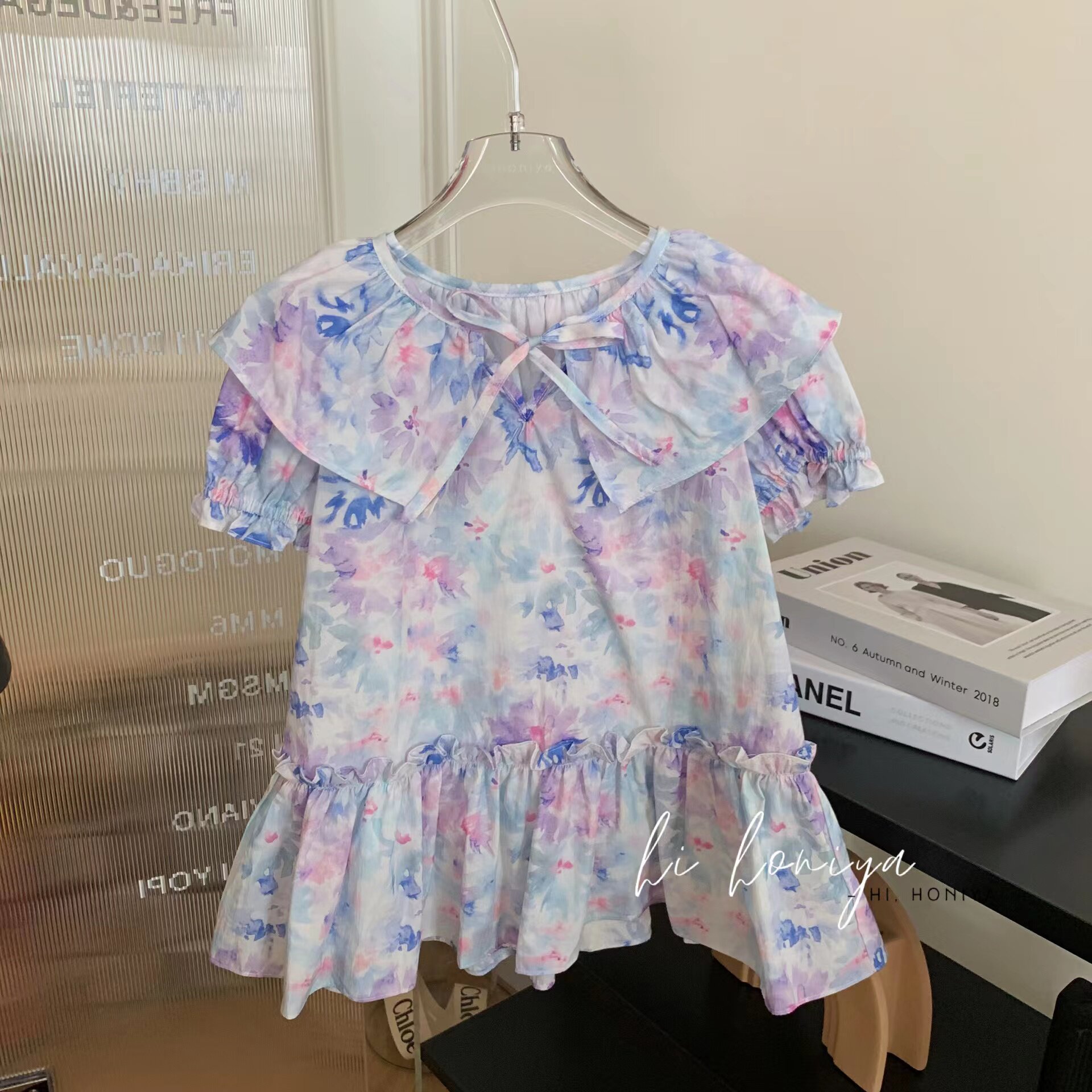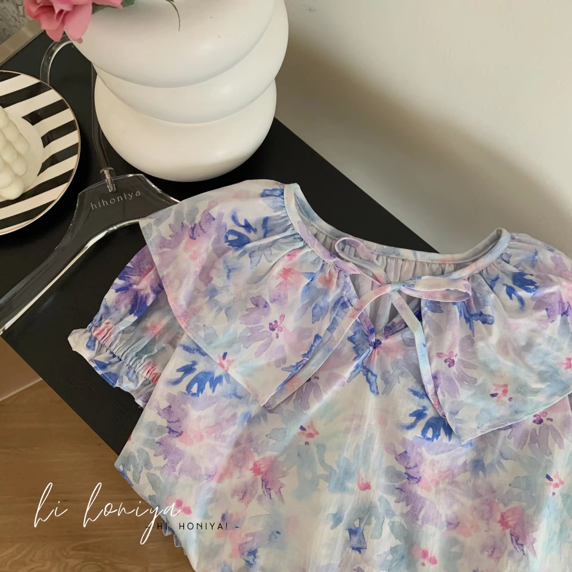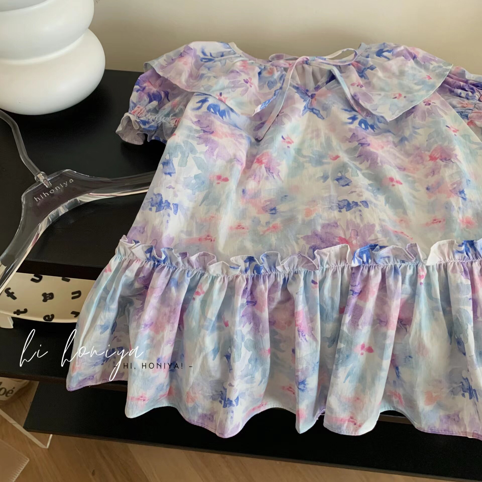Летняя юбка, акварель, кукла, детское платье, детская одежда, цветочный принт, семейный стиль, кукольный воротник