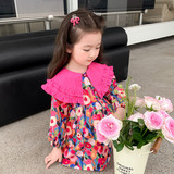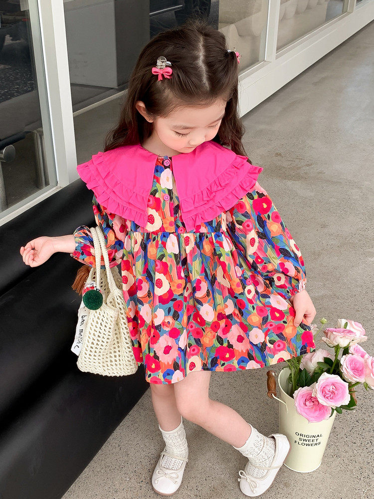 Осеннее платье, детский осенний наряд маленькой принцессы, коллекция 2023, в западном стиле, цветочный принт, в корейском стиле, популярно в интернете