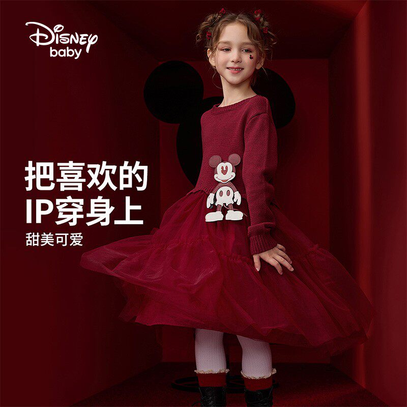 Дисней, красный лонгслив, юбка, пуховик, наряд маленькой принцессы, детская одежда