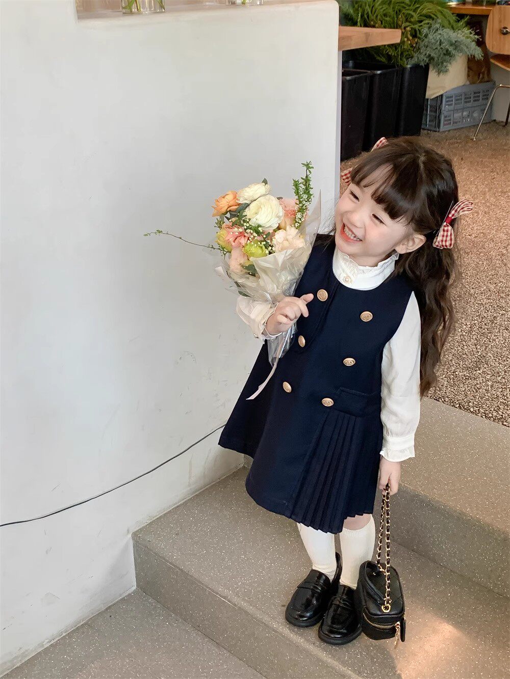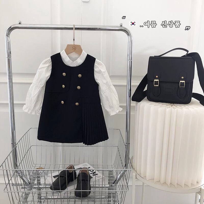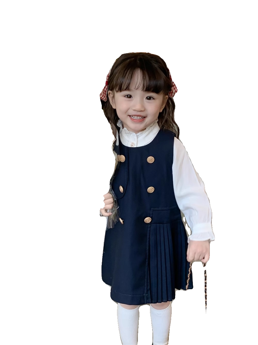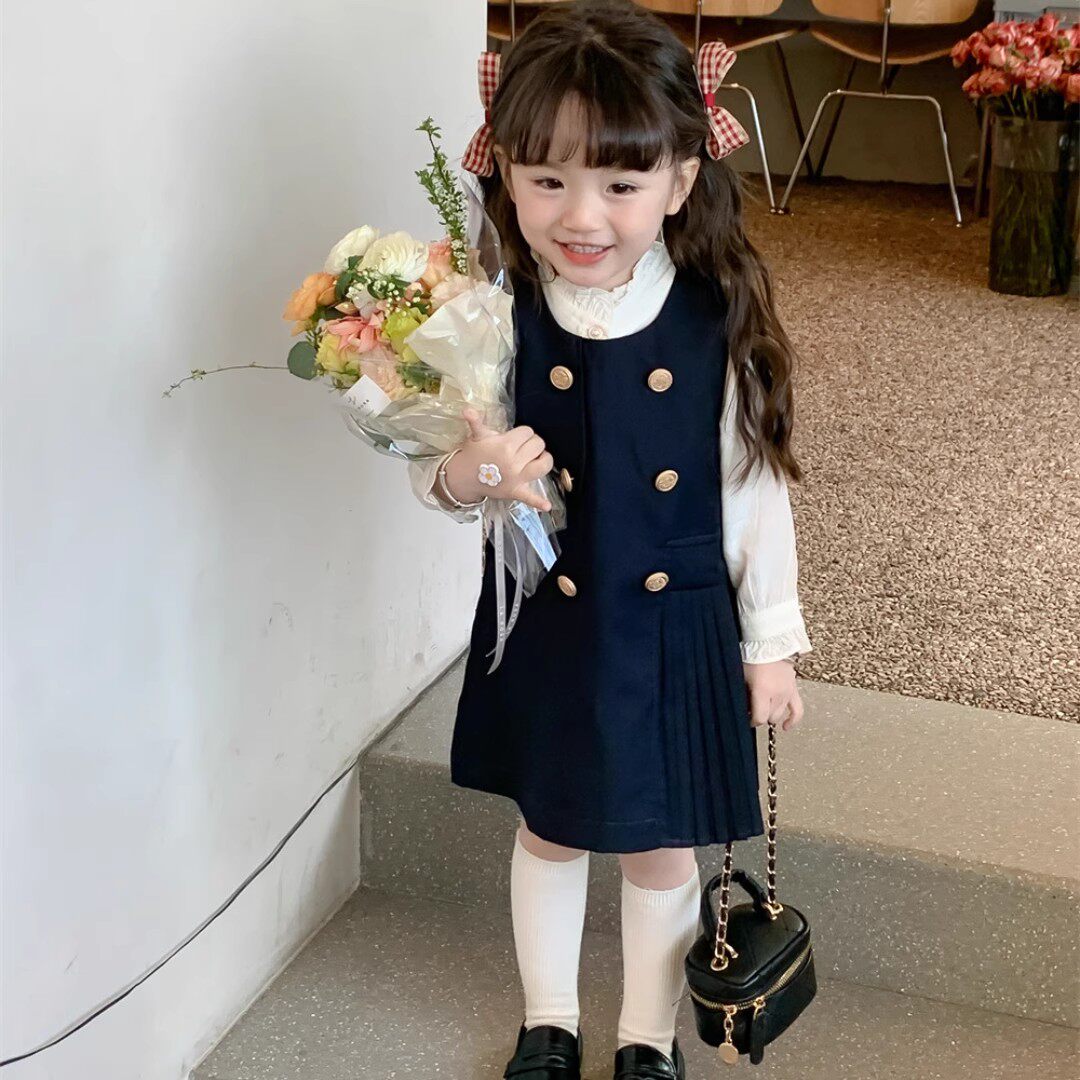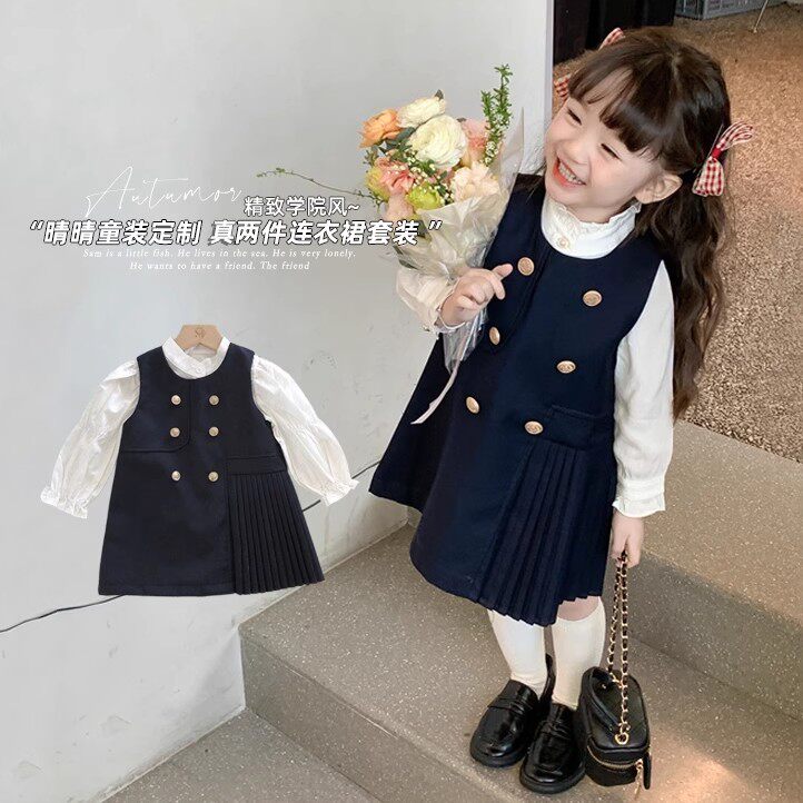 Рубашка, платье без рукавов, осенний комплект для девочек, в корейском стиле, в западном стиле