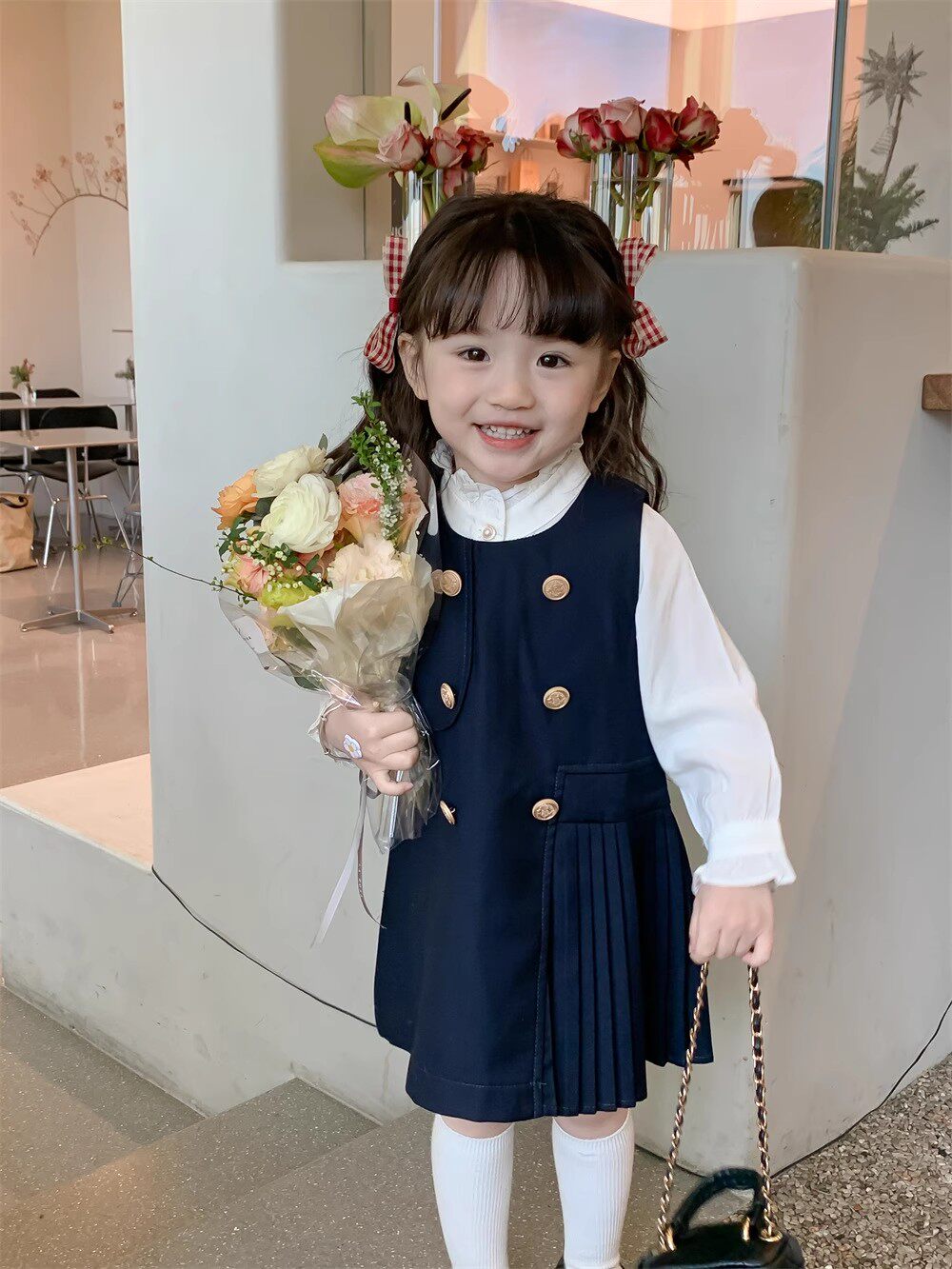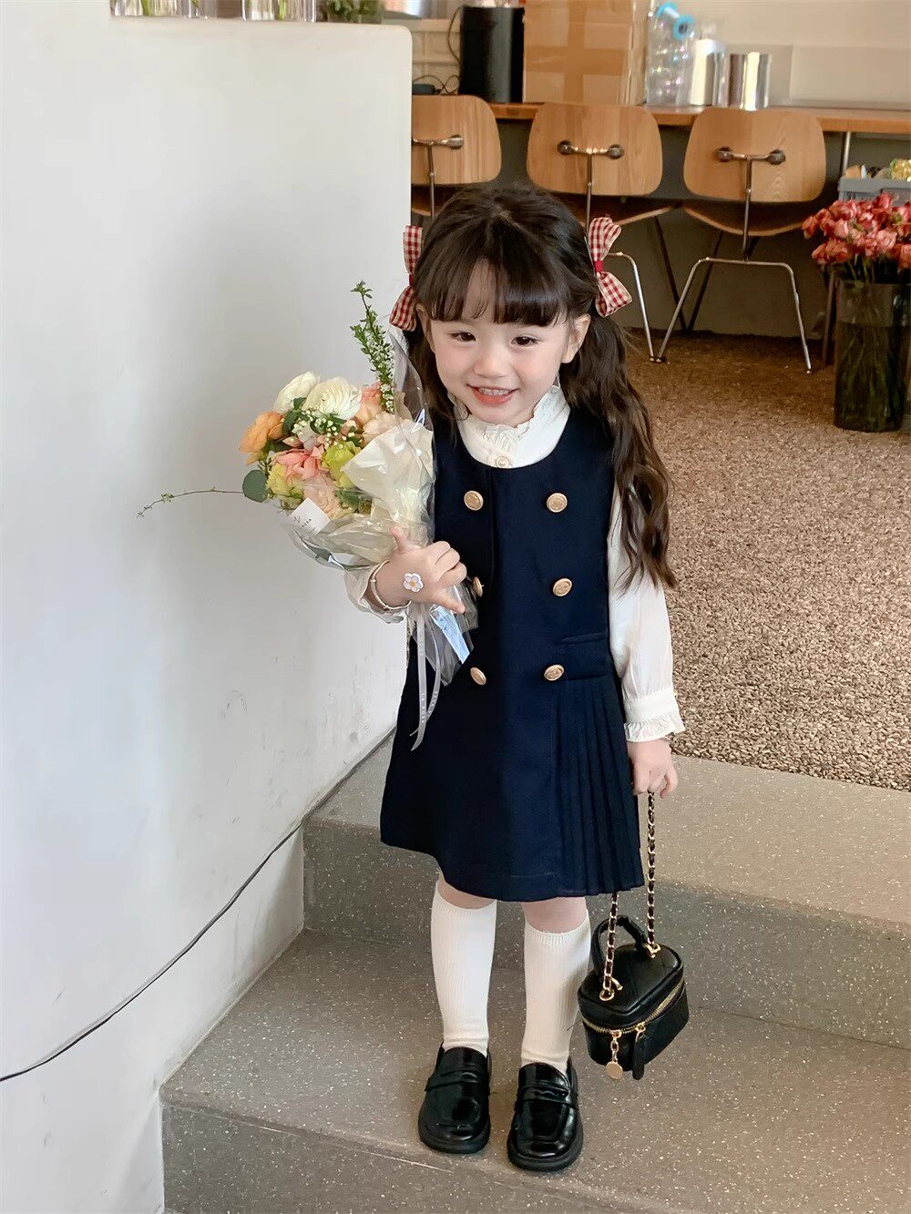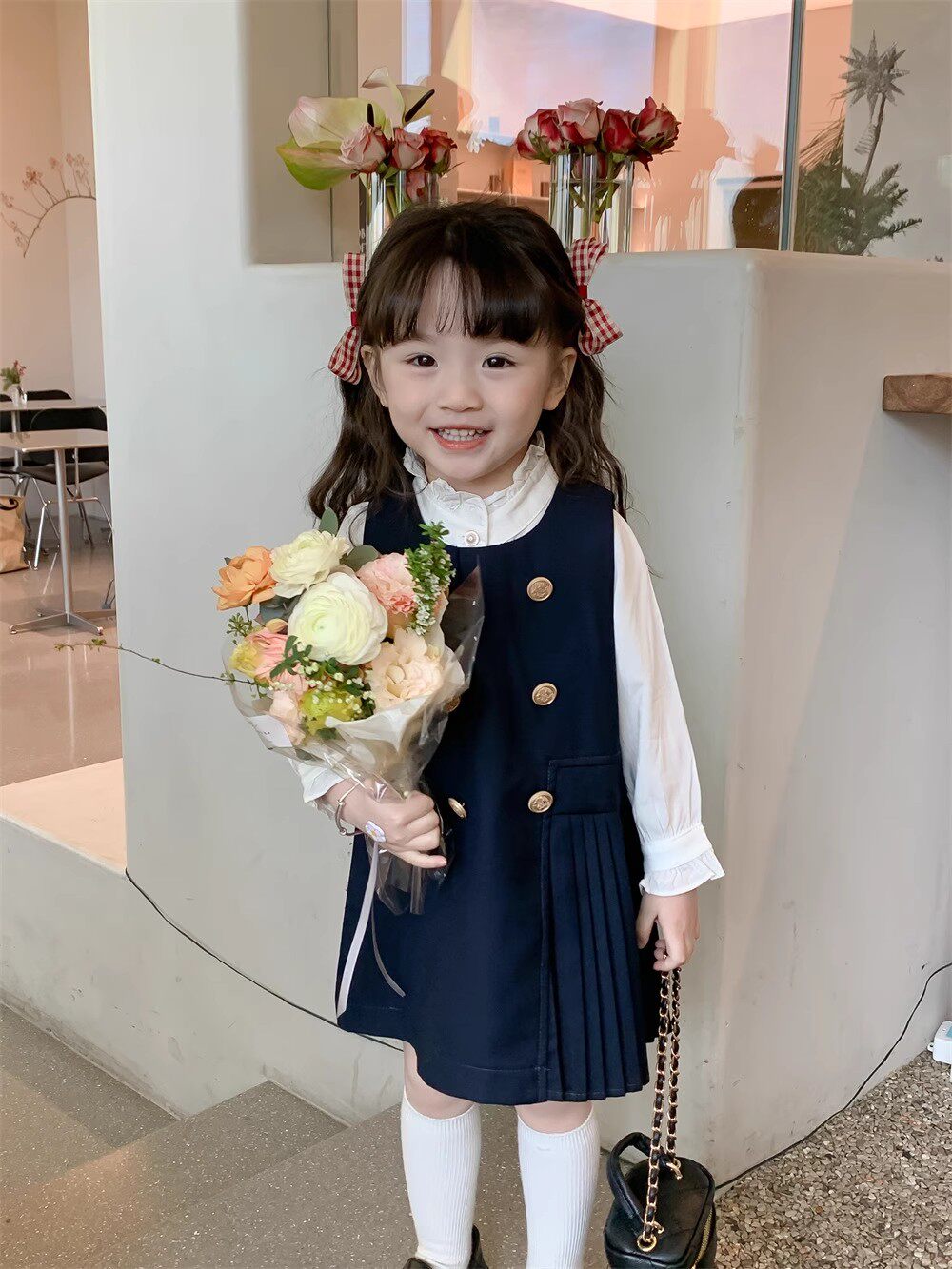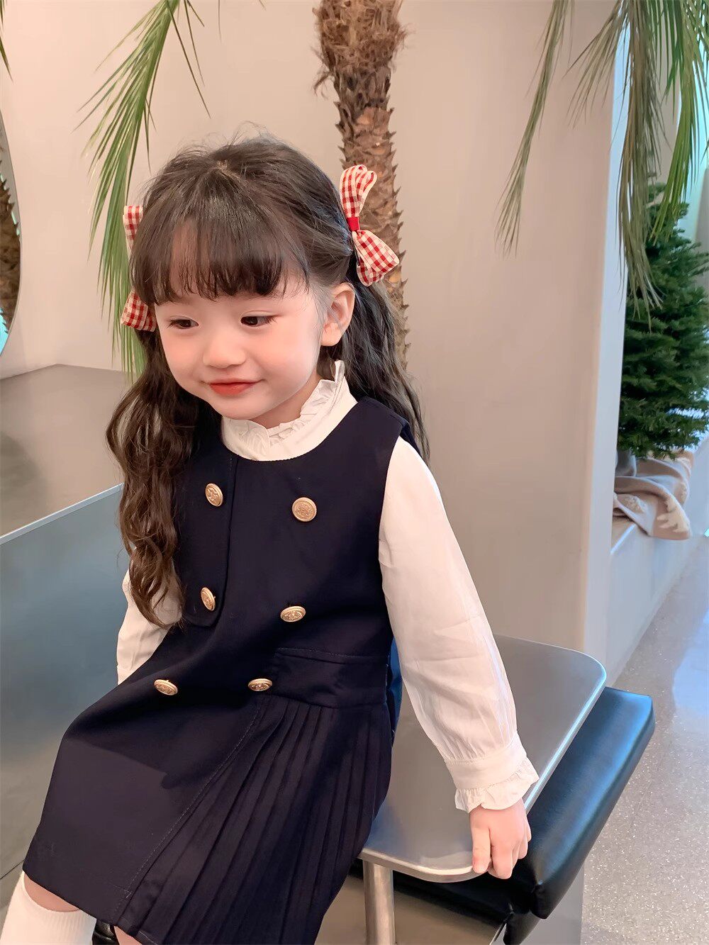 Рубашка, платье без рукавов, осенний комплект для девочек, в корейском стиле, в западном стиле