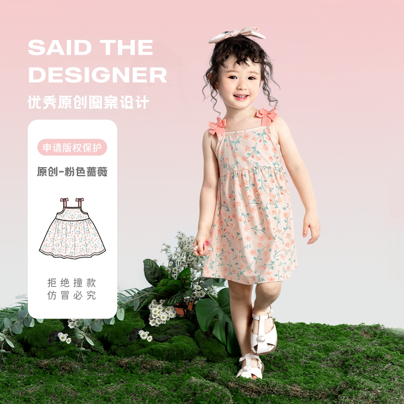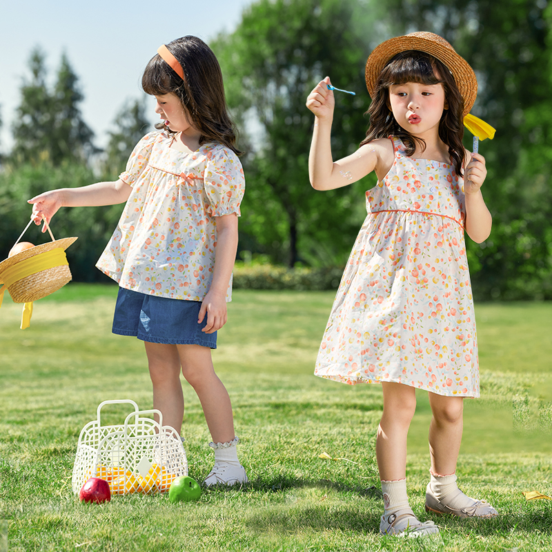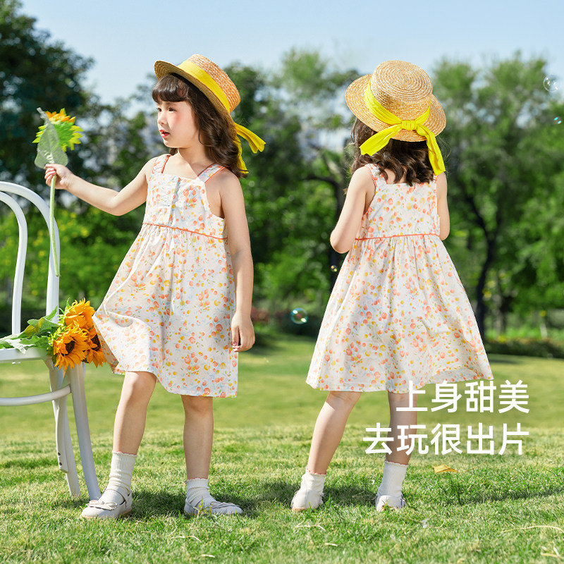 Антибактериальное хлопковое летнее платье, тонкая юбка, детский наряд маленькой принцессы для девочек, цветочный принт
