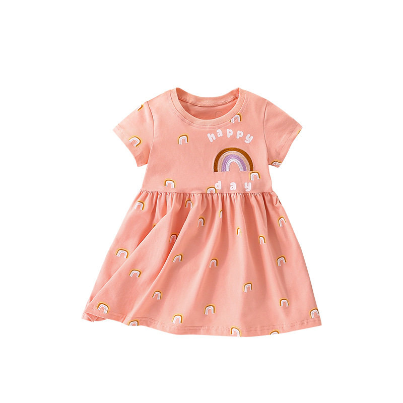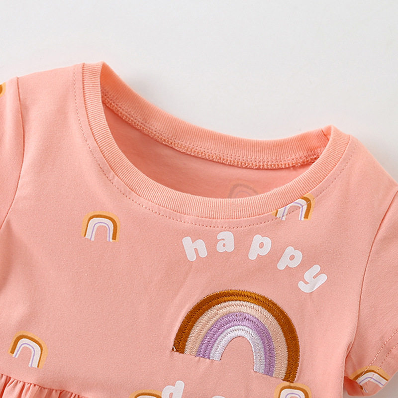 Детская летняя одежда, платье с круглым воротником, короткий рукав, европейский стиль, в западном стиле