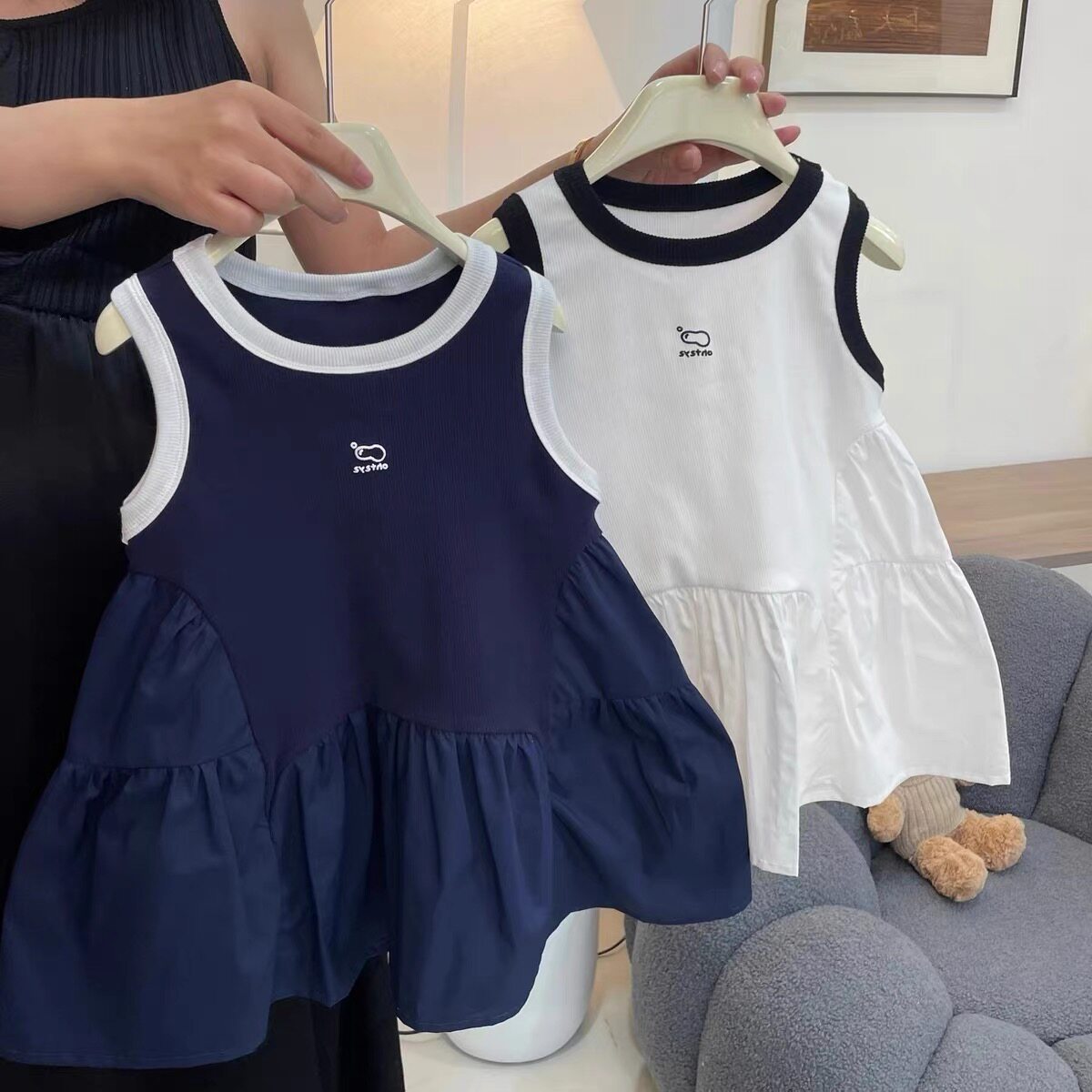 Летнее платье без рукавов, юбка, детская хлопковая летняя одежда, в западном стиле, в корейском стиле