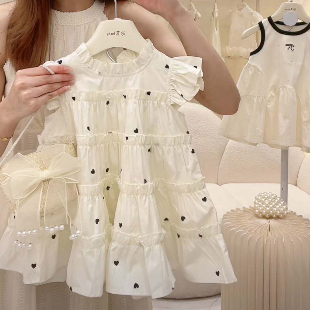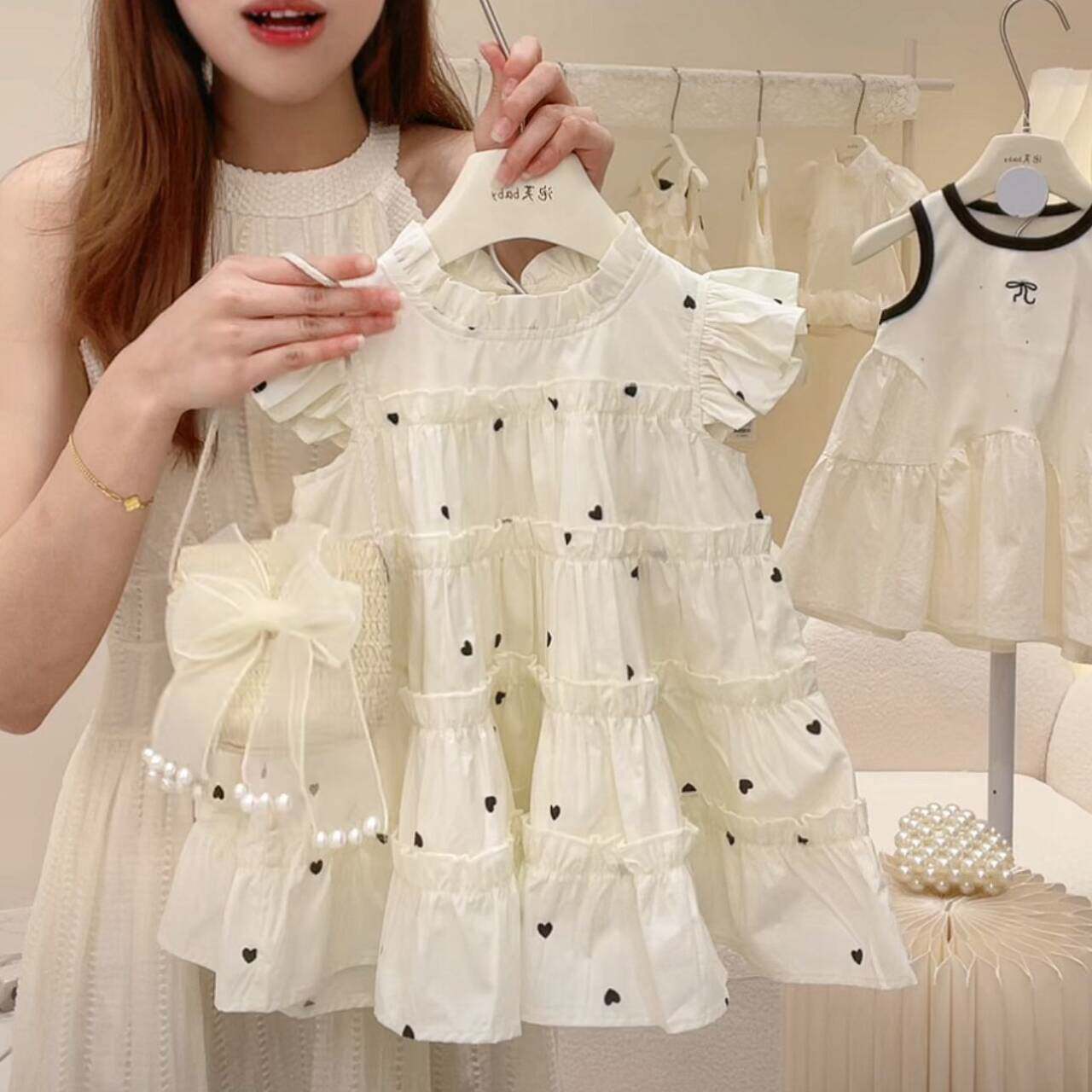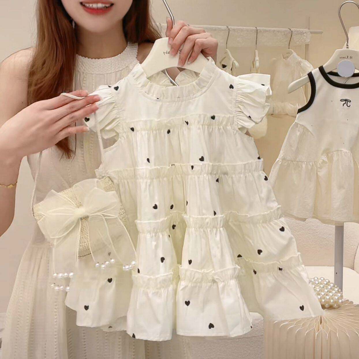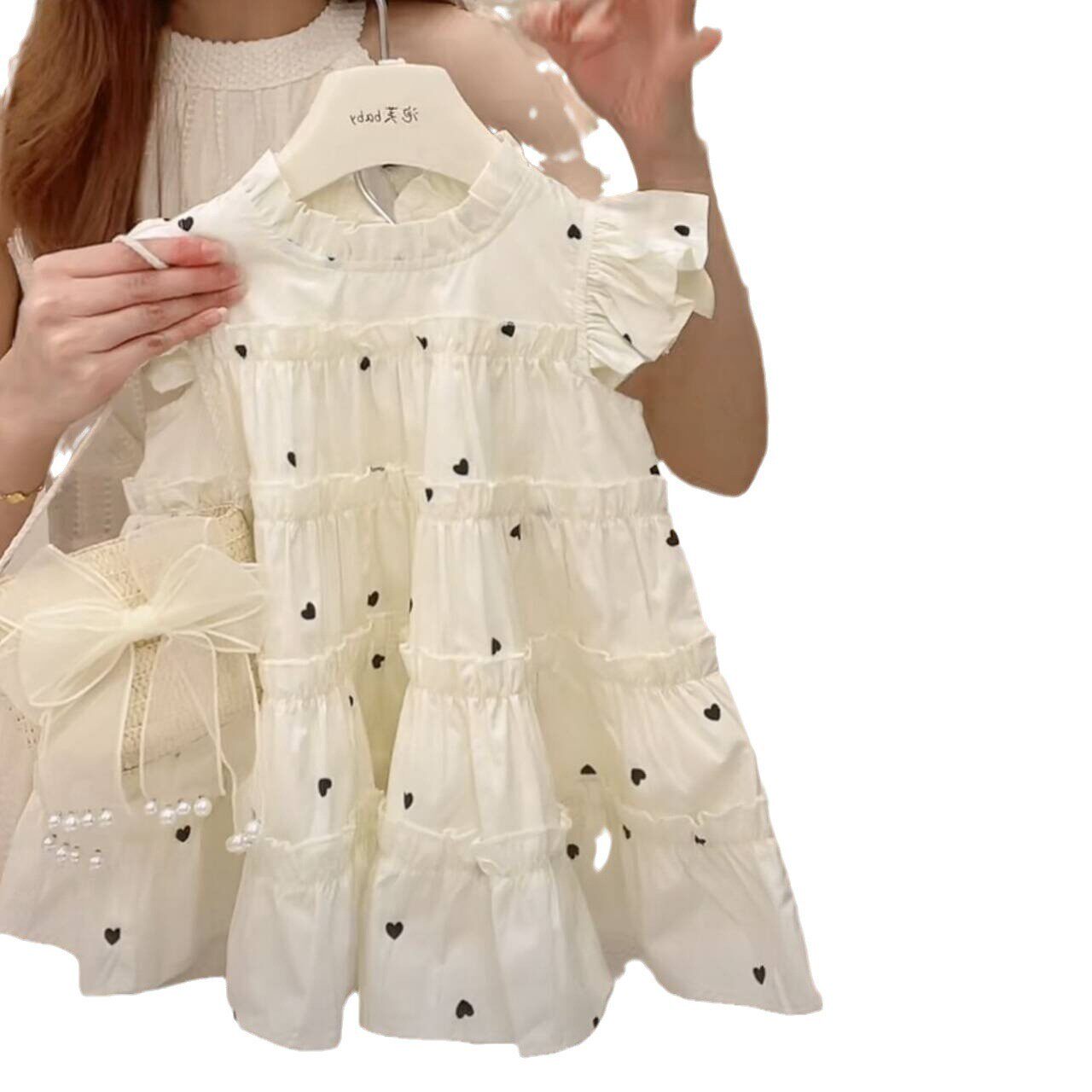 Детский наряд маленькой принцессы, юбка, платье с коротким рукавом, пляжное платье, летняя одежда, в корейском стиле