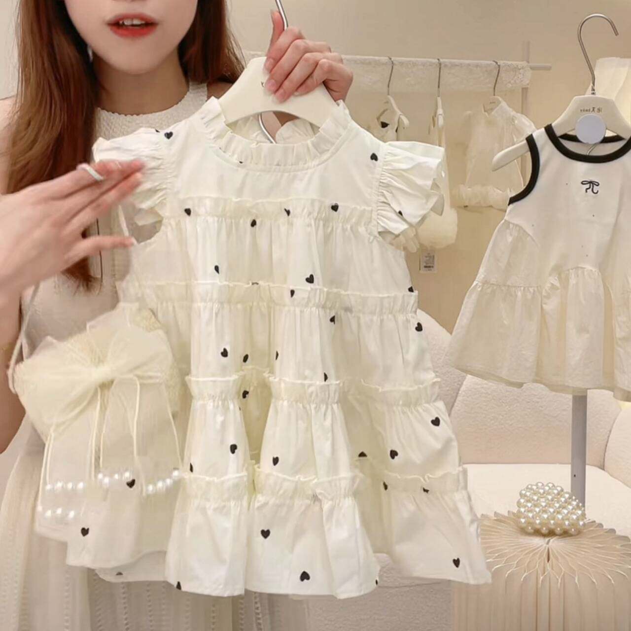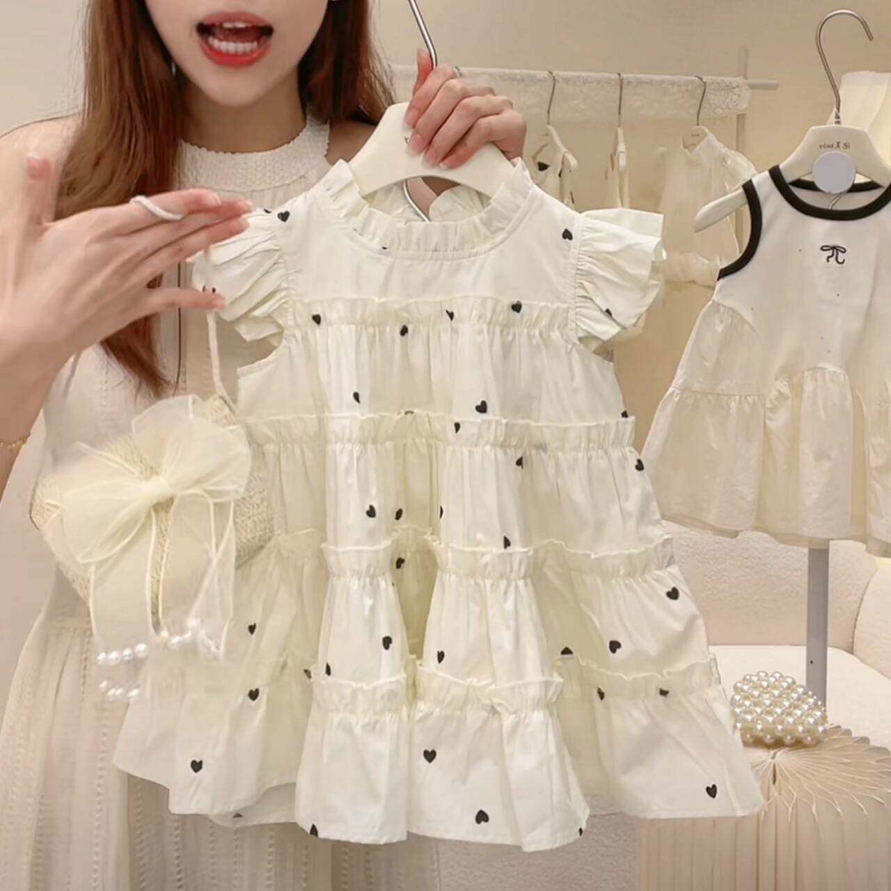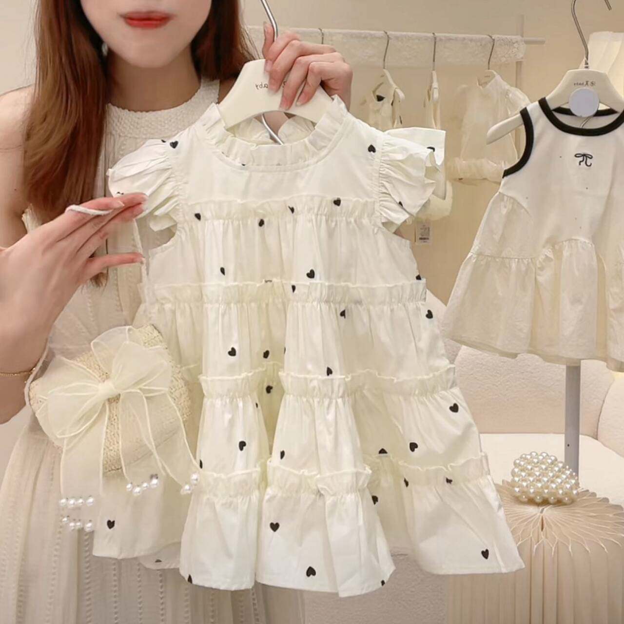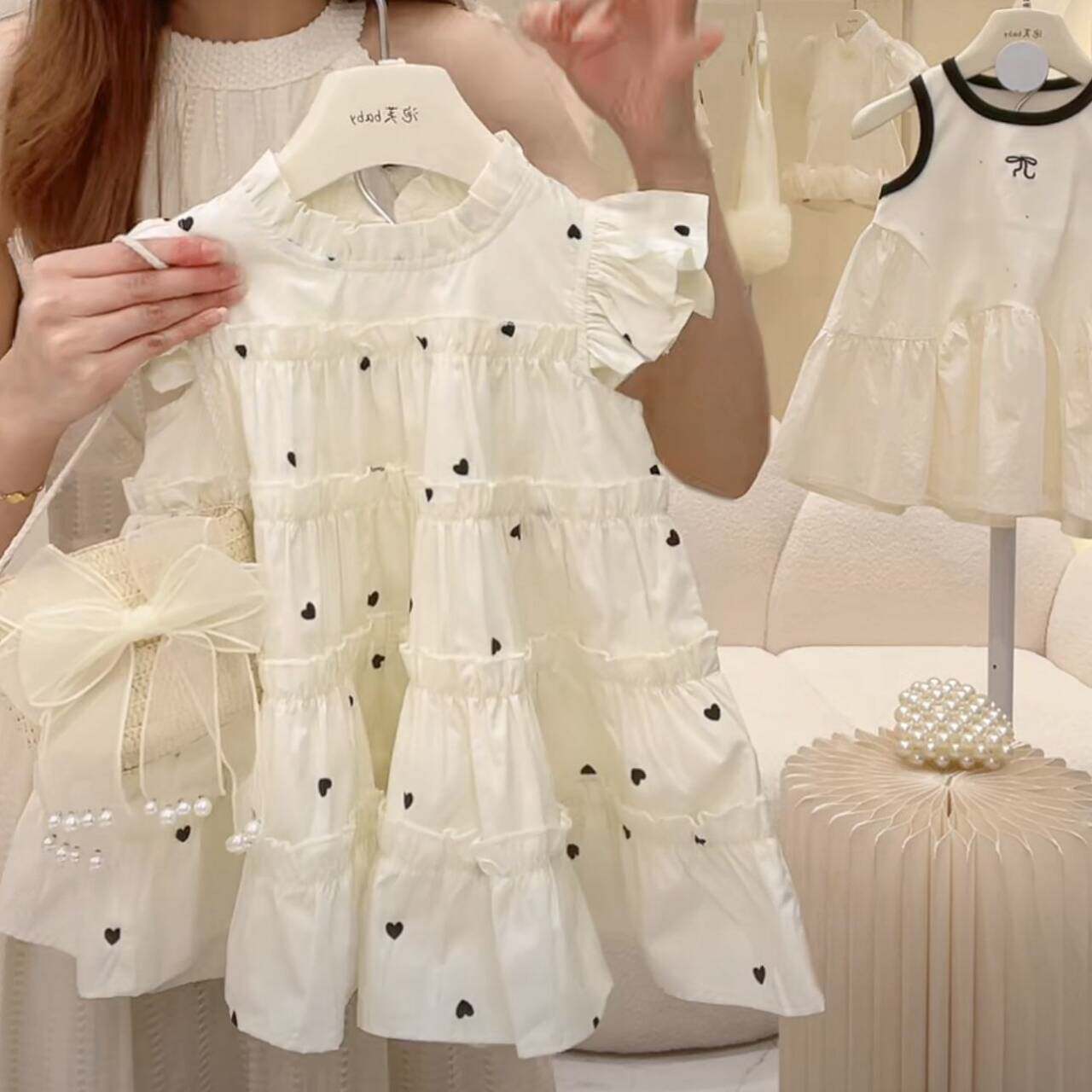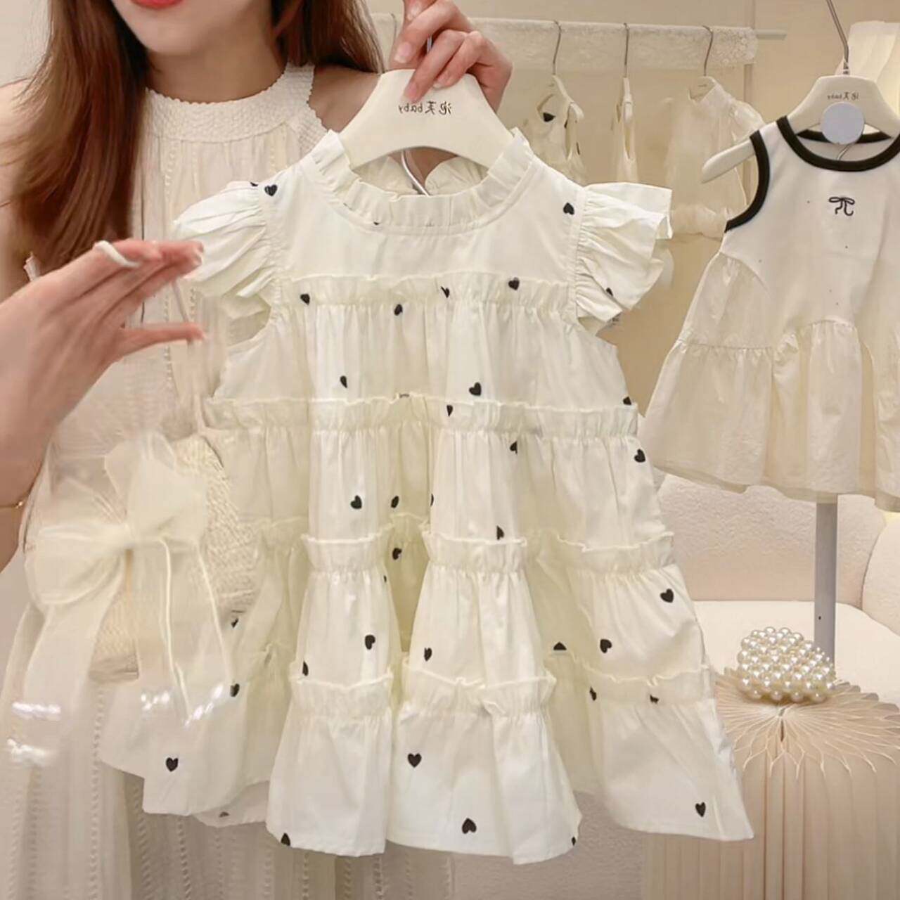 Детский наряд маленькой принцессы, юбка, платье с коротким рукавом, пляжное платье, летняя одежда, в корейском стиле