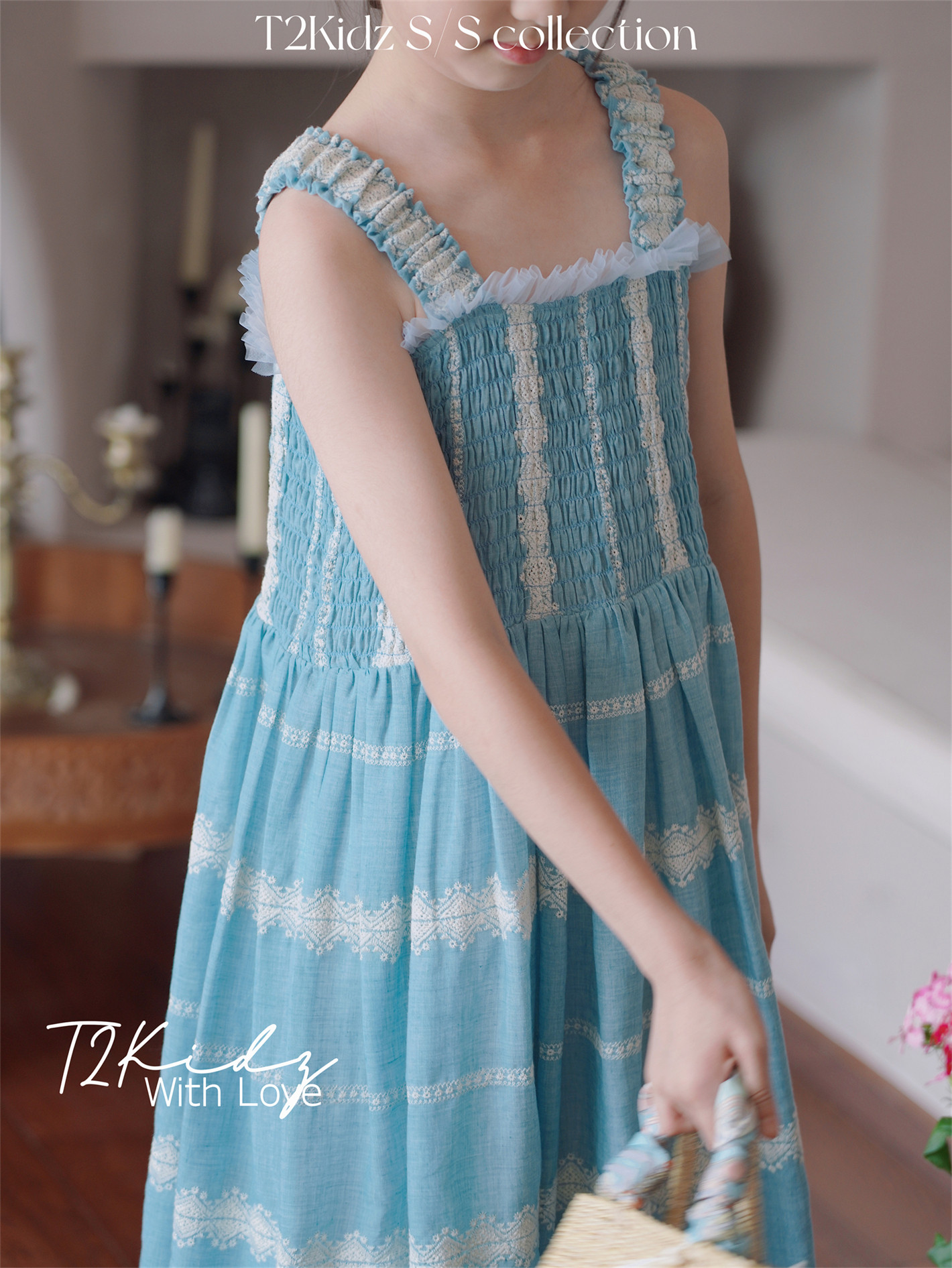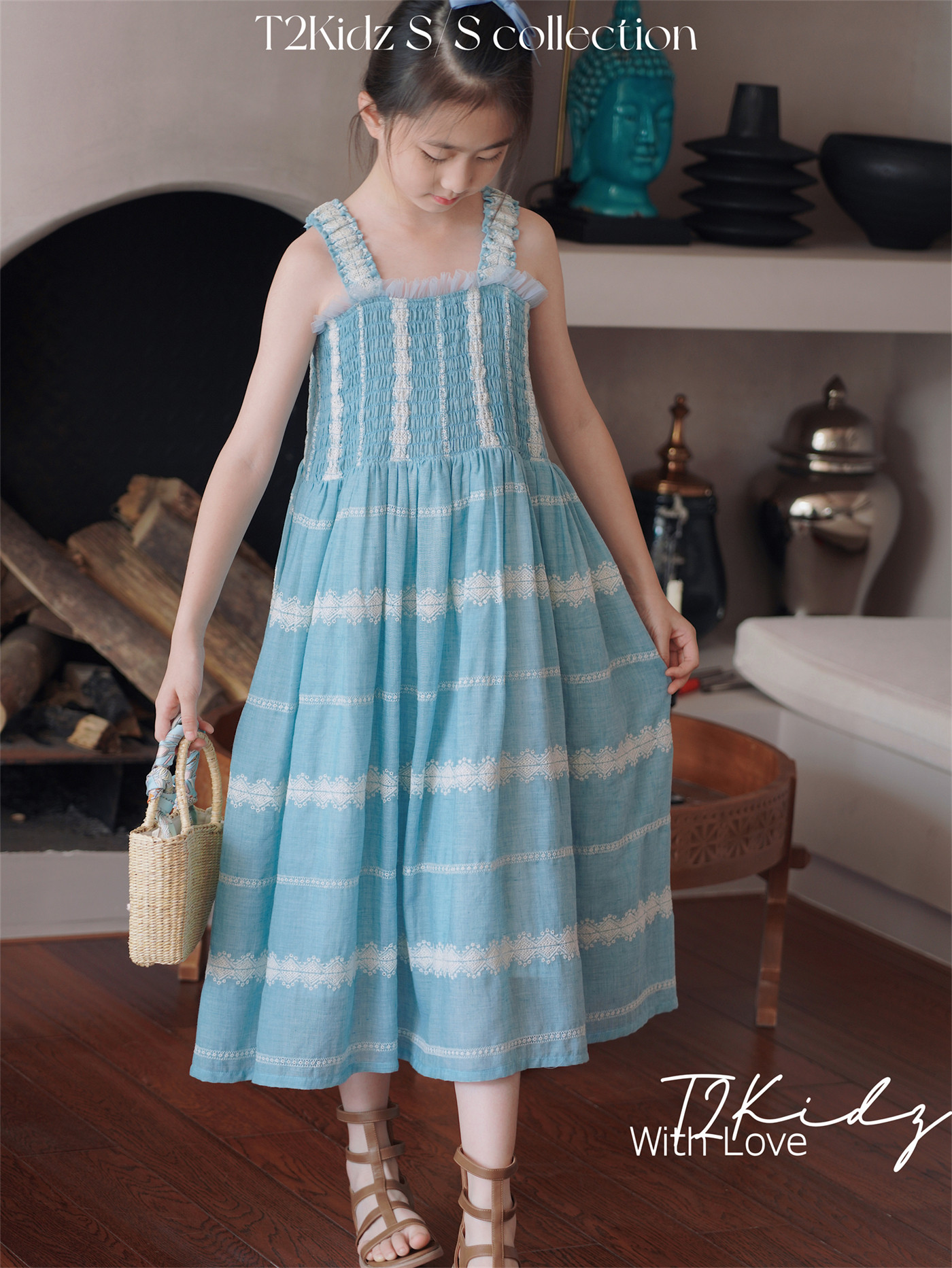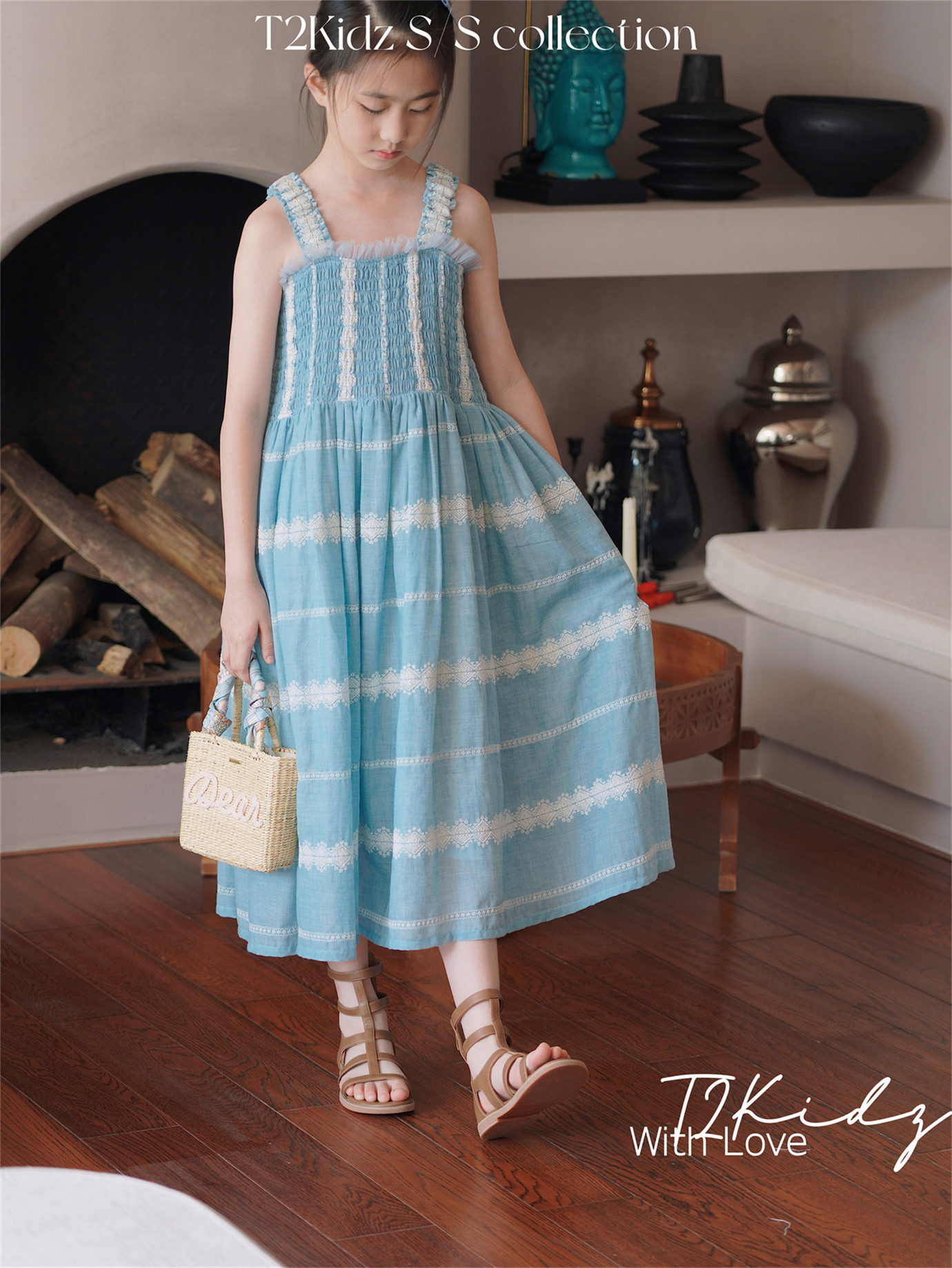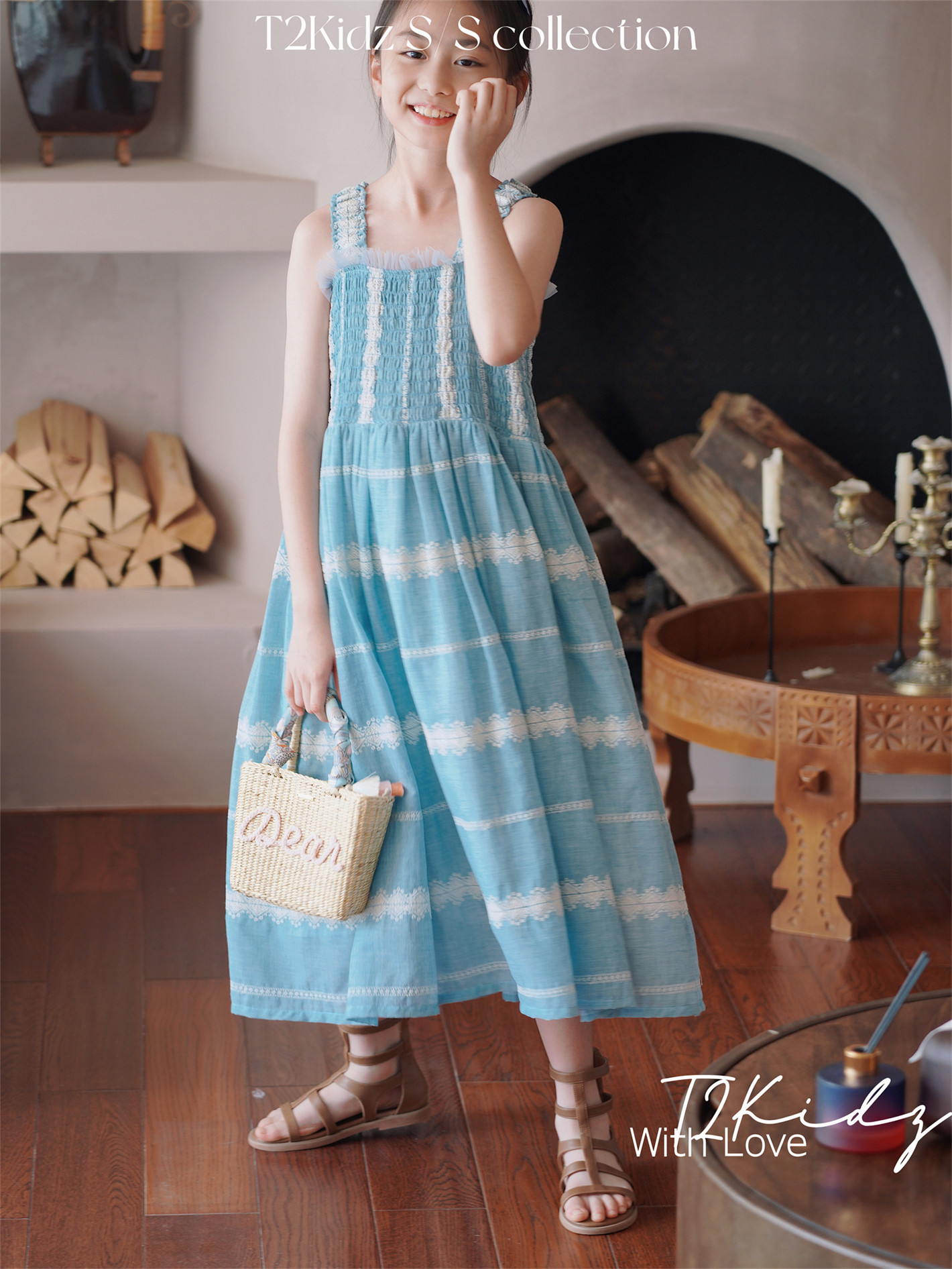 Тяжелый работник вышитый белье Тяньши, кабельная большая юбка, пляжное платье T2Kidz Jinbao Family Girl Summer