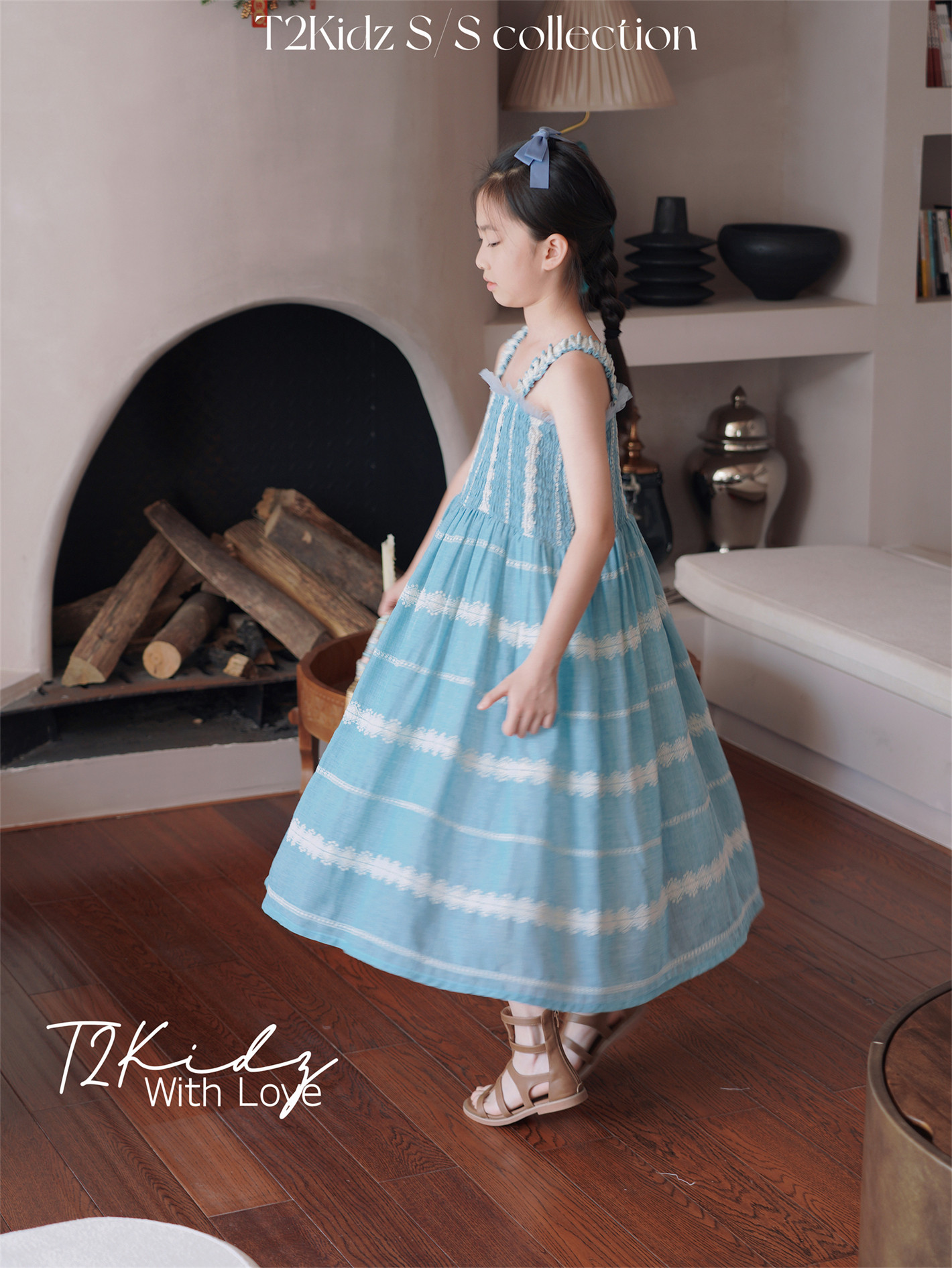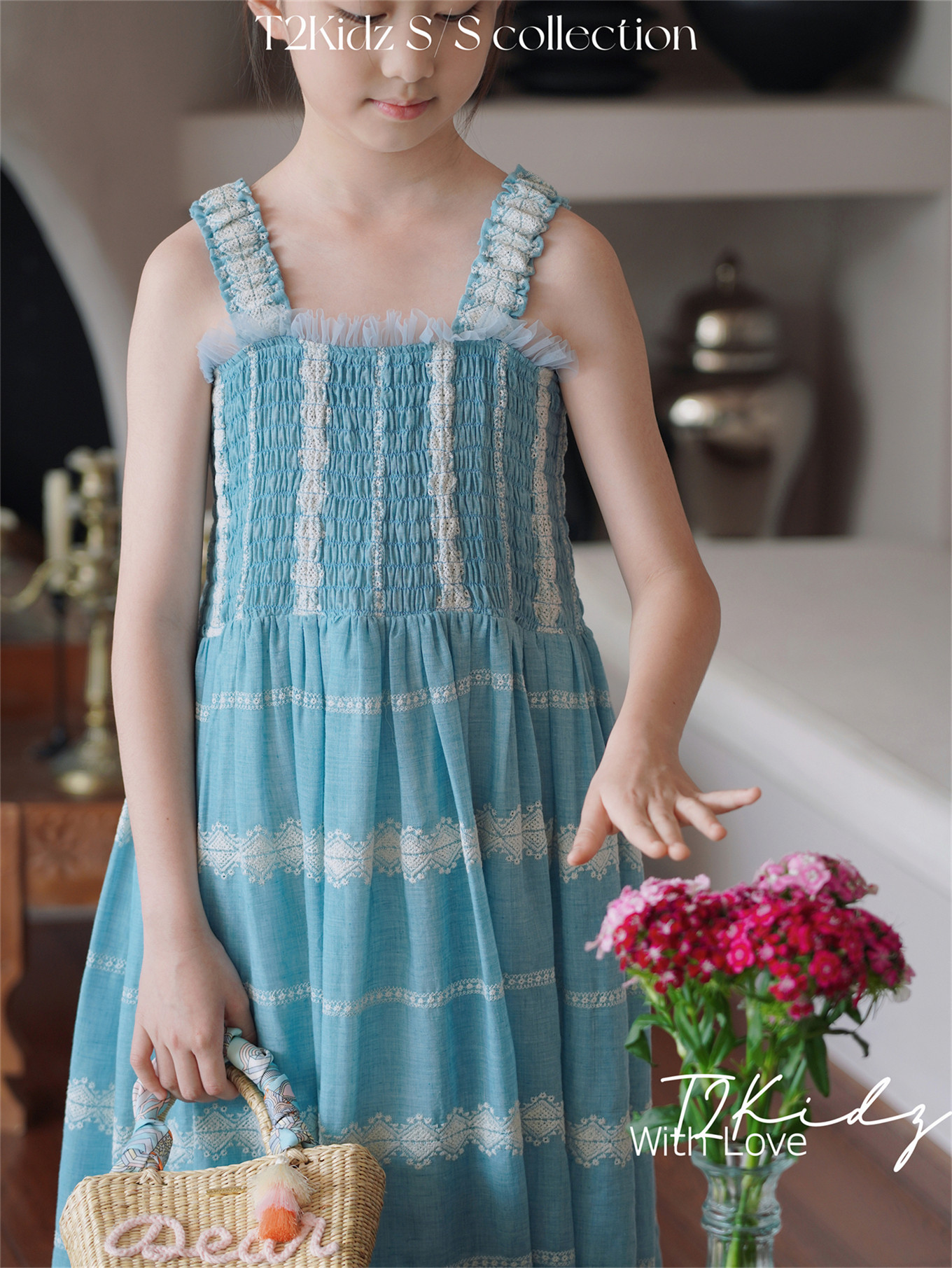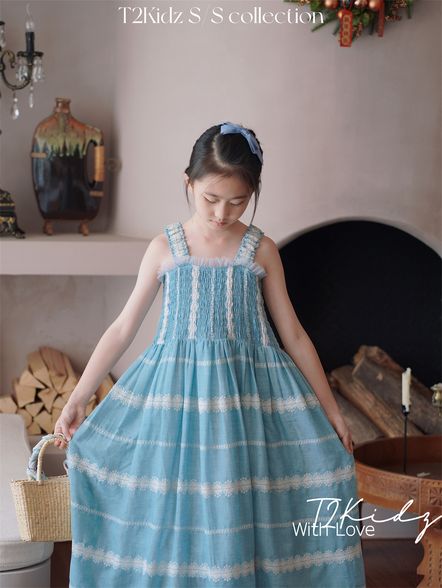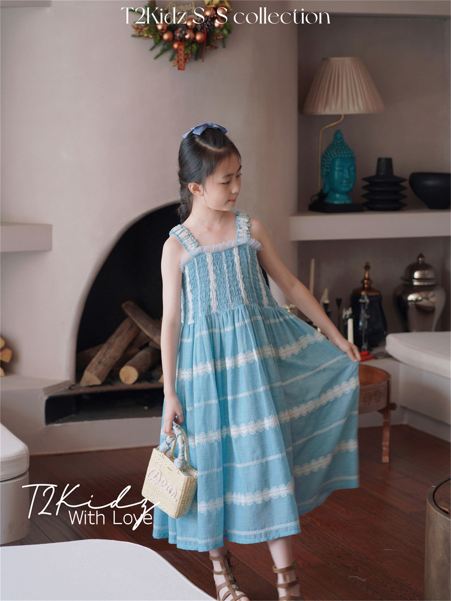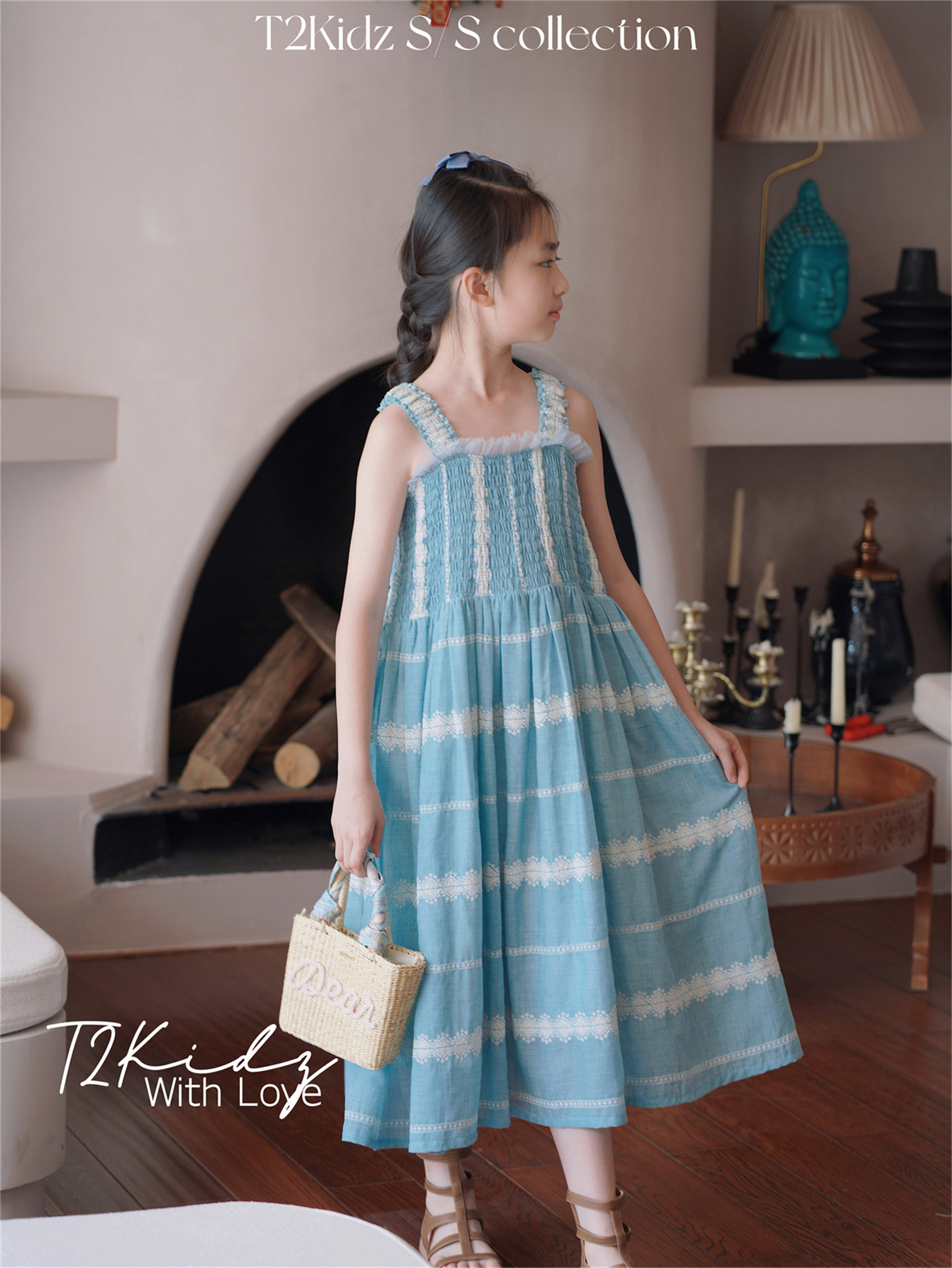 Тяжелый работник вышитый белье Тяньши, кабельная большая юбка, пляжное платье T2Kidz Jinbao Family Girl Summer