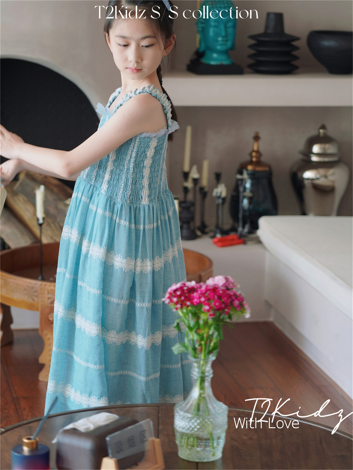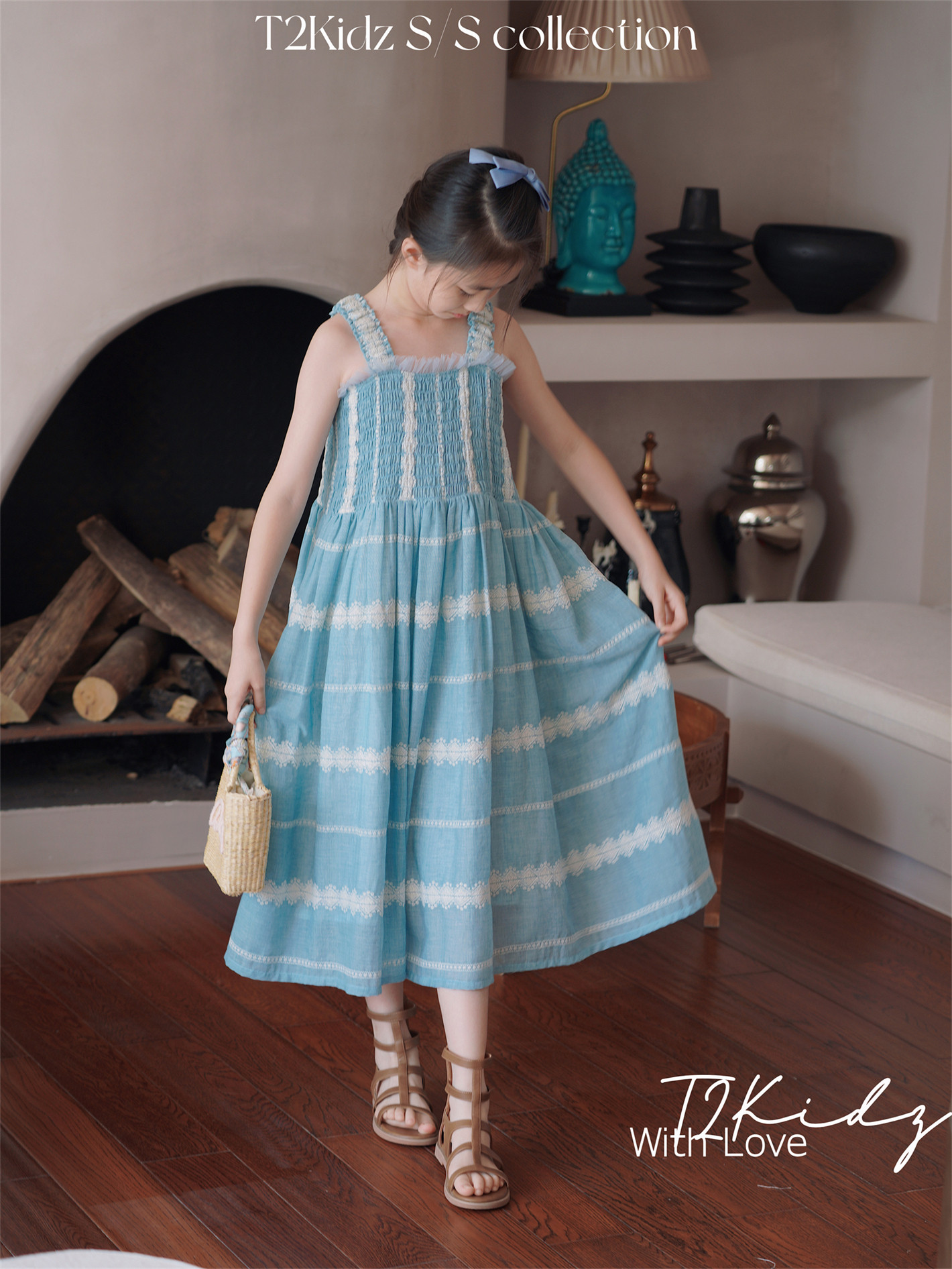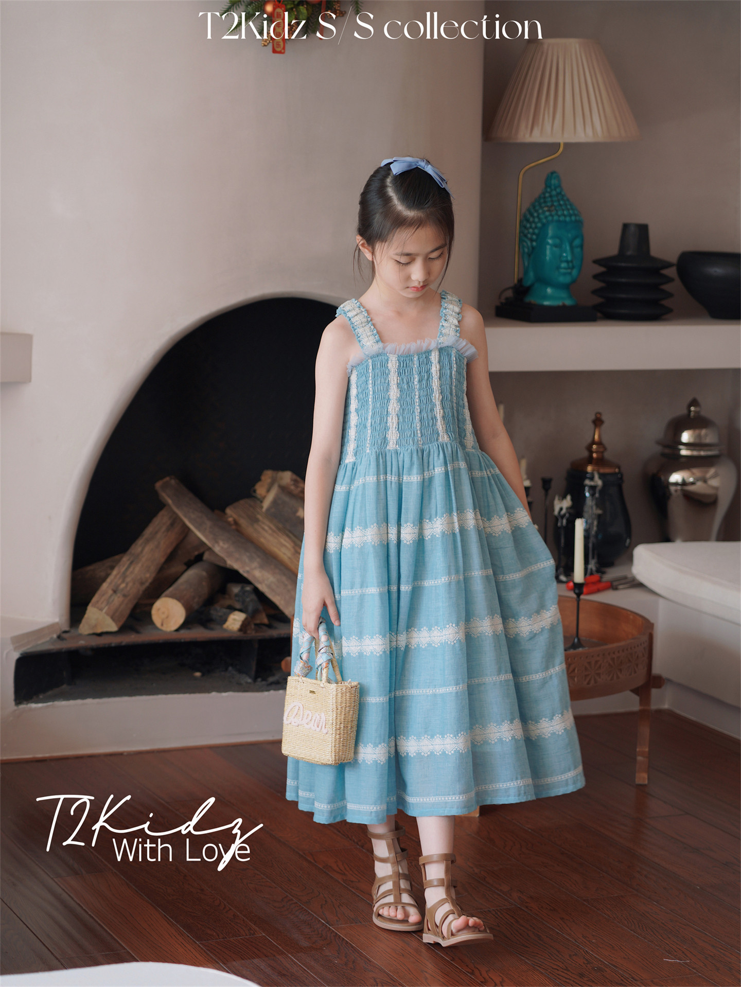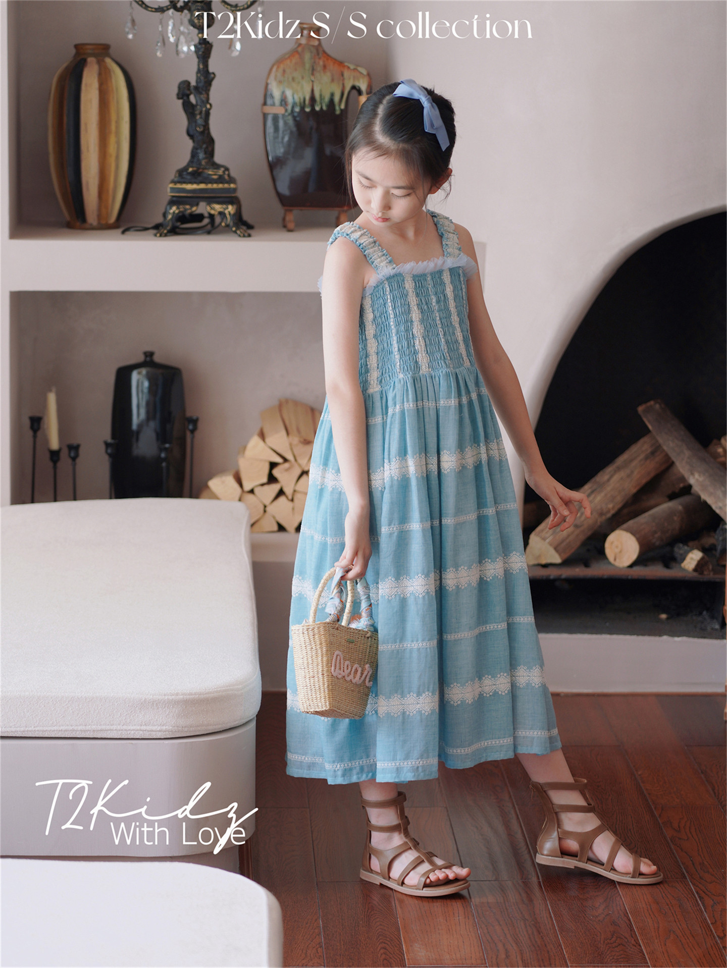 Тяжелый работник вышитый белье Тяньши, кабельная большая юбка, пляжное платье T2Kidz Jinbao Family Girl Summer
