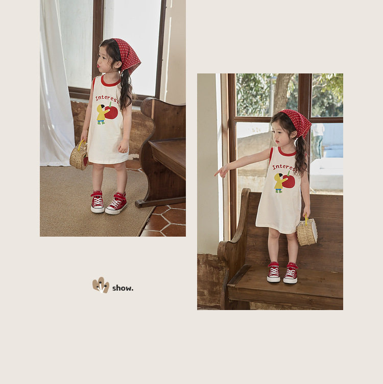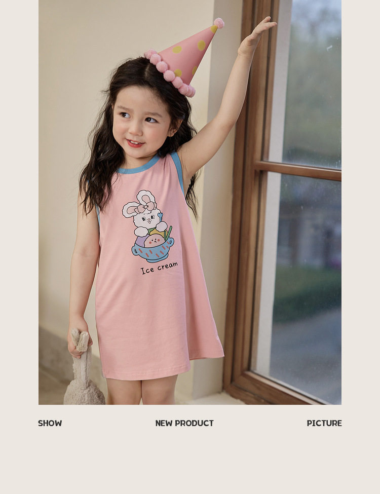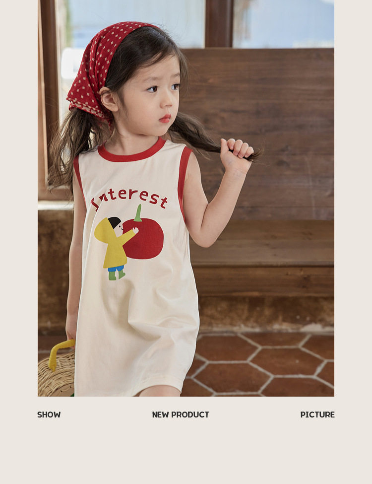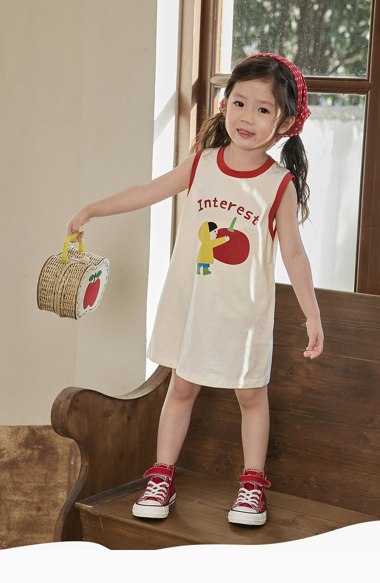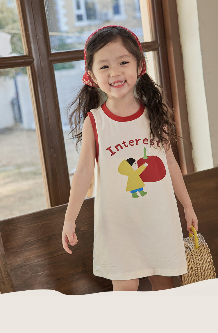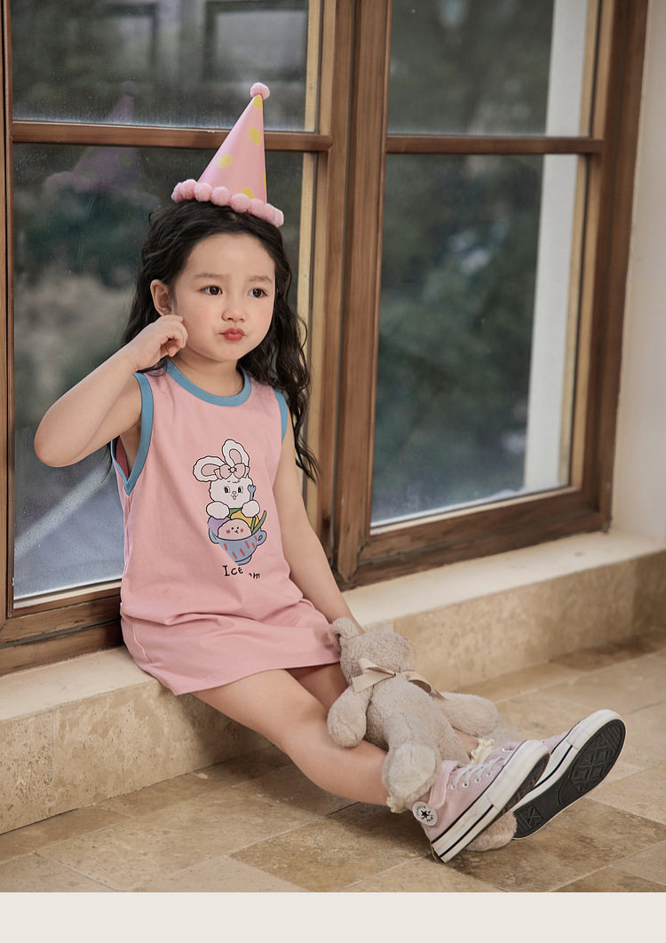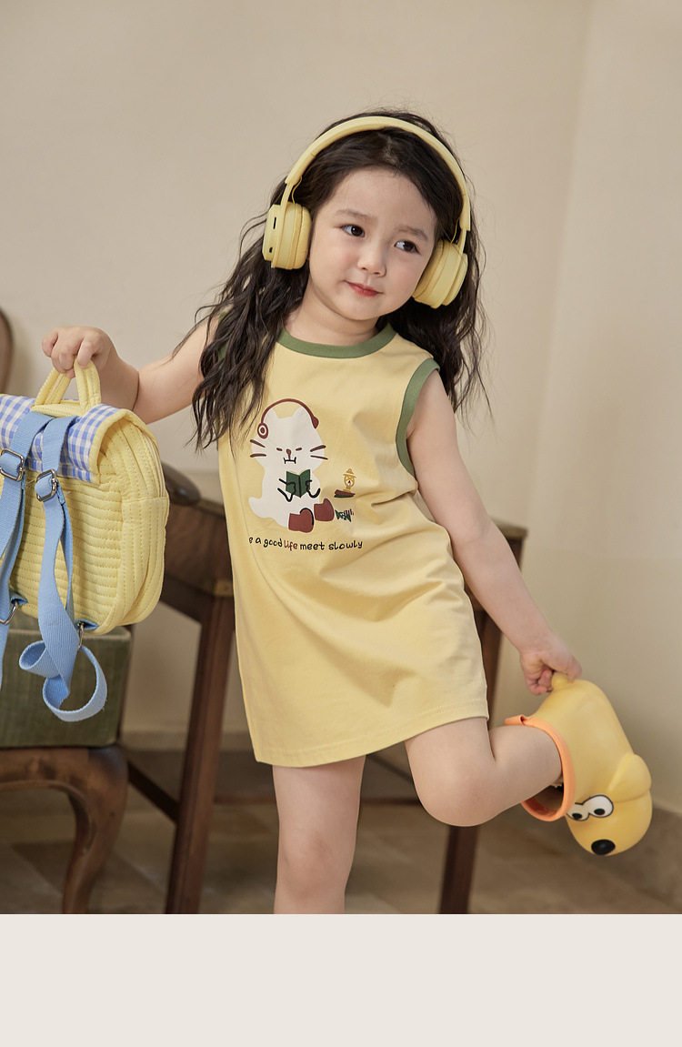 Летнее хлопковое мультяшное платье без рукавов для девочек без рукавов, платье-футболка, длина миди, подходит для подростков