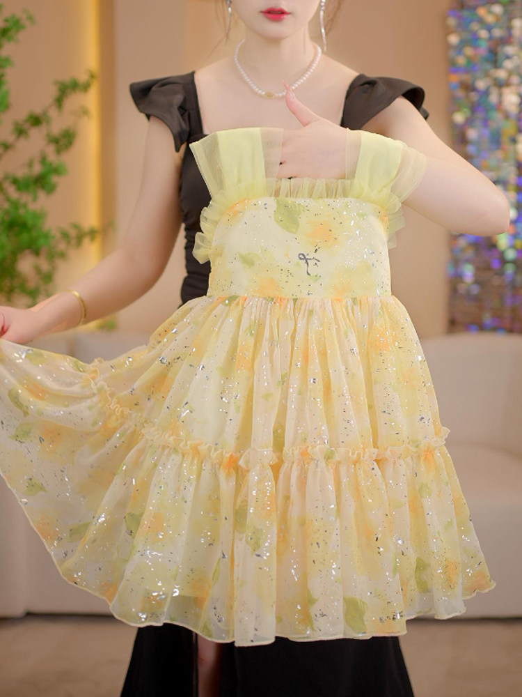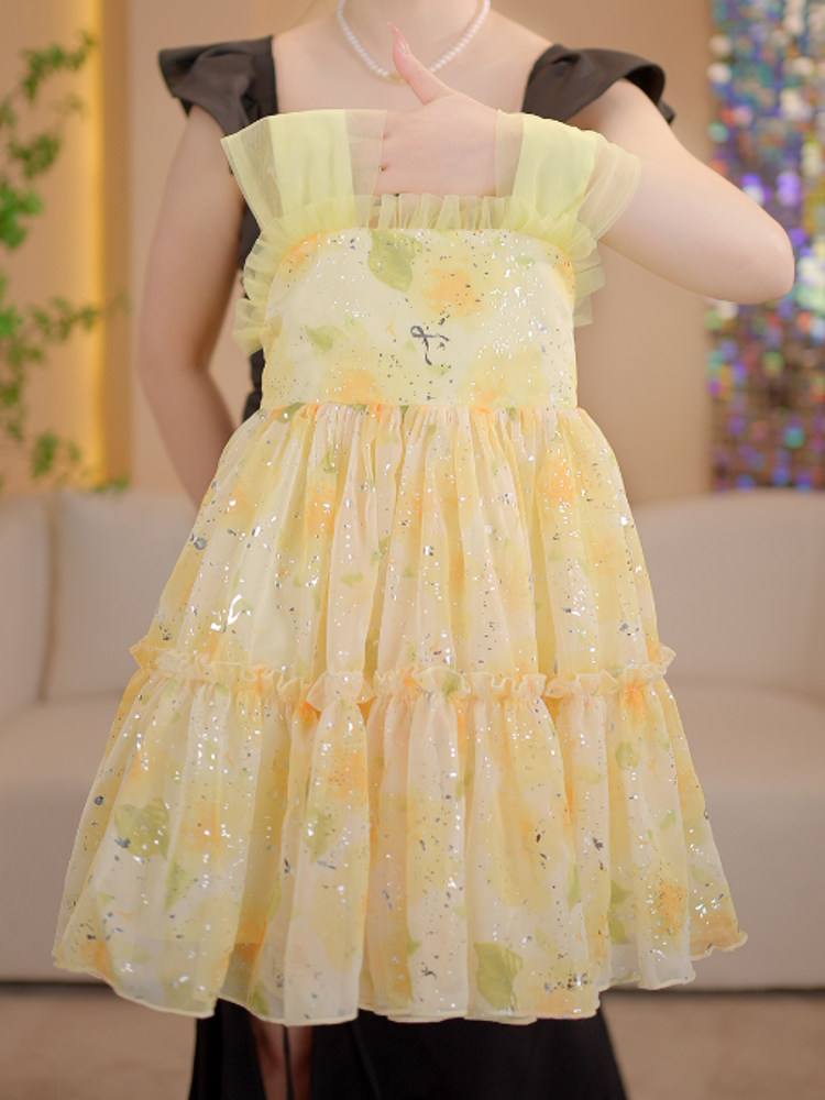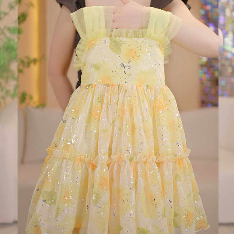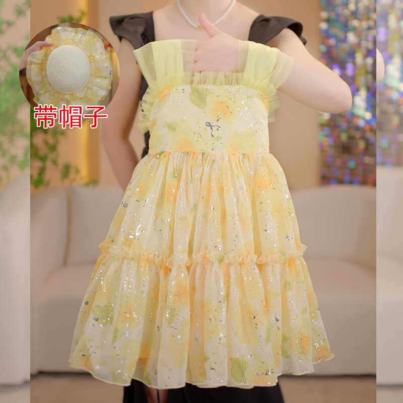 Летняя одежда без рукавов, платье, платье-комбинация, юбка на девочку, наряд маленькой принцессы, в цветочек