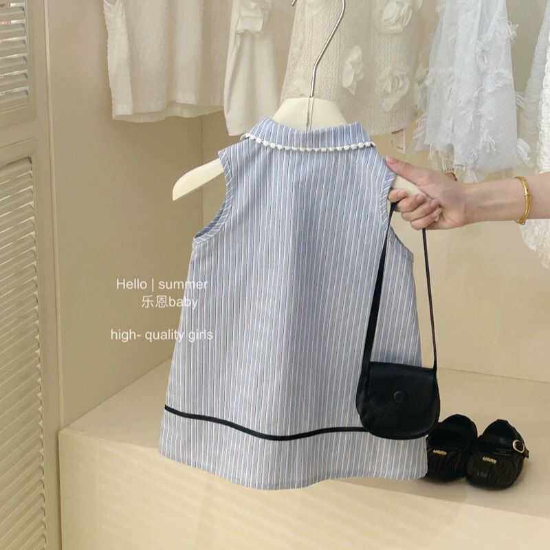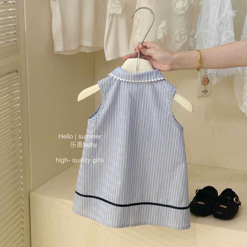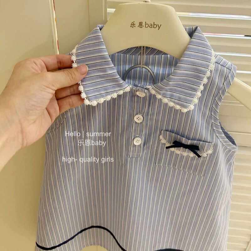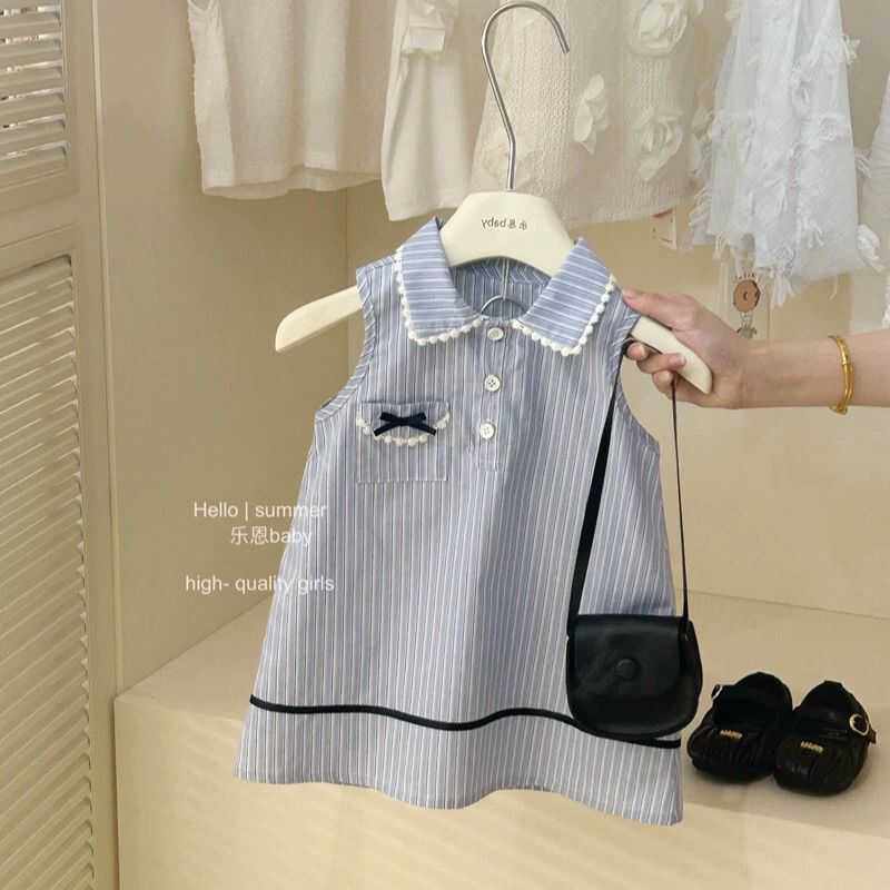Синее платье без рукавов, юбка на девочку, летний наряд маленькой принцессы, в западном стиле