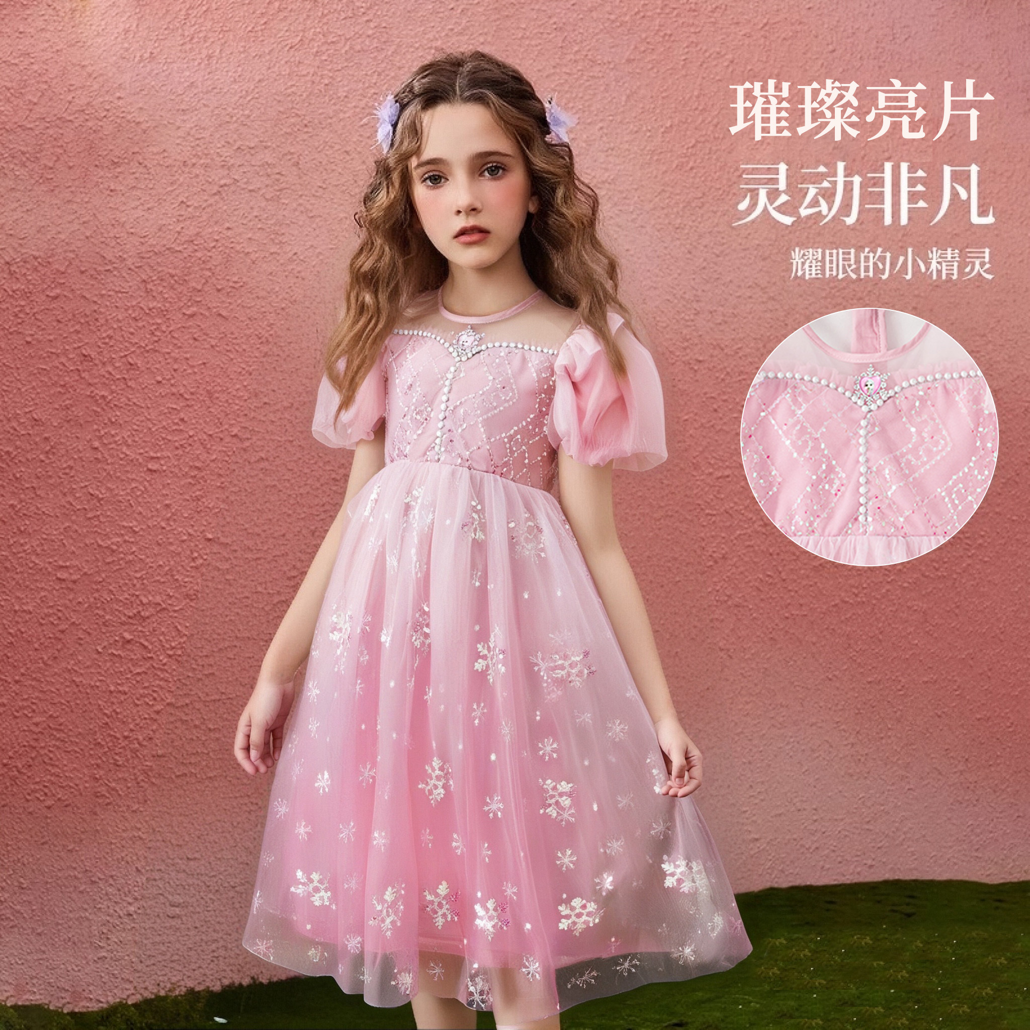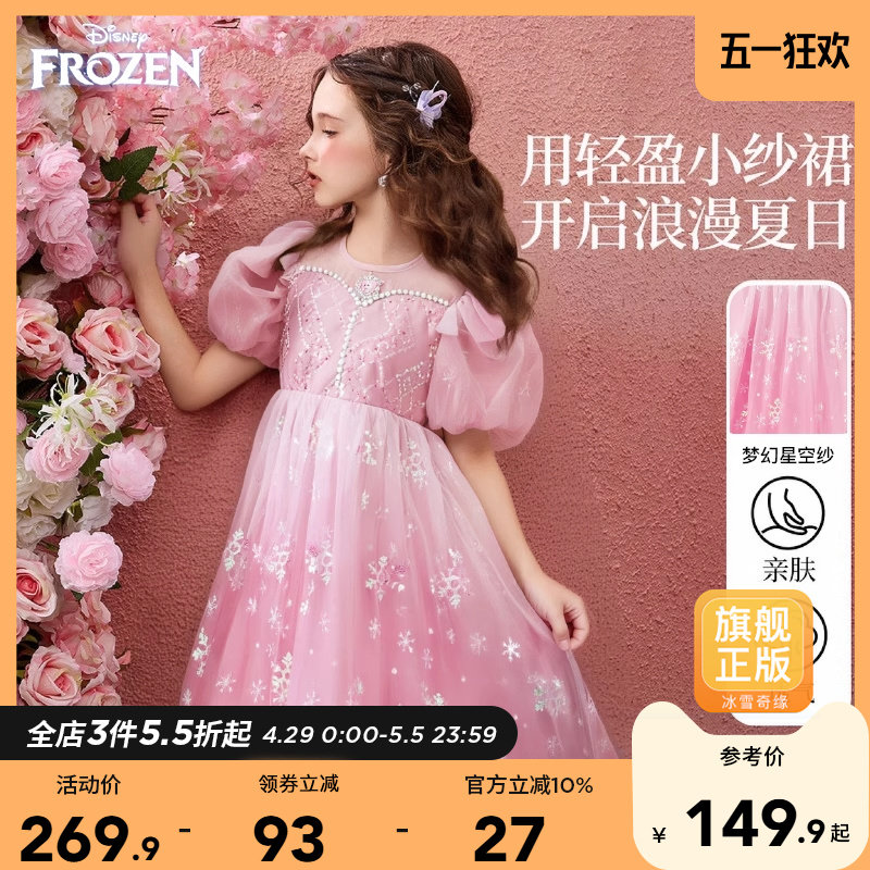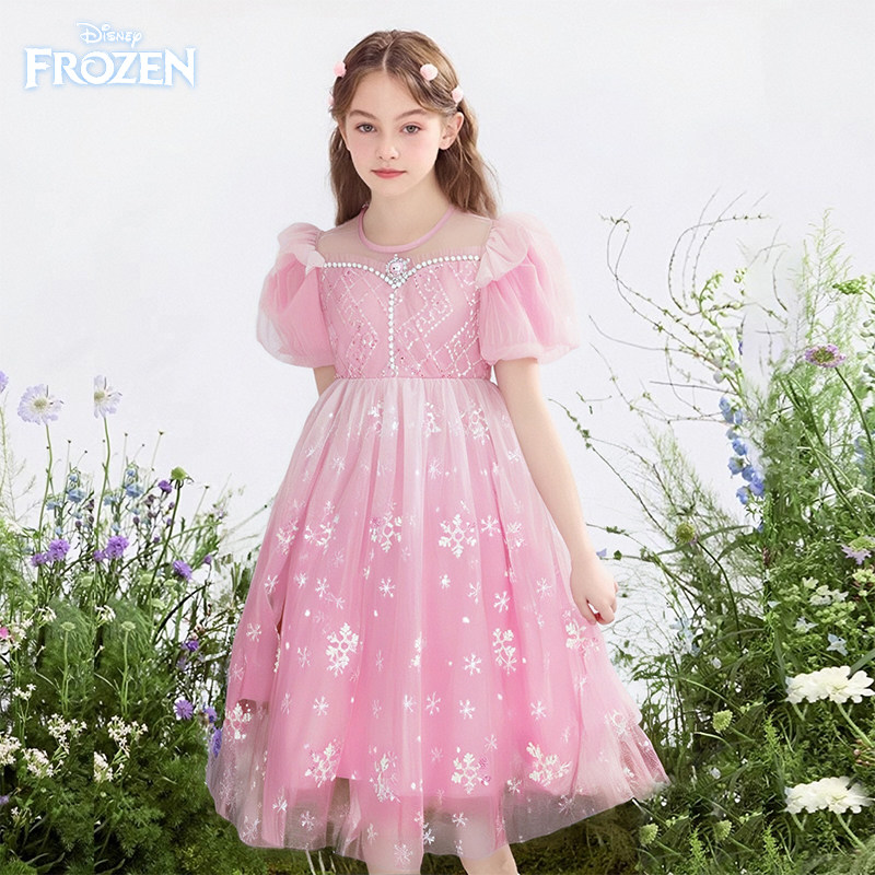 Дисней, летний наряд маленькой принцессы, платье с коротким рукавом, детская одежда, в западном стиле