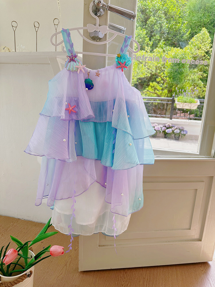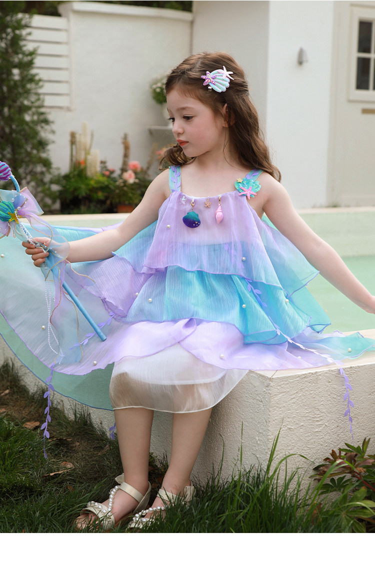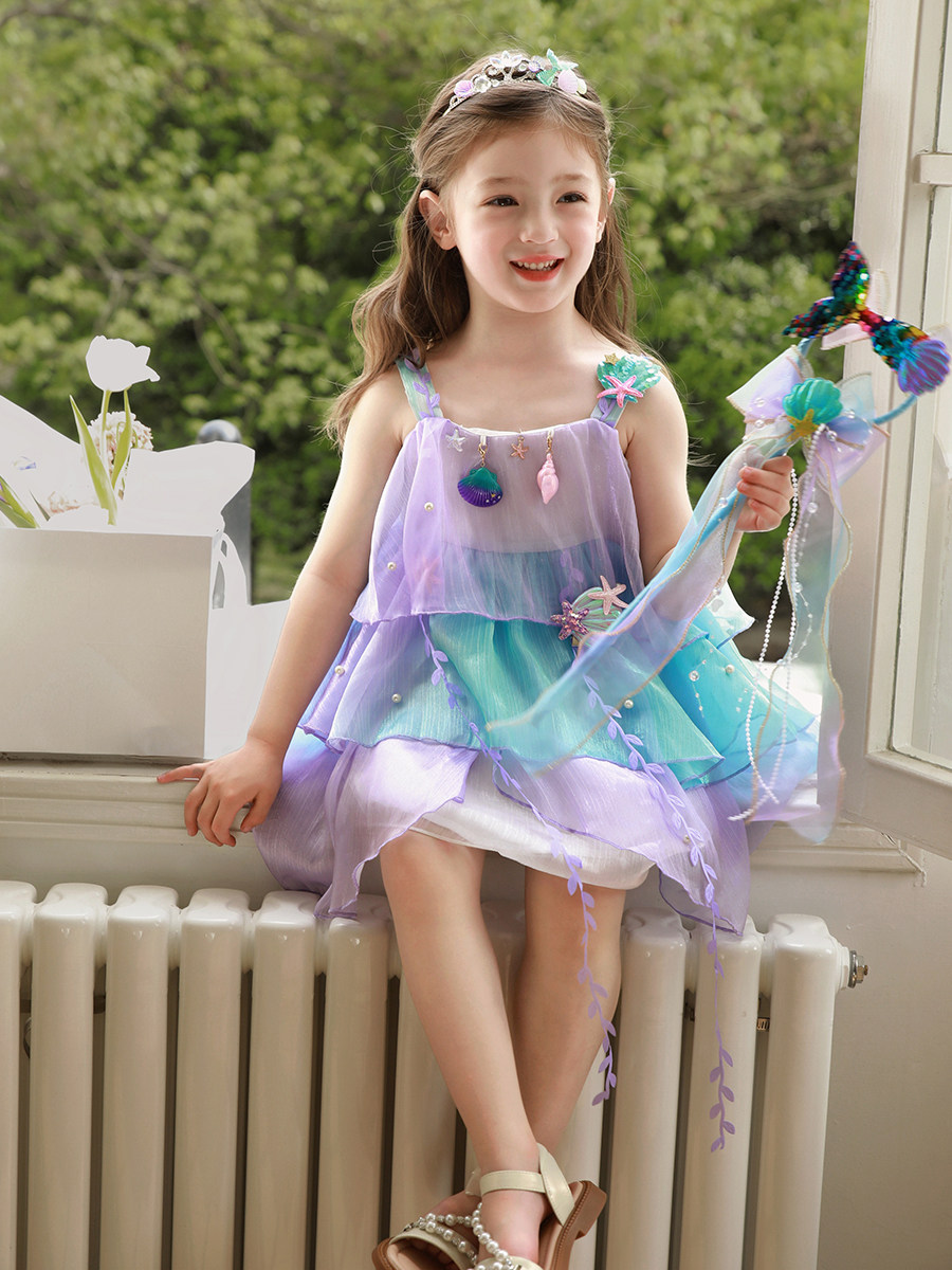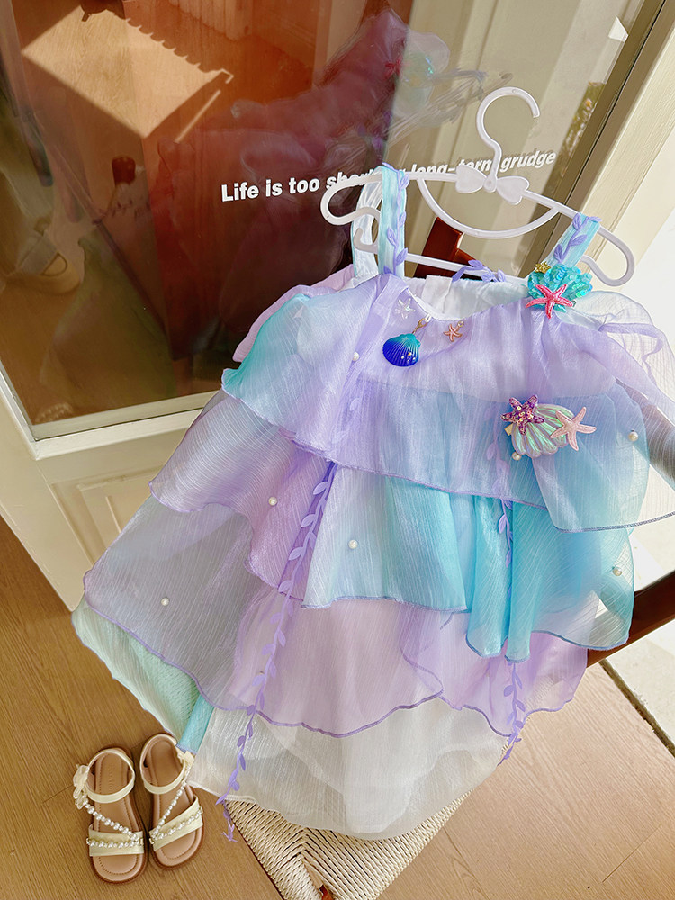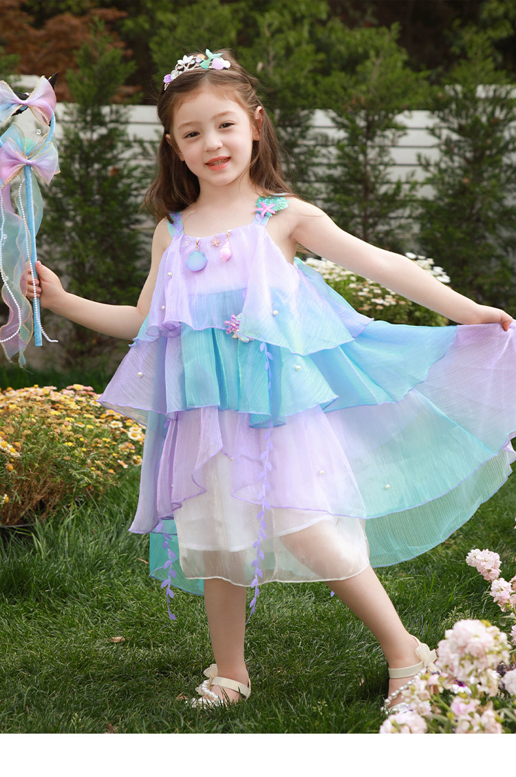 Влюбитесь в красивое платье принцессы-русалки для девочек, летнее платье, новинка 2025 года, детская градиентная праздничная газовая юбка на подтяжках