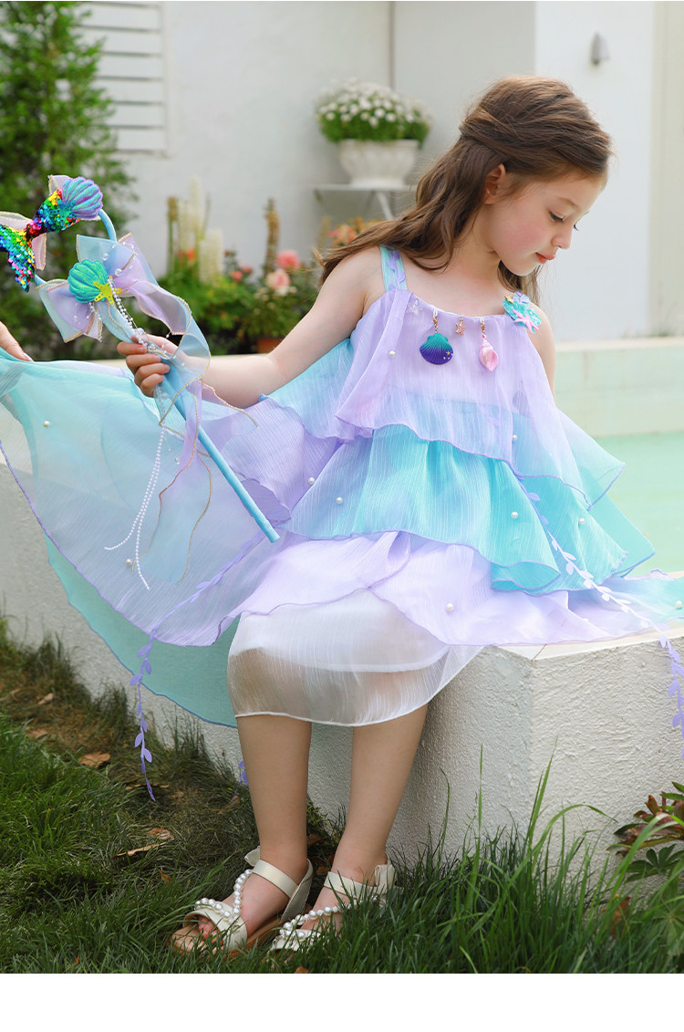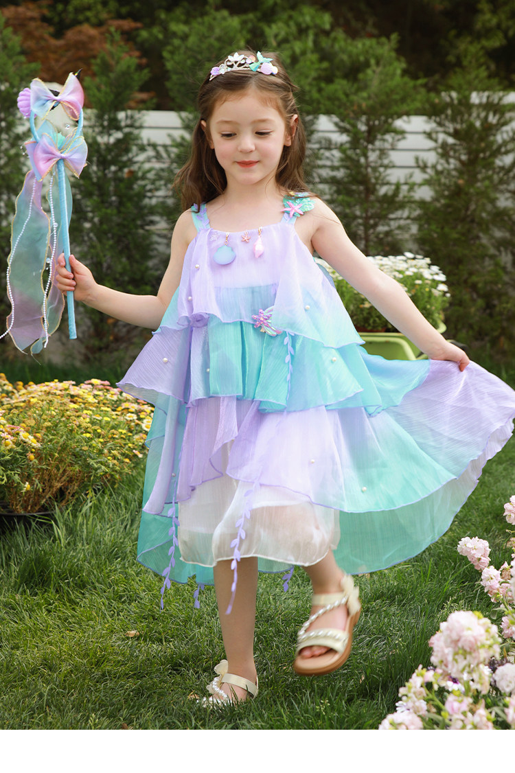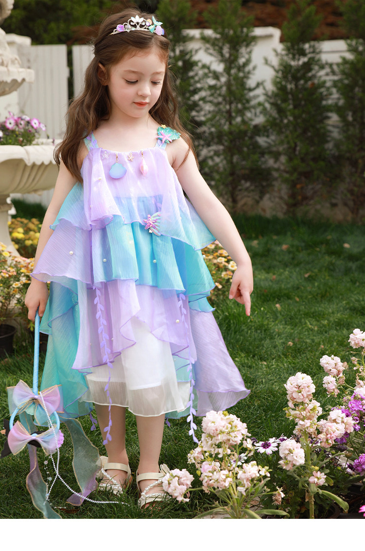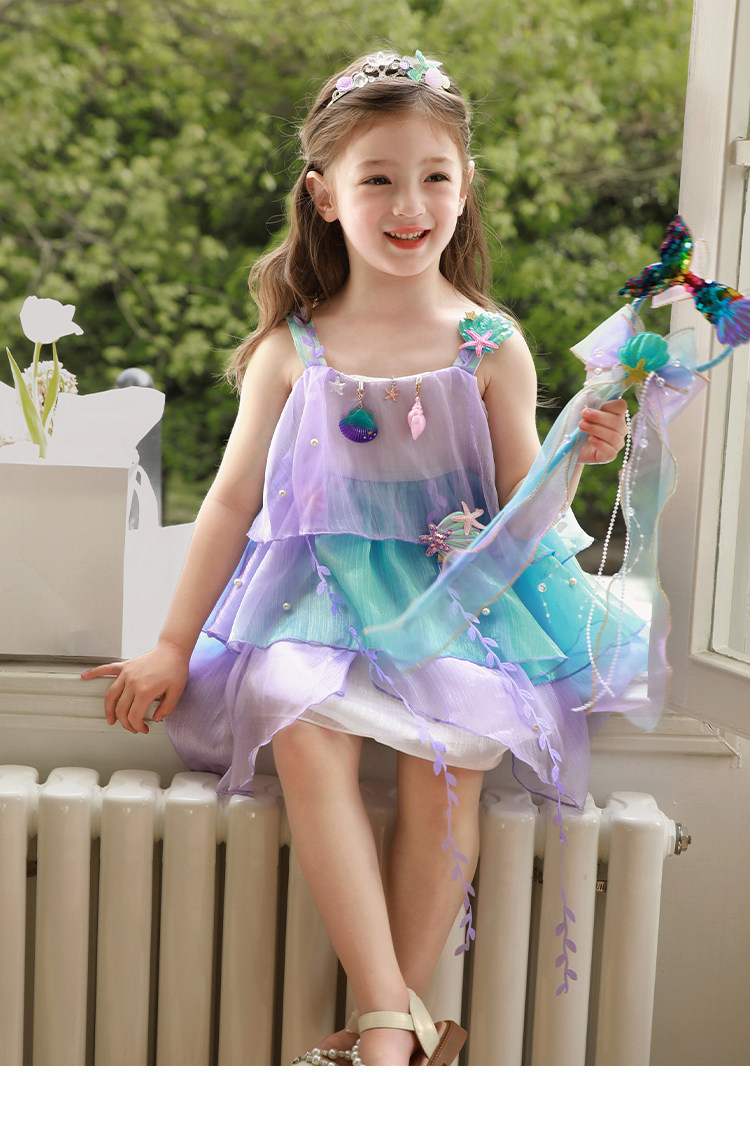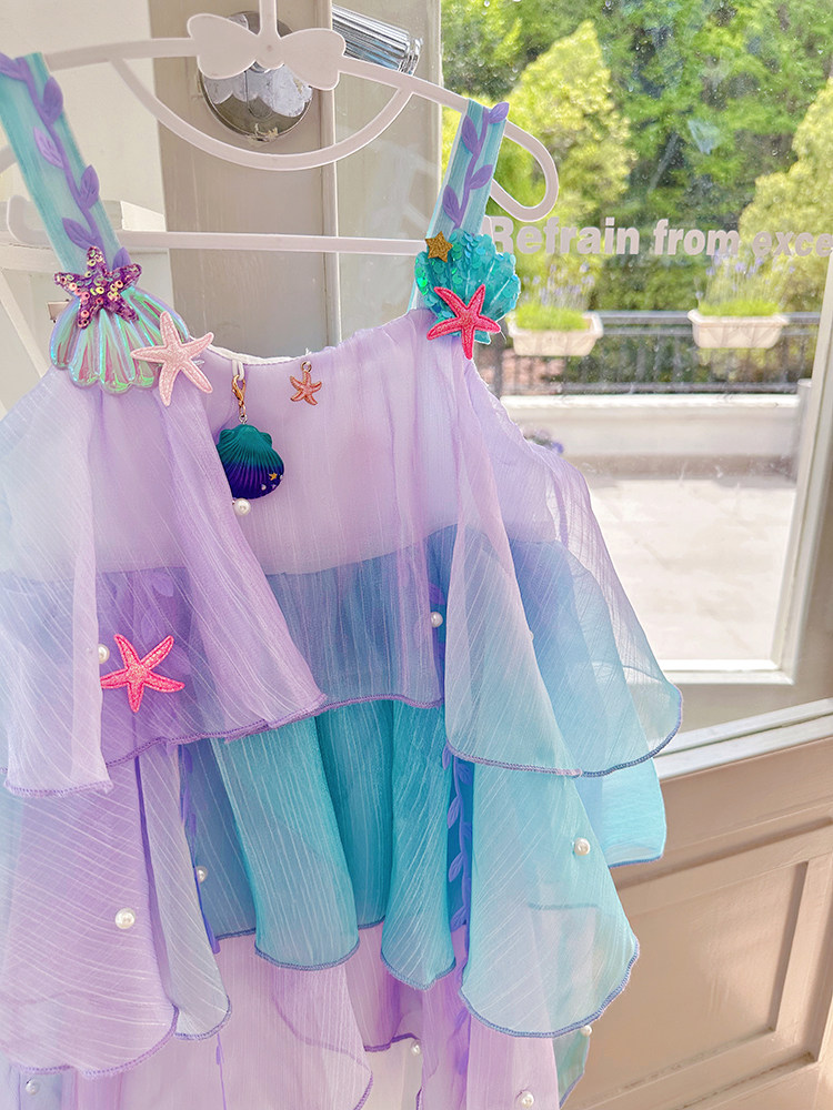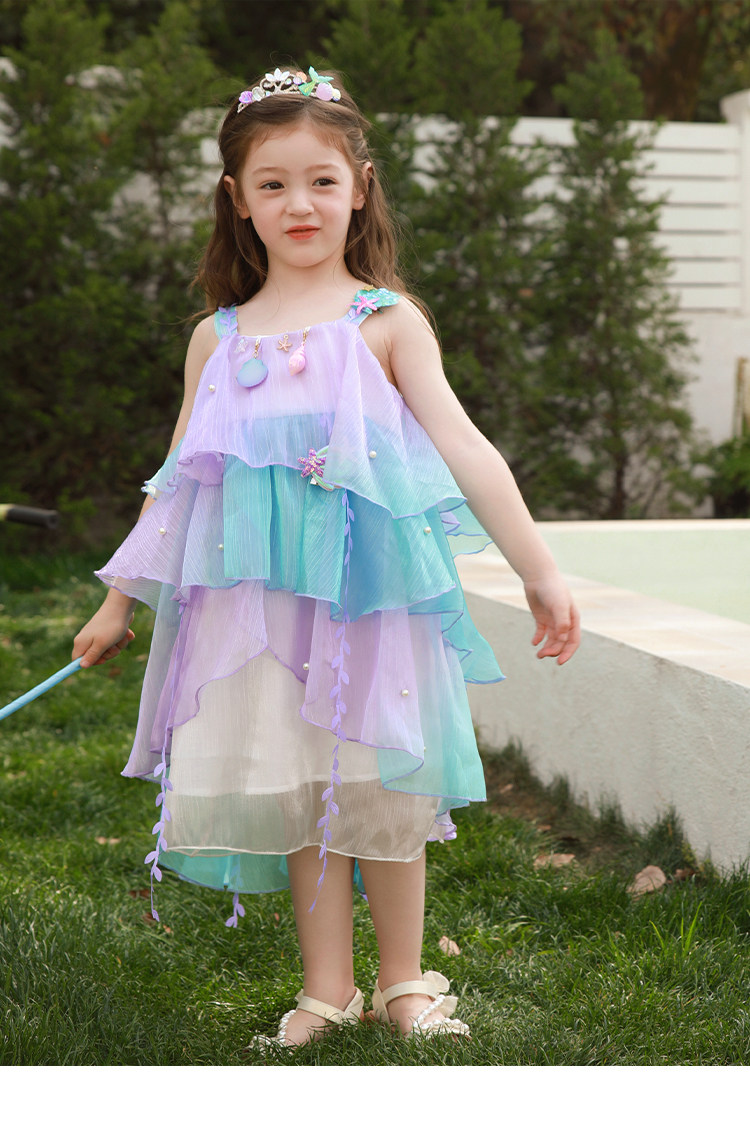 Влюбитесь в красивое платье принцессы-русалки для девочек, летнее платье, новинка 2025 года, детская градиентная праздничная газовая юбка на подтяжках