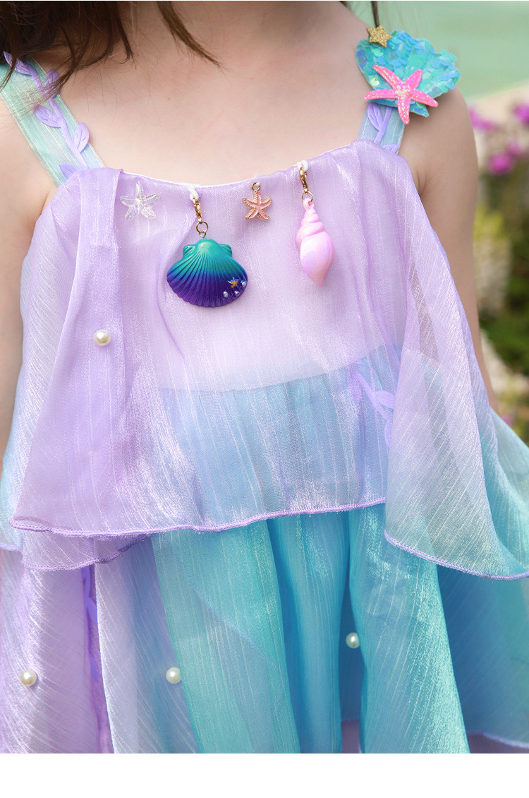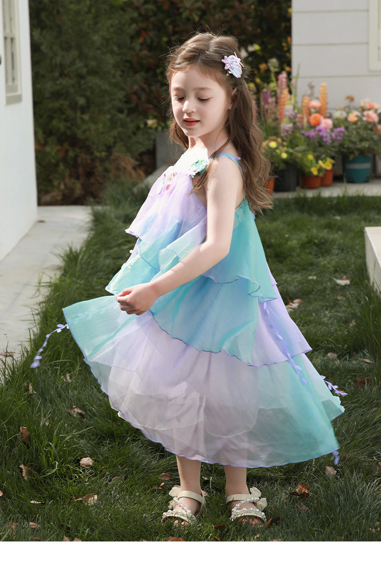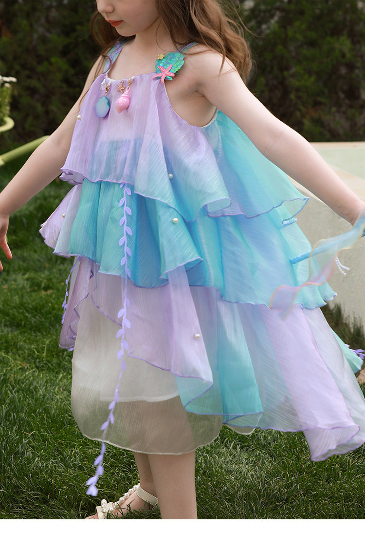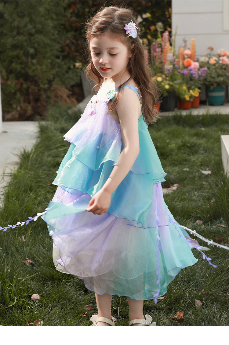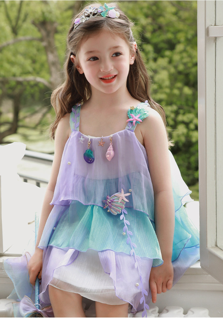 Влюбитесь в красивое платье принцессы-русалки для девочек, летнее платье, новинка 2025 года, детская градиентная праздничная газовая юбка на подтяжках