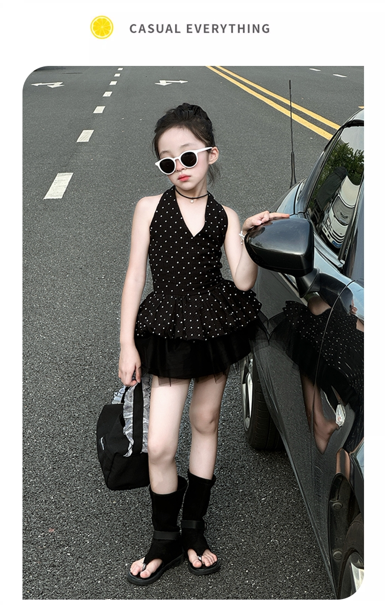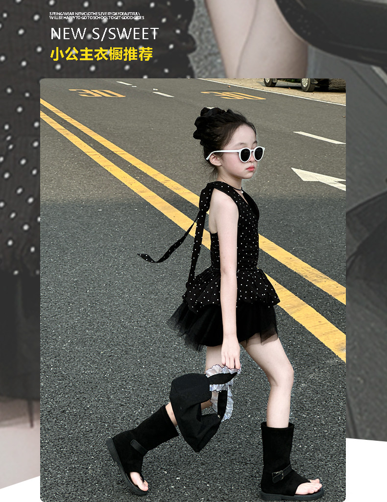 Великолепное платье для девочек, детский костюм с юбкой в гонконгском стиле, новинка 2025 года, лето высокого класса, уникальное и красивое