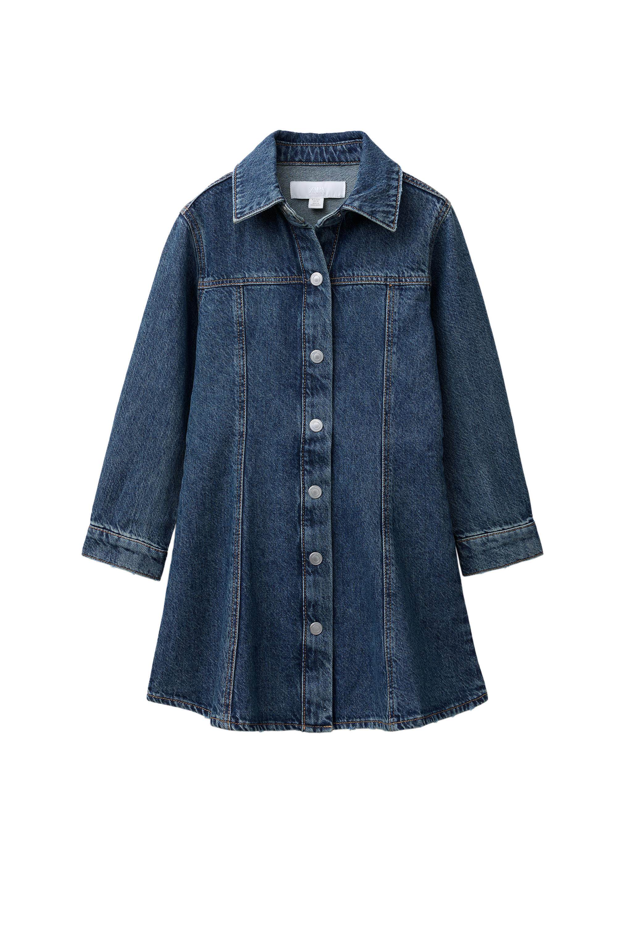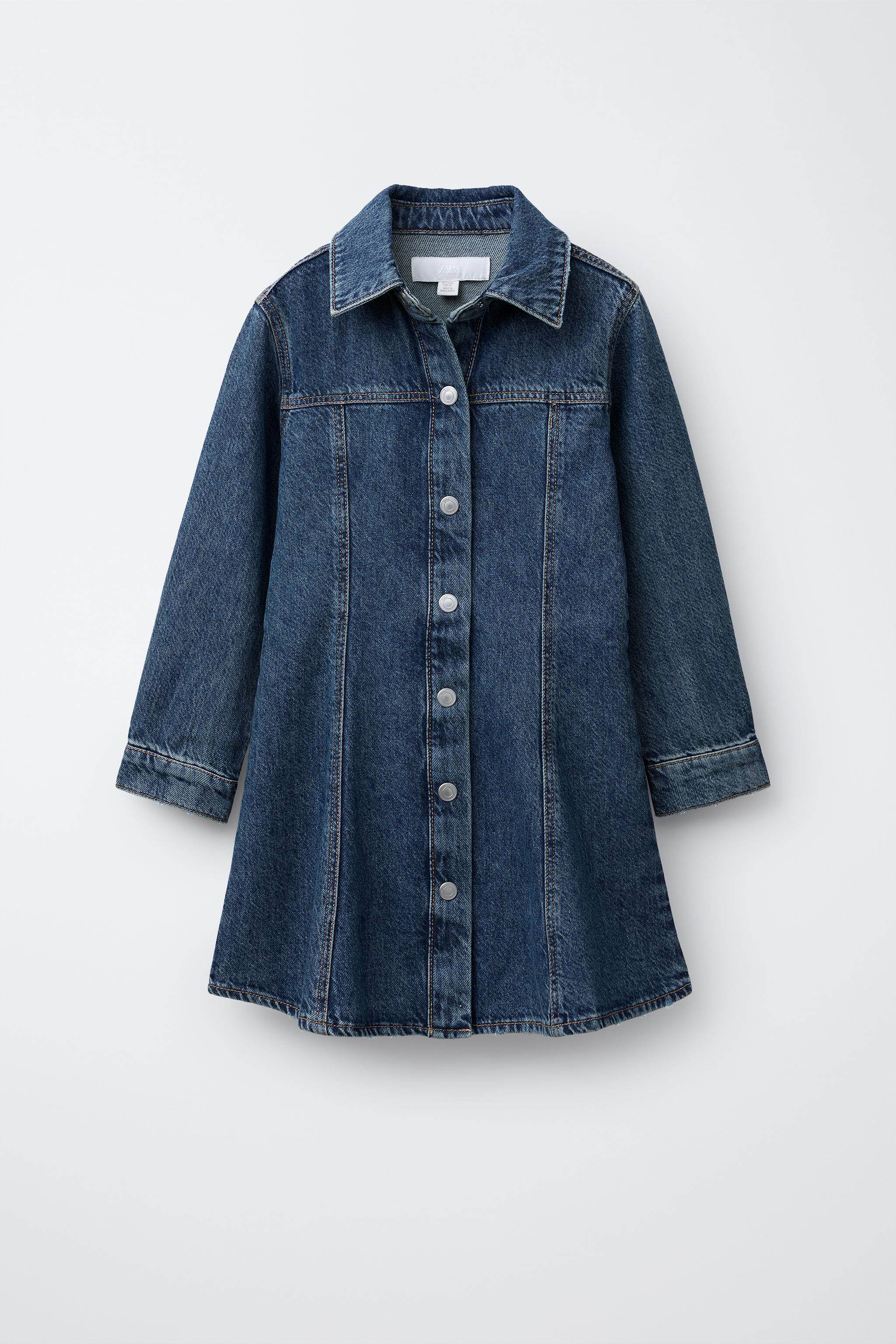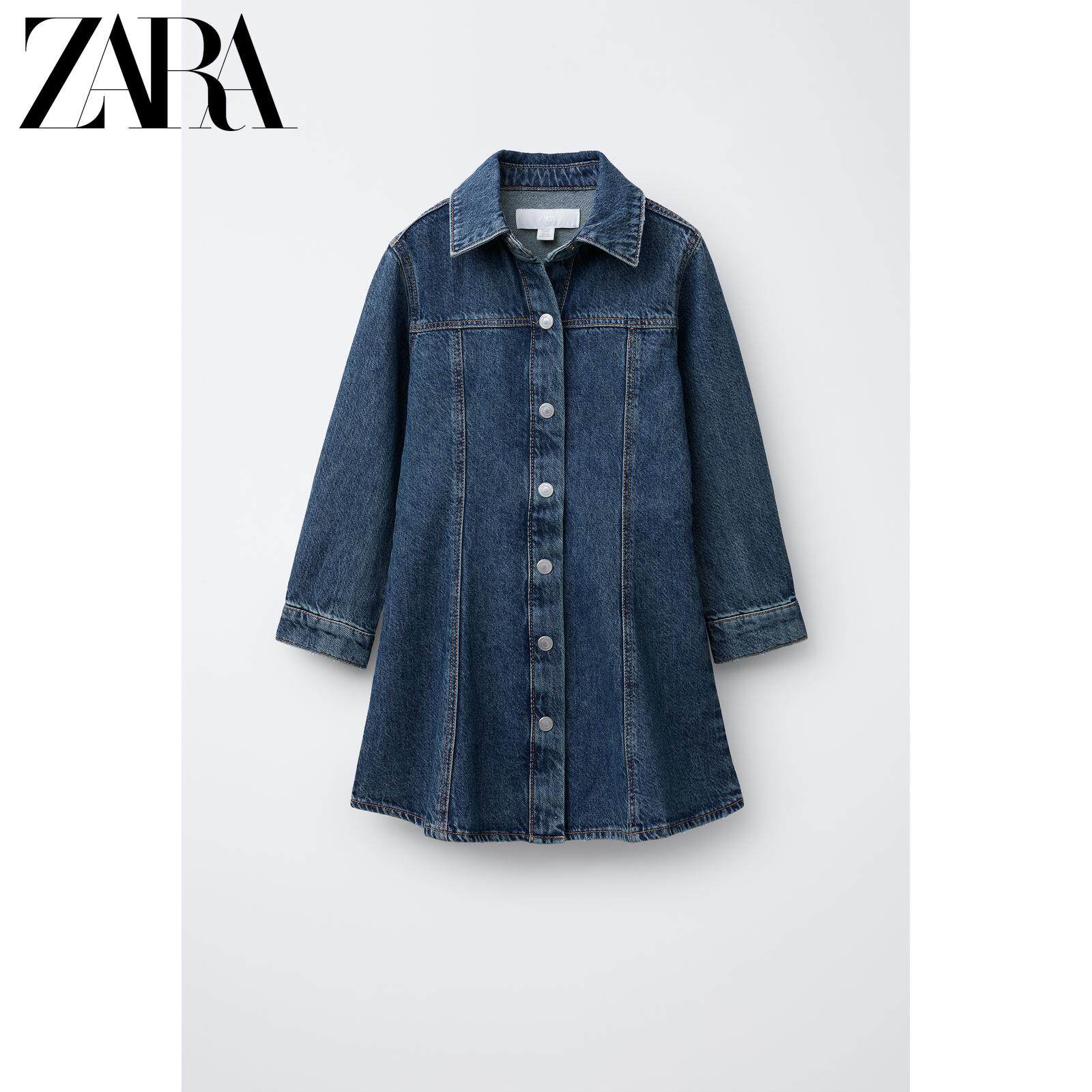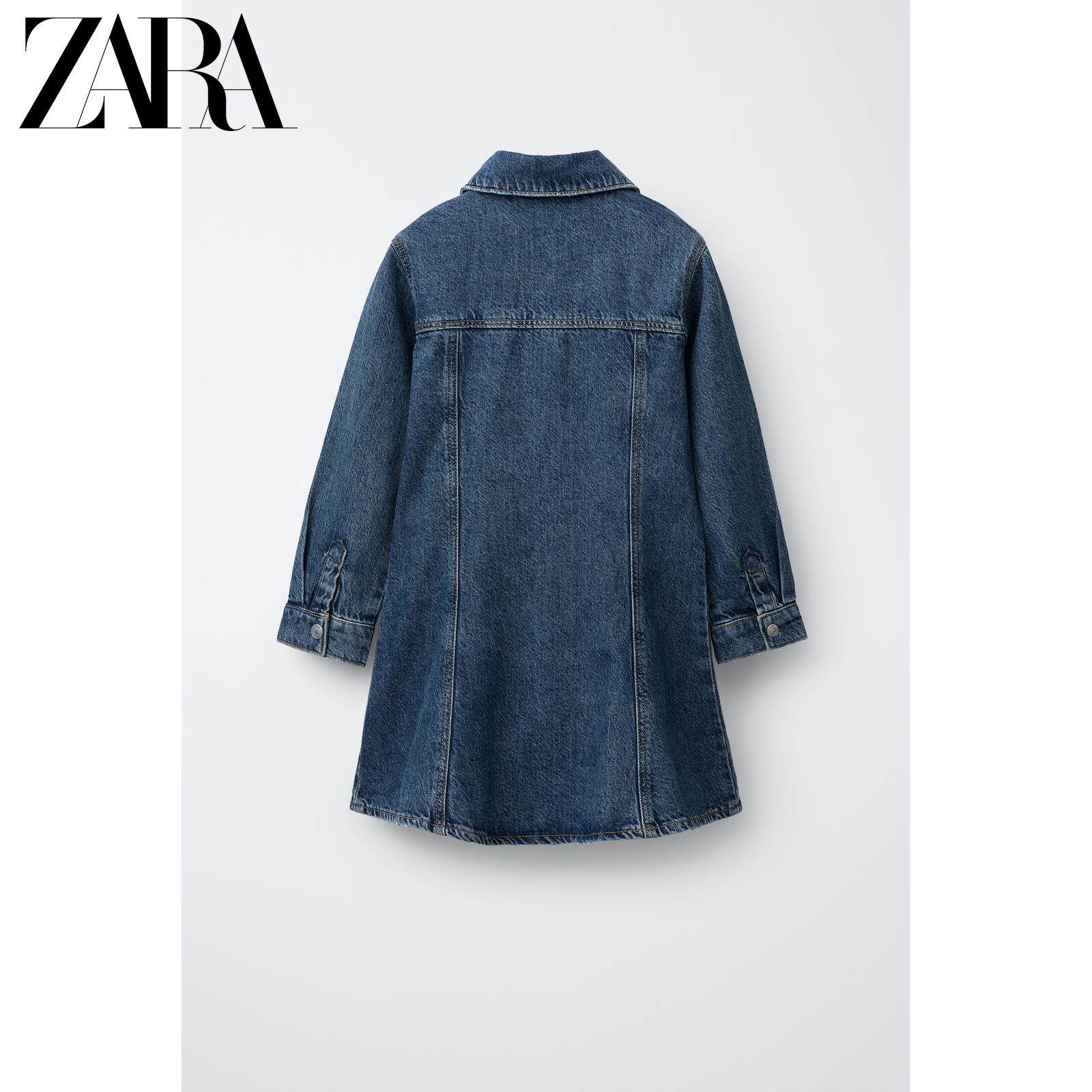 ZARA Осенние новинки 2025 года, детская одежда, джинсовое платье с длинными рукавами для девочек, 4441792 400