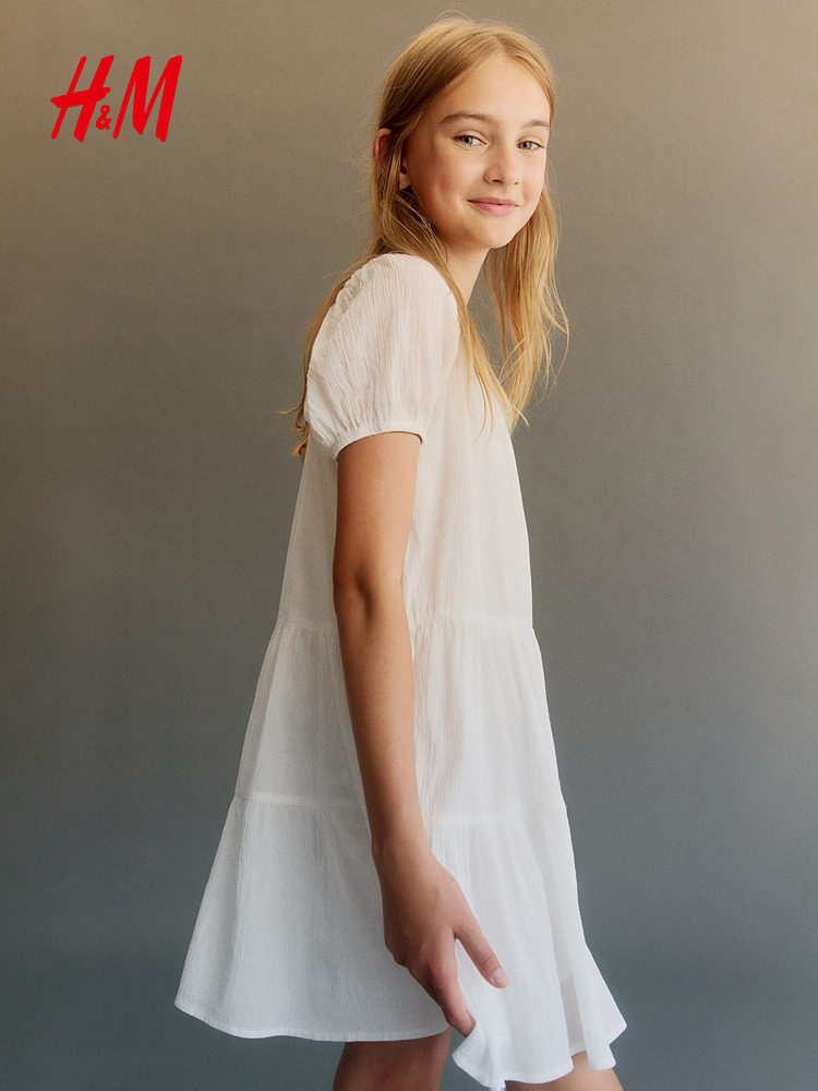 HM2025 новая осенняя детская одежда, платье из мятого хлопка для детей и девочек 1290422