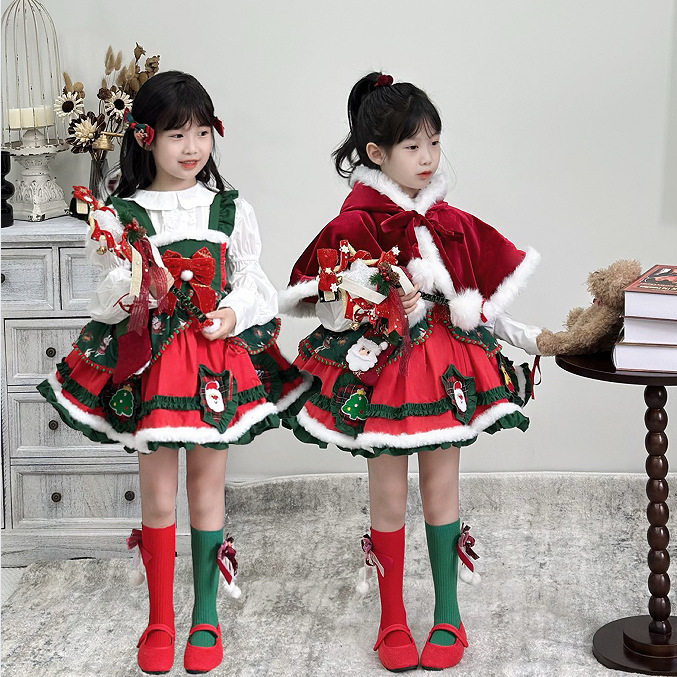 Детский рождественский демисезонный красный плащ, наряд маленькой принцессы, в западном стиле, стиль Лолита