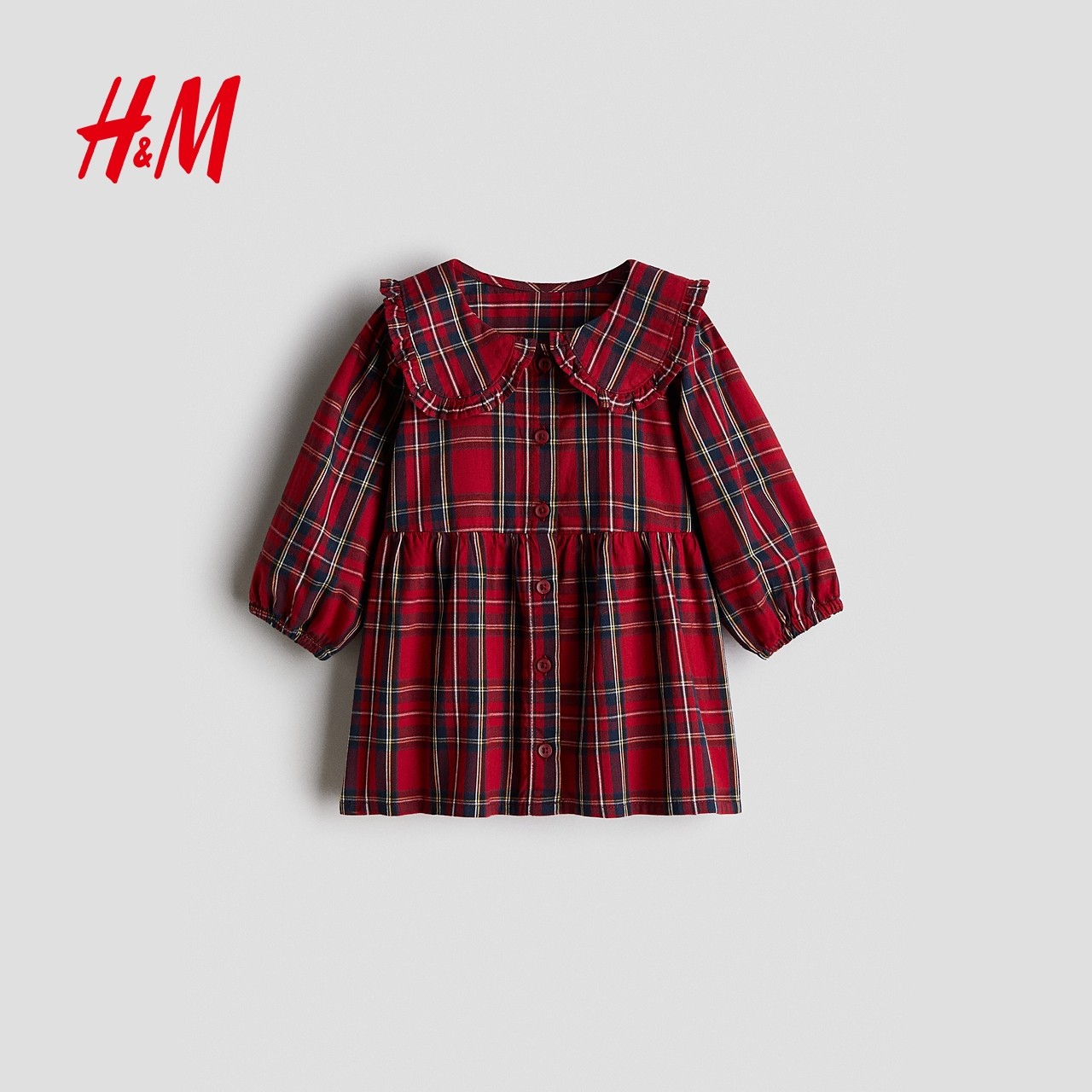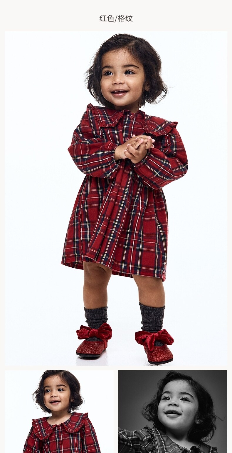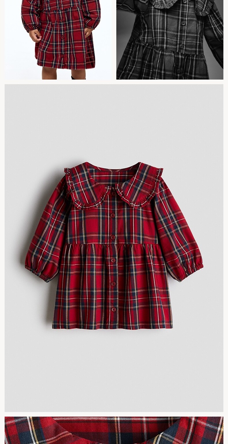 Детская одежда HM, юбка для маленьких девочек, весенне-новогоднее красное клетчатое платье в стиле рубашки 1300325