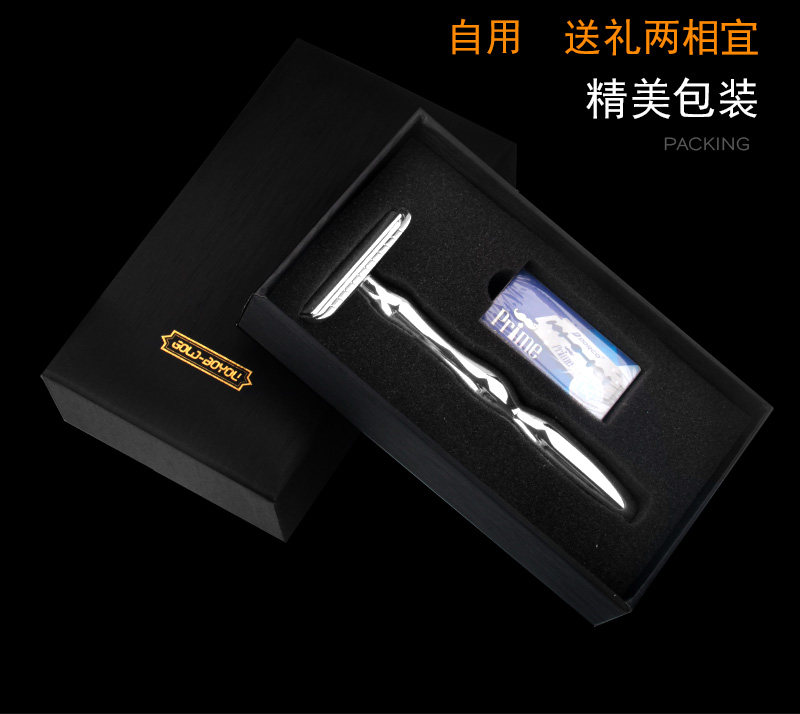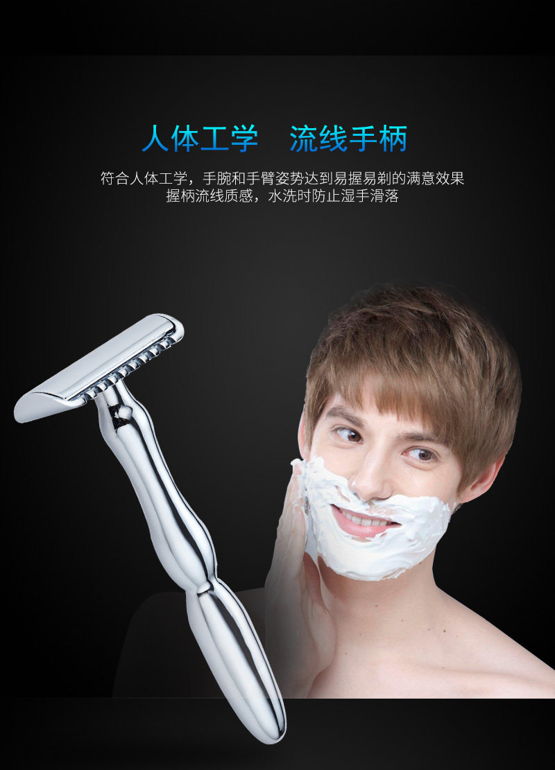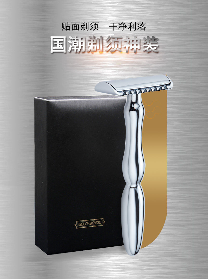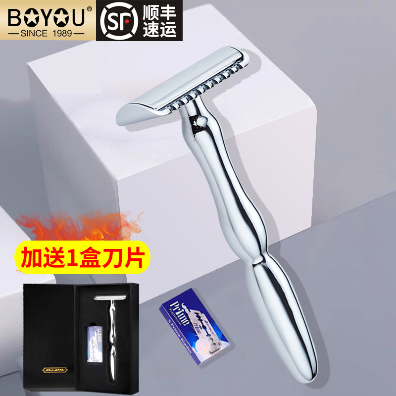 博友 Старомодная бритва из нержавеющей стали, мужское двусторонное латунное металлическое лезвие