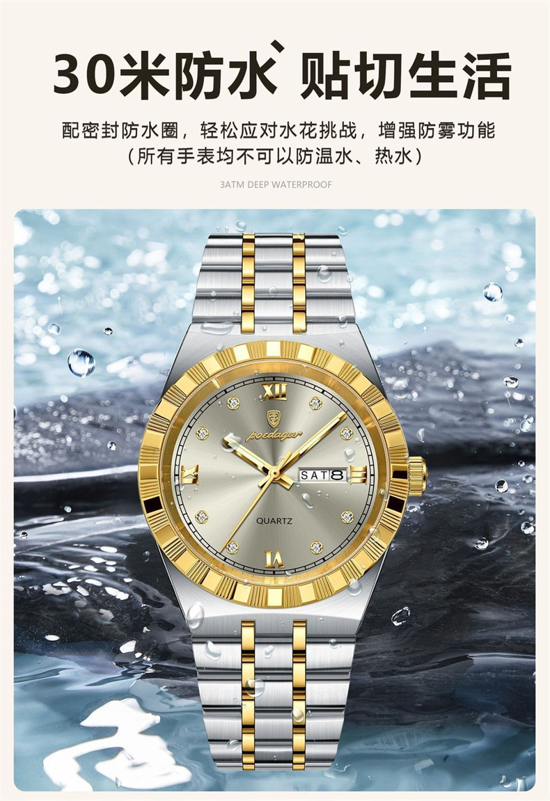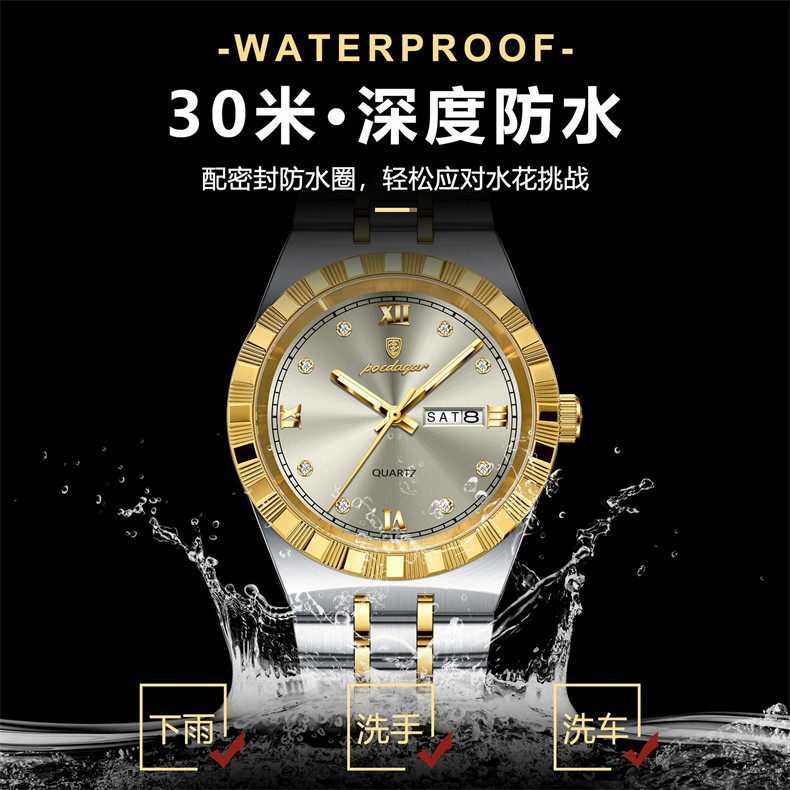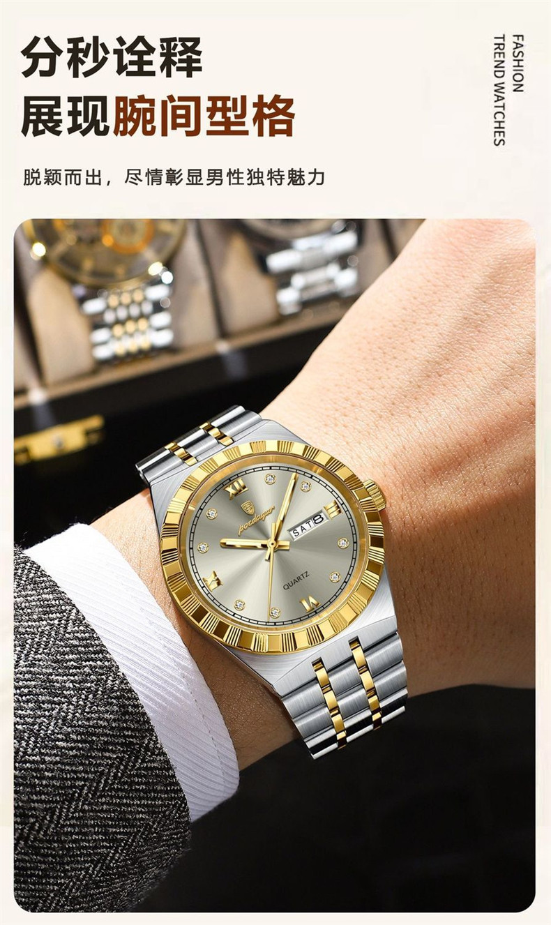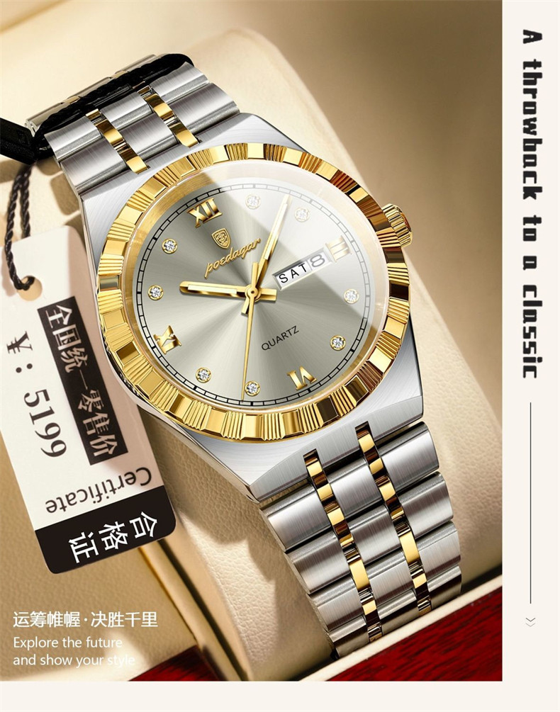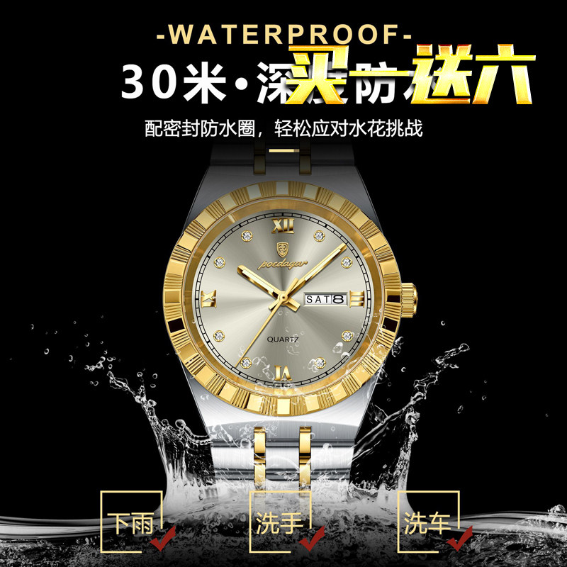 Мужские часы, водонепроницаемый календарь, стальной ремешок, механические кварцевые часы, изысканный стиль, Швейцария