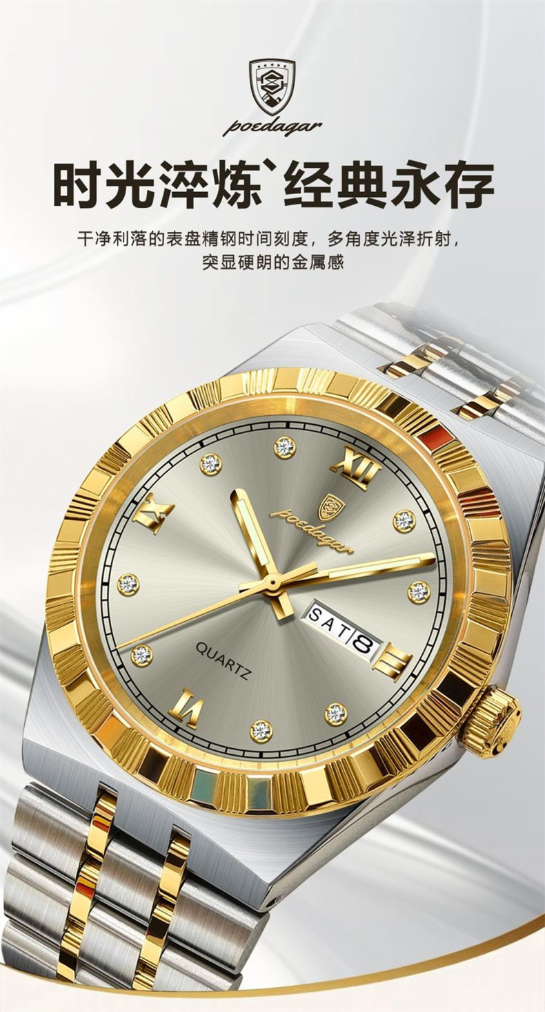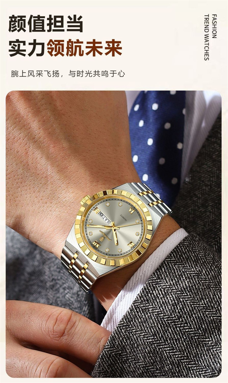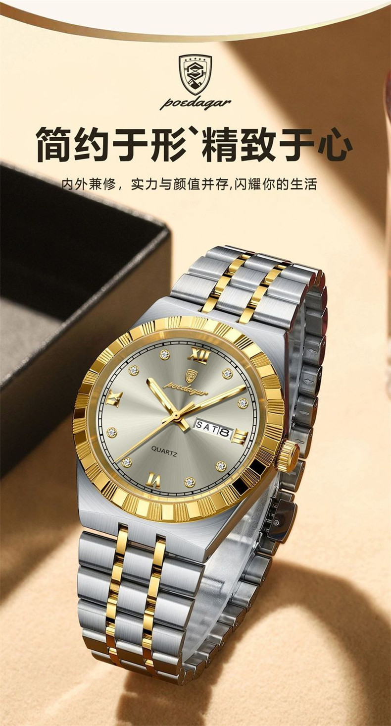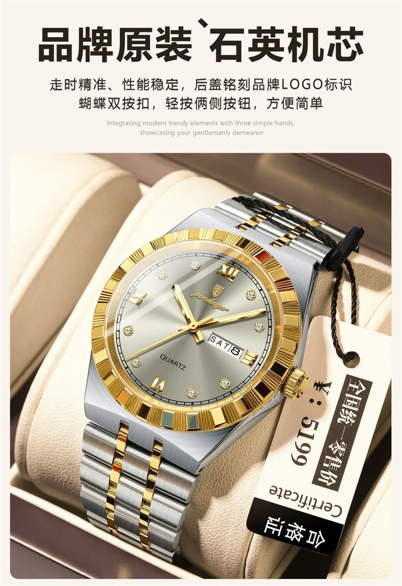 Мужские часы, водонепроницаемый календарь, стальной ремешок, механические кварцевые часы, изысканный стиль, Швейцария