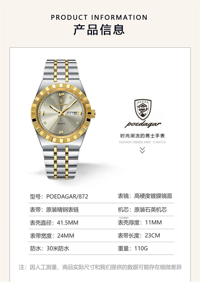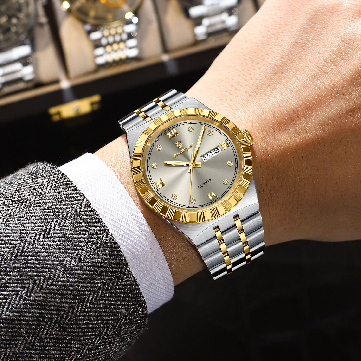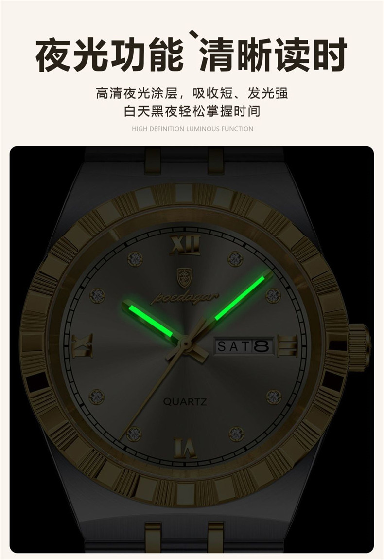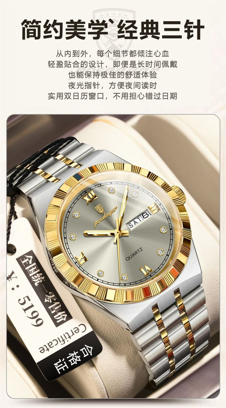 Мужские часы, водонепроницаемый календарь, стальной ремешок, механические кварцевые часы, изысканный стиль, Швейцария