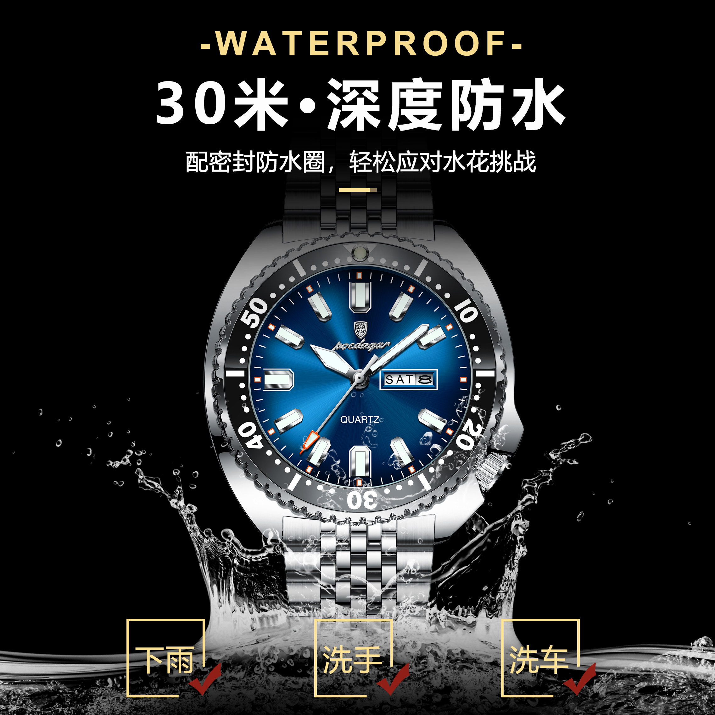 Модные швейцарские часы, водонепроницаемый трендовый календарь, кварцевые мужские часы, Швейцария, в корейском стиле