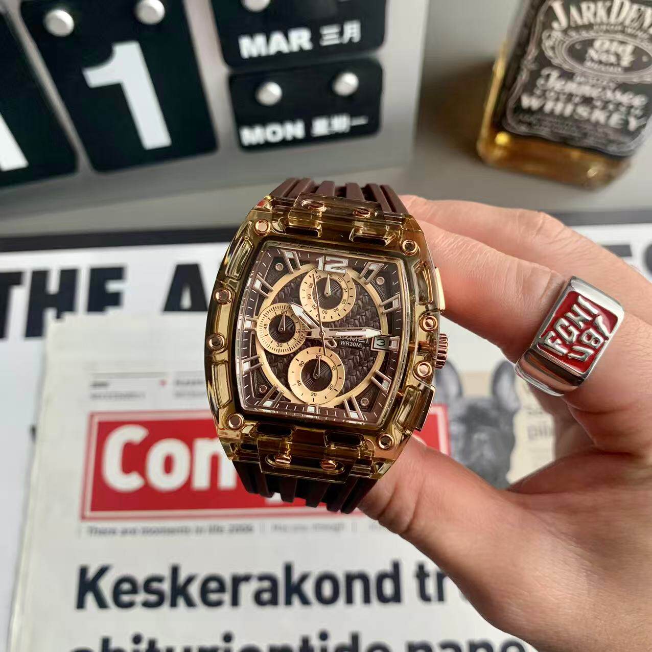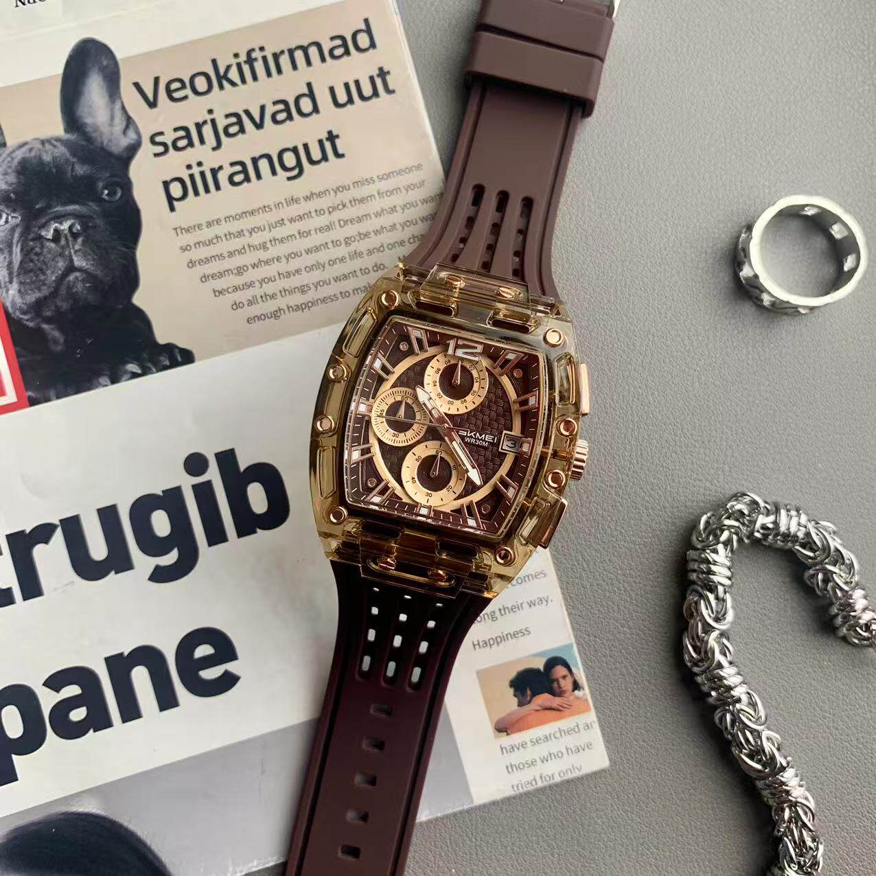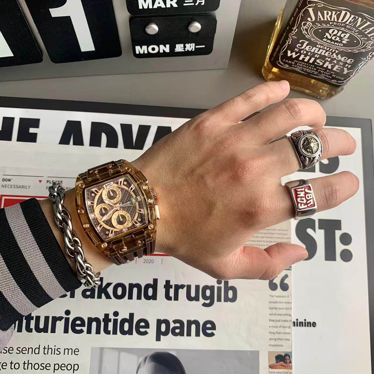 Мужские часы, силиконовая брендовая водонепроницаемая лента, популярно в интернете, подходит для подростков, изысканный стиль