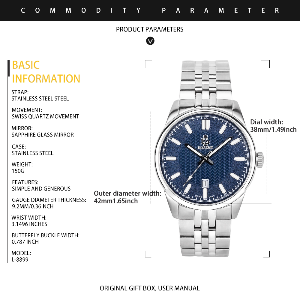 (Трансграничная торговля), швейцарские часы, синий стальной ремешок из нержавеющей стали, Швейцария