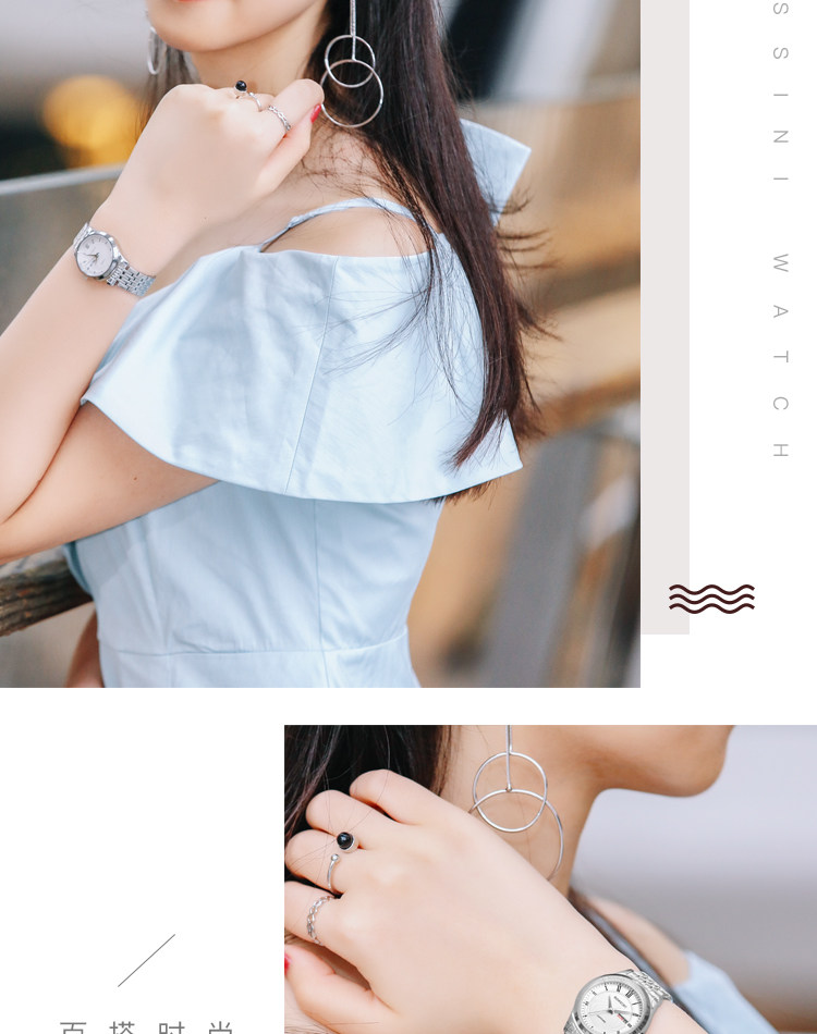 Женские часы, стальной ремешок, кварцевые часы, комплект, швейцарские часы, простой и элегантный дизайн, Вольфрамовая сталь